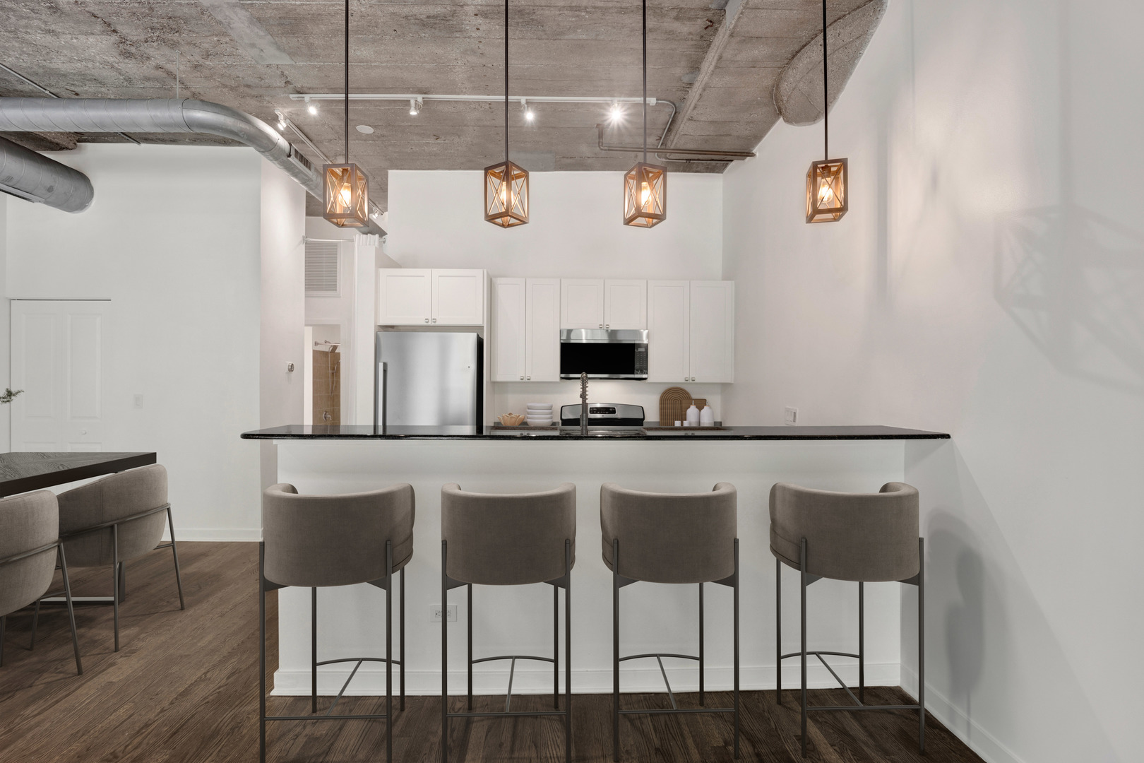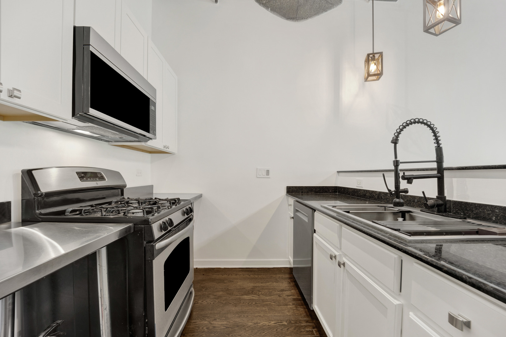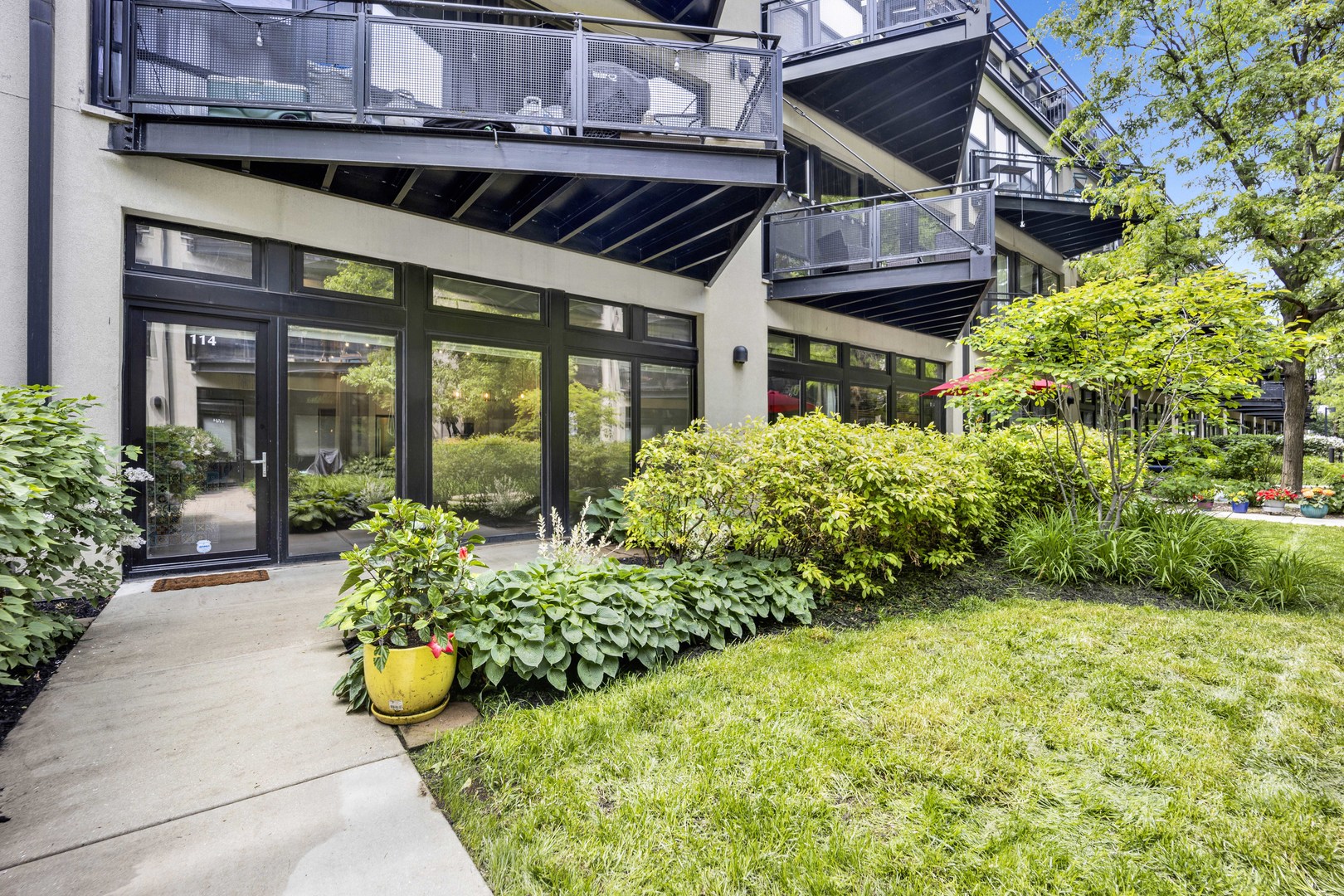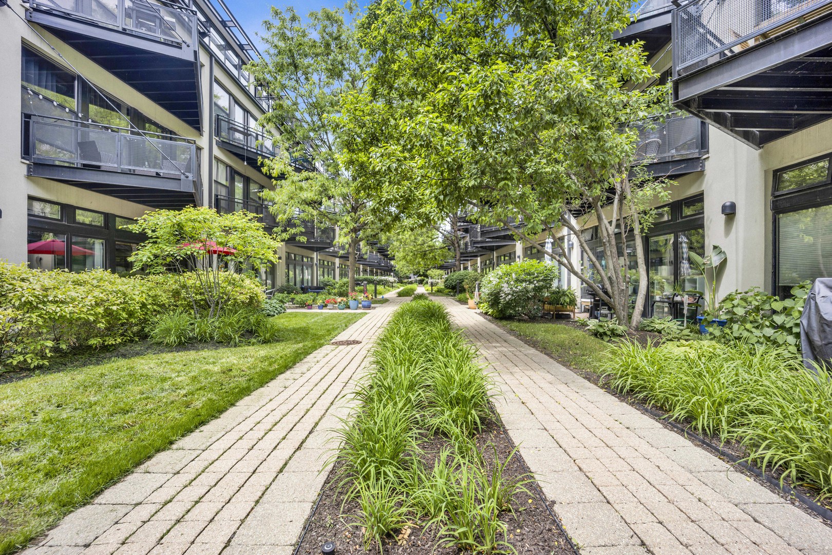 Bright, North-Facing Loft with Private Garden Patio Welcome to this stylish 900 sq ft first-floor loft nestled in a secure, landscaped courtyard in the heart of University Village. Originally a 2-bedroom, 1-bath layout, this home has been thoughtfully opened up into a spacious, airy loft that perfectly blends comfort and flexibility. Soaring 13-foot ceilings and floor-to-ceiling windows fill the home with natural light and offer tranquil views of your own private garden patio-lush with seasonal blooms and ideal for morning coffee or evening unwinding. The expansive 25’x20′ living and dining area features a beautifully refurbished fireplace (2022), refinished hardwood floors, and fresh paint throughout (2025), creating a cozy yet modern retreat. The fully updated kitchen (2025) is a true standout, designed with Diamond Express cabinetry, stainless steel counters and appliances, Bosch dishwasher, bottom-freezer refrigerator, microwave, garbage disposal hookup, and a raised breakfast bar-perfect for everyday living or entertaining guests. The freshly painted bathroom includes a new shower head (2025), as well as an updated mirror and light fixture (2022). The sleeping area features warm cork flooring and a premium Elfa “Decore+” closet system (2022), offering both style and smart storage. You’ll also enjoy in-unit laundry, new USB-C outlets, and central heating and air conditioning. A deeded, heated garage parking space (6’8″ clearance) is available for an additional $25K, and a private storage cage is included. This professionally managed, pet-friendly community (up to 3 pets-no breed or weight restrictions) offers a full suite of amenities, including a fitness center, party room, bike storage, movie theater, outdoor pool with sundeck, and a beautifully maintained dog-friendly courtyard. Just beyond your door, you’ll find everything that makes this neighborhood feel like home-from the welcoming campus energy of UIC to the vibrant dining and arts scenes of the West Loop, Pilsen, and Fulton Market. Easy access to Metra, CTA, and nearby highways makes commuting a breeze. This is city living with a true sense of community. Click on 3D tour to walk through unit.