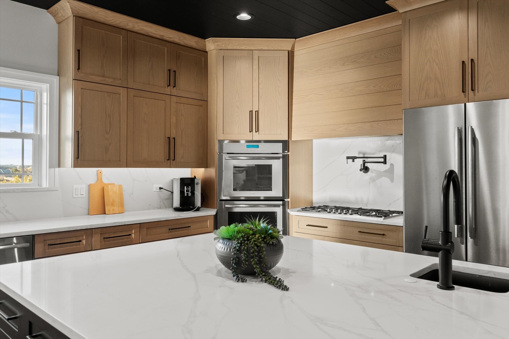 Sleek and sophisticated MODERN MASTERPIECE in one of Lemont’s most sought after subdivisions, ESTATES OF MONTEFIORI shows like new construction. Spectacular exterior with clean lines, expansive front porch and balcony with accents of black, white and grey architectural design and hues. Enter the two foyer and prepare to be wowed at every turn. Formal dining room is the ideal space to entertain with a sliding door to the front porch that provides indoor and outdoor living. Stunning family room includes a beautiful limestone fireplace, ample windows for natural sunlight and shiplap ceiling for that modern/rustic feel. Extraordinary GOURMET chef’s kitchen is the ultimate space to cook and entertain that features two-toned cabinetry in natural and black hues, two massive islands, stainless steel appliance package, quartz countertops, walk in pantry with a custom barn door detail and a butlers pantry that has a beverage fridge and wine fridge. Handsome office/study offers a moody and comfortable vibe and a sliding patio door with access to the front porch to unwind. Main level laundry room and mudroom offers tons of cabinets for storage. Formal dining room perfect for entertaining. Second level greets you with two expansive catwalks and an elegant gold chandelier. Private master suite is a dream sanctuary with plush wall to wall carpeting and your own private balcony to enjoy your morning coffee. Spa-like master bathroom includes a dual vanity, walk-in shower with a bathtub inside that offers seamless integration of the latest design trends and a sizable walk-in closet. Three additional bedrooms on the second level, one has its own private ensuite and balcony and the remaining two bedrooms share a jack and jill bathroom. The WALK OUT lower level has soaring 12ft ceilings, a full bathroom and offers plenty of room for recreation, family area, media room, bar or second kitchen. Private grounds with multiple areas to entertain on the extended deck or sprawling patio area with stub for gas fire pit. Great Lemont location close to shopping, dining, world renowned golf courses, thousands of acres of forest preserves, and more! For any buyer looking for modern luxury in a premium suburban setting. BE SURE TO WATCH THE FULL LENGTH VIDEO!