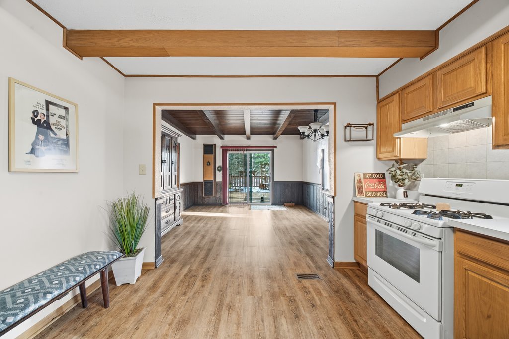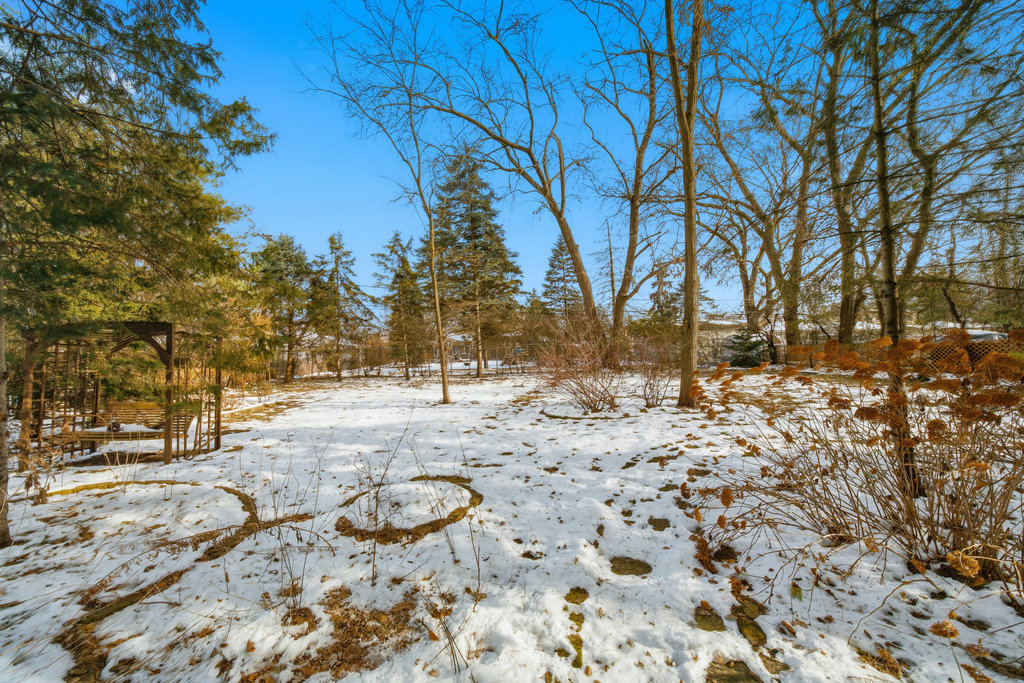 Tucked away on a beautiful, secluded just about a half-acre lot surrounded by mature evergreens and trees, this 3-bedroom, 2-bath, living room and large (vaulted ceilings) log-cabin feel family room home offers peace, privacy, and incredible potential. With two bedrooms together on one side of the home and a generously-sized third bedroom tucked away off of the family room (Perfect for added privacy). The setting is truly special-The big-ticket items have already been taken care of, providing peace of mind for the next owner. Recent updates include the roof, leaf-guard gutters, siding, HVAC system and water heater, all completed within the past few years-an exceptional value and a solid foundation for future updates and your chance to build your own equity. This home presents a fantastic opportunity to refresh and customize to your taste. With some new paint, updated light fixtures and flooring, this home could truly shine. Enjoy the feel of a private retreat while still being close to everyday conveniences with shopping~Mariano’s, Home Goods, several restaurants just right around the corner, this property is truly a gem. This home has been thoughtfully priced with major mechanicals already updated and being sold “As Is”