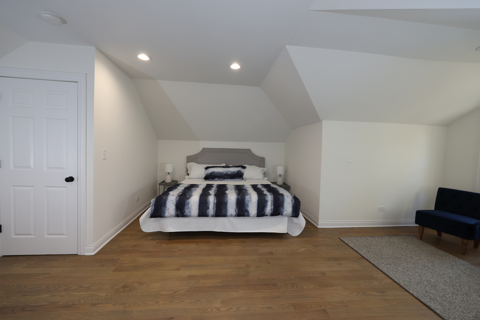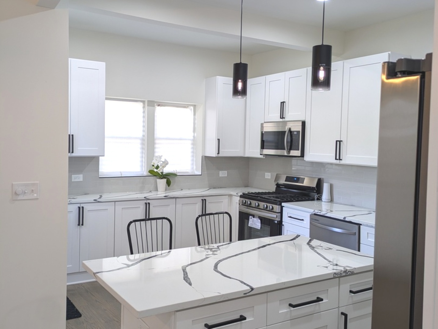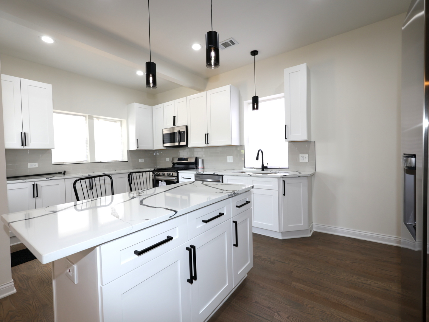 Discover modern living in highly sought-after East Beverly! This beautifully renovated home blends style and comfort, beginning with a stunning gourmet kitchen featuring shaker cabinetry, quartz countertops, a generous island, and stainless steel appliances. Oak plank hardwood floors flow through the main level’s open living and dining areas, leading to a private patio that’s perfect for entertaining. The first floor offers three comfortable bedrooms and a full hall bath, while the entire second level is dedicated to a luxurious primary suite with a spacious walk-in closet, a private sitting area, and a spa-inspired bath with a soaking tub. The expansive finished basement adds incredible living space, complete with a large family room, full wet bar with mini-fridge, additional bedroom, stylish full bath with floor-to-ceiling porcelain tile, and a dedicated laundry room with sink and dryer hookup. Recent upgrades include a new 90 high-efficiency HVAC system, 50-gallon hot water tank, drain tile system, ejector pump, and 200-amp electrical-all completed to Chicago code. Situated on a large lot with a two-car garage and driveway, this home truly has it all.