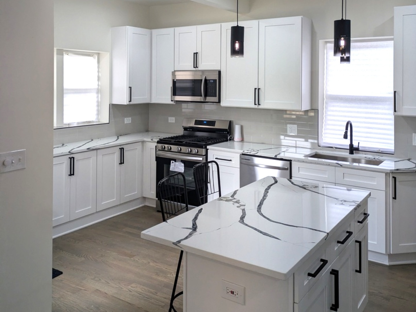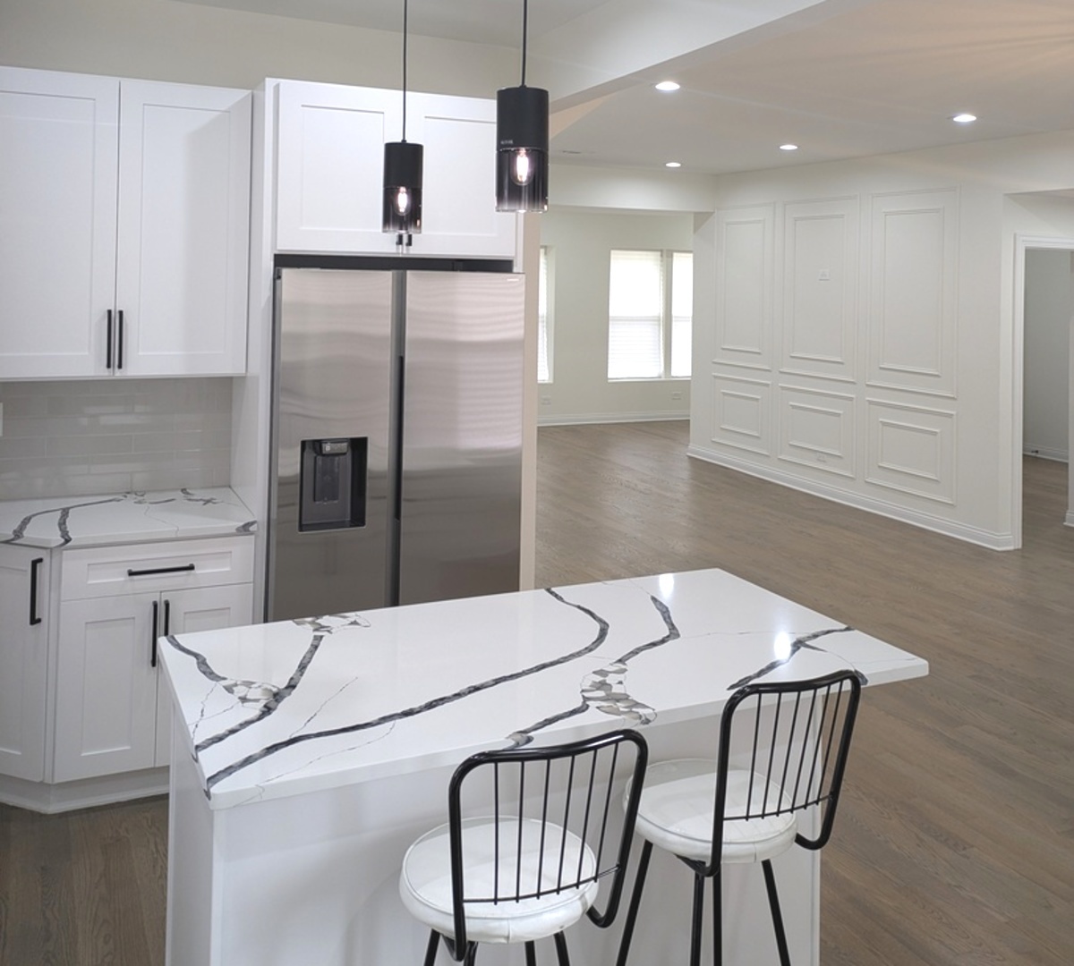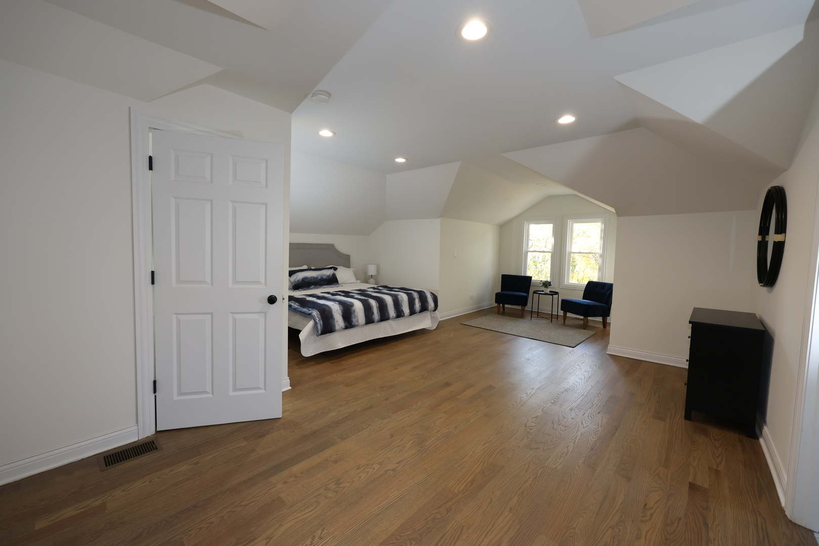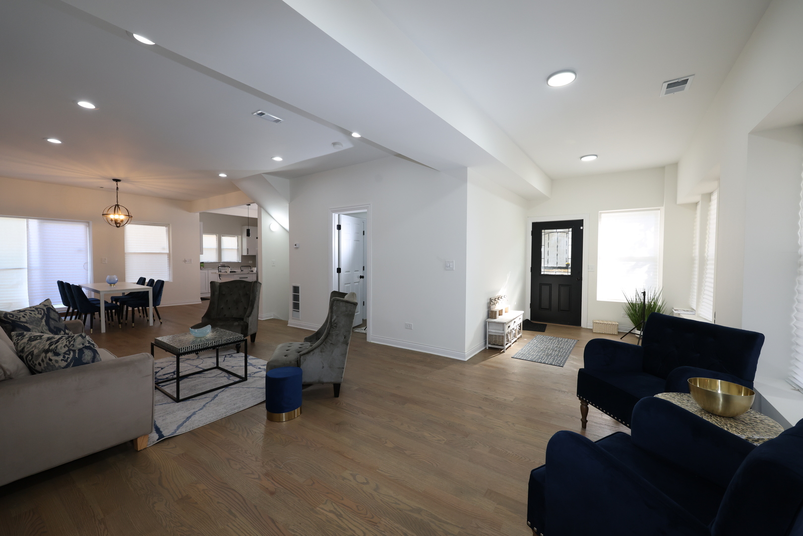 Discover modern living in highly sought-after East Beverly! This beautifully renovated home blends style and comfort, beginning with a stunning gourmet kitchen featuring shaker cabinetry, quartz countertops, a generous island, and stainless steel appliances. Oak plank hardwood floors flow through the main level’s open living and dining areas, leading to a private patio that’s perfect for entertaining. The first floor offers three comfortable bedrooms and a full hall bath, while the entire second level is dedicated to a luxurious primary suite with a spacious walk-in closet, a private sitting area, and a spa-inspired bath with a soaking tub. The expansive finished basement adds incredible living space, complete with a large family room, full wet bar with mini-fridge, additional bedroom, stylish full bath with floor-to-ceiling porcelain tile, and a dedicated laundry room with sink and dryer hookup. Recent upgrades include a new 90 high-efficiency HVAC system, 50-gallon hot water tank, drain tile system, ejector pump, and 200-amp electrical-all completed to Chicago code. Situated on a large lot with a two-car garage and driveway, this home truly has it all.