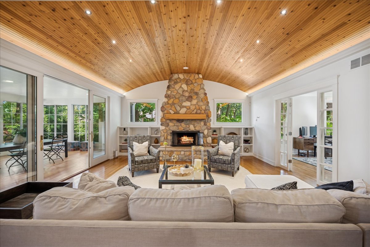Exceptional Nantucket-inspired architecture meets superb craftsmanship in this recently renovated home, set on nearly 2/3 of an acre (100×290) in one of East Wilmette’s most coveted in-town locations. Offering approximately 8,000 sq ft of beautifully finished space, this shingle-style coastal retreat combines architectural integrity, modern comfort, and an unmatched walk-to-everything lifestyle. From the moment you arrive, the home’s striking facade-classic shingles, crisp white trim, dormer windows, and handsome lighting-evokes the timeless charm of coastal New England. A porte cochere and inviting front porch welcome you into a light-filled interior that balances refined luxury with everyday livability. Inside, a dramatic foyer with soaring ceilings, custom millwork, and an open staircase anchors the thoughtful floor plan, featuring hardwood floors and sunlit rooms throughout. The formal living room with wood-burning fireplace and the open dining room are ideal for entertaining, while the family room-with hand laid stone fireplace, wood barrel ceiling, and a full wet bar-offers a more relaxed setting. Sliding French doors open to a stunning three season porch overlooking landscaped gardens, a brick patio, and an expansive backyard. The chef’s kitchen includes custom cabinetry, a large island with breakfast bar, top-tier appliances, and a walk-in pantry. A built-in breakfast area offers serene views of the rear grounds. Two main-level offices support modern work-from-home needs, while a stylish powder room and custom mudroom add daily convenience. Upstairs, the luxurious primary suite features a spacious bedroom, oversized walk-in closet, and spa-caliber bath with radiant-heated floors, steam shower, jacuzzi tub, and dual vanities. Three additional bedrooms include large closets and ensuite or adjacent baths. A wide hallway with built-in linen storage and a second-floor laundry room complete the level. The third-floor retreat offers exceptional flexibility-ideal as a fifth/sixth bedroom, private guest suite, teen lounge, or creative studio, complete with full bath and treetop views. The fully finished lower level extends the living space with a large recreation area, home gym, custom wine closet, seventh bedroom, full bath, second laundry with commercial-grade sink and abundant storage. Outside, the private, professionally landscaped yard features mature trees, privacy hedges, a spacious patio, sport area and open lawn-designed for both entertaining and recreation, evoking the feel of a private coastal compound. All this, just steps from Lake Michigan, Gilson Park, Plaza del Lago, Metra and CTA stations, top-rated schools, and vibrant downtown Wilmette. Long list of improvements, ask listing agent to provide.