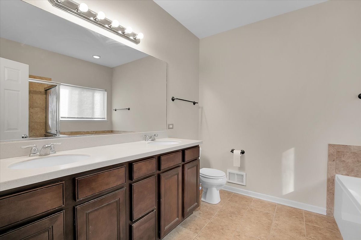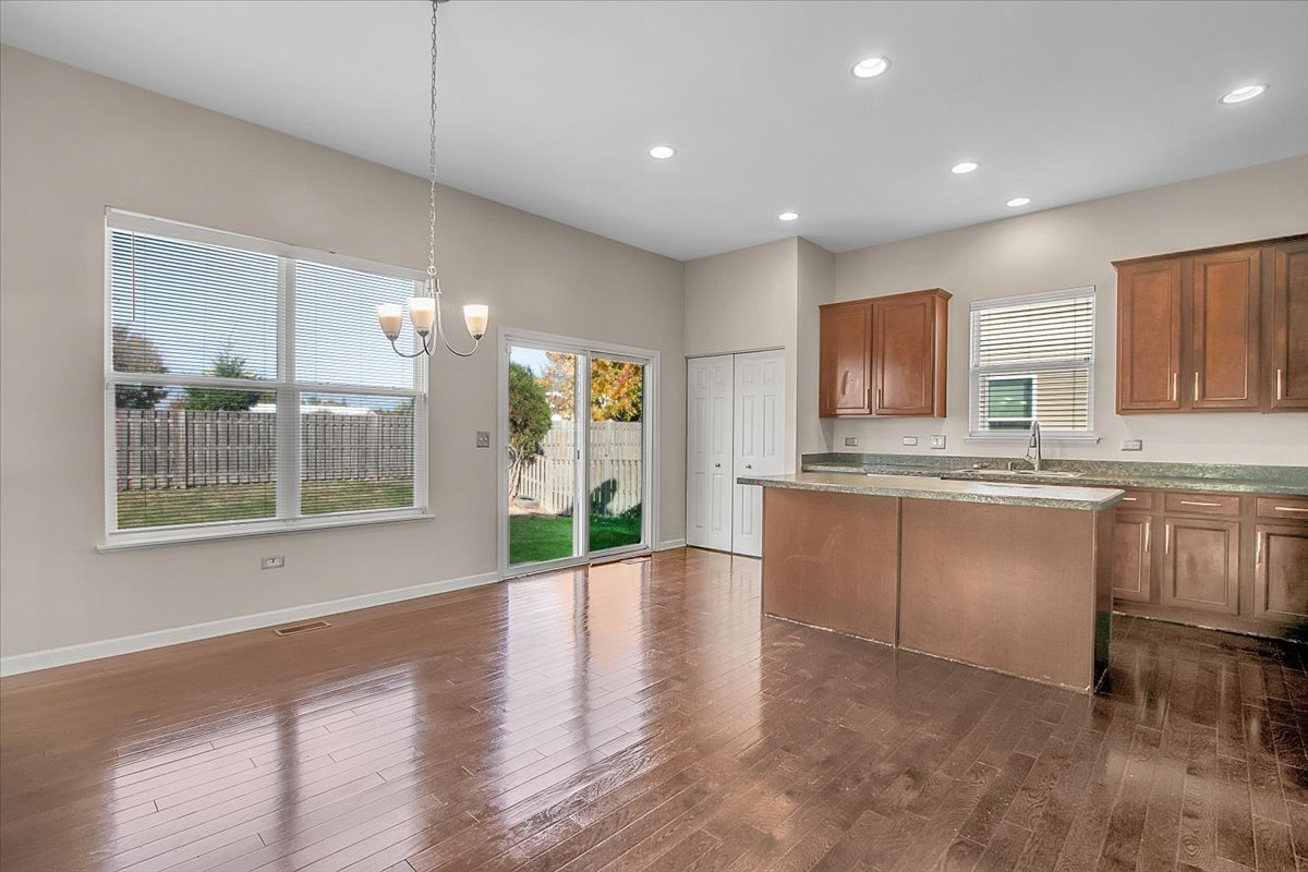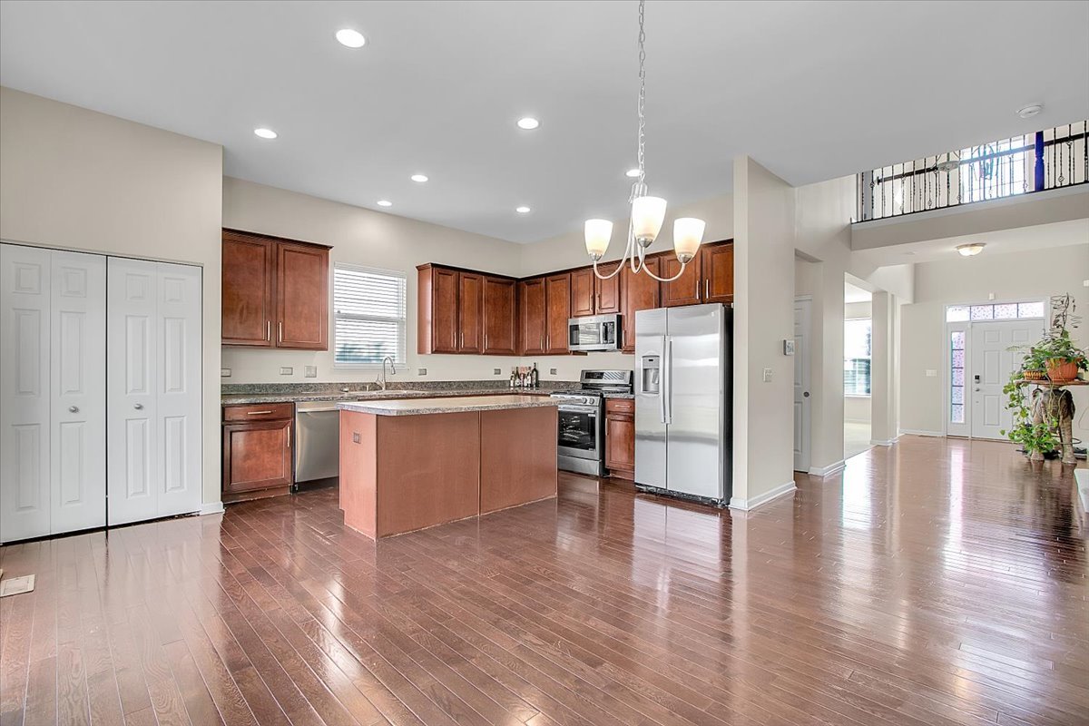 Welcome Home to the Fields of Shorewood! This move-in-ready beauty has it all! Step inside to a grand two-story foyer and instantly feel the warmth of newly refinished hardwood floors, fresh paint throughout, and brand-new carpet. The spacious kitchen is perfect for both everyday living and entertaining – featuring a large center island, stainless steel appliances, tons of cabinet and counter space, a pantry closet, and a bright breakfast area for casual dining. The open-concept family room offers plenty of space to gather, accented by custom window treatments and an open oak railing staircase that adds architectural charm. Upstairs, retreat to the luxurious primary suite with a large soaking tub, his & her vanities, and a separate shower. All bedrooms are generously sized, and the spacious hall bath ensures comfort for family or guests. The professionally finished basement provides additional living space – perfect for a home theater, gym, or play area. Outside, enjoy the large fenced backyard, ideal for entertaining, play, or simply relaxing outdoors. The sellers are in the process of moving – so please look past the boxes and imagine your new beginning in this stunning Shorewood home! QUICK CLOSE POSSIBLE!