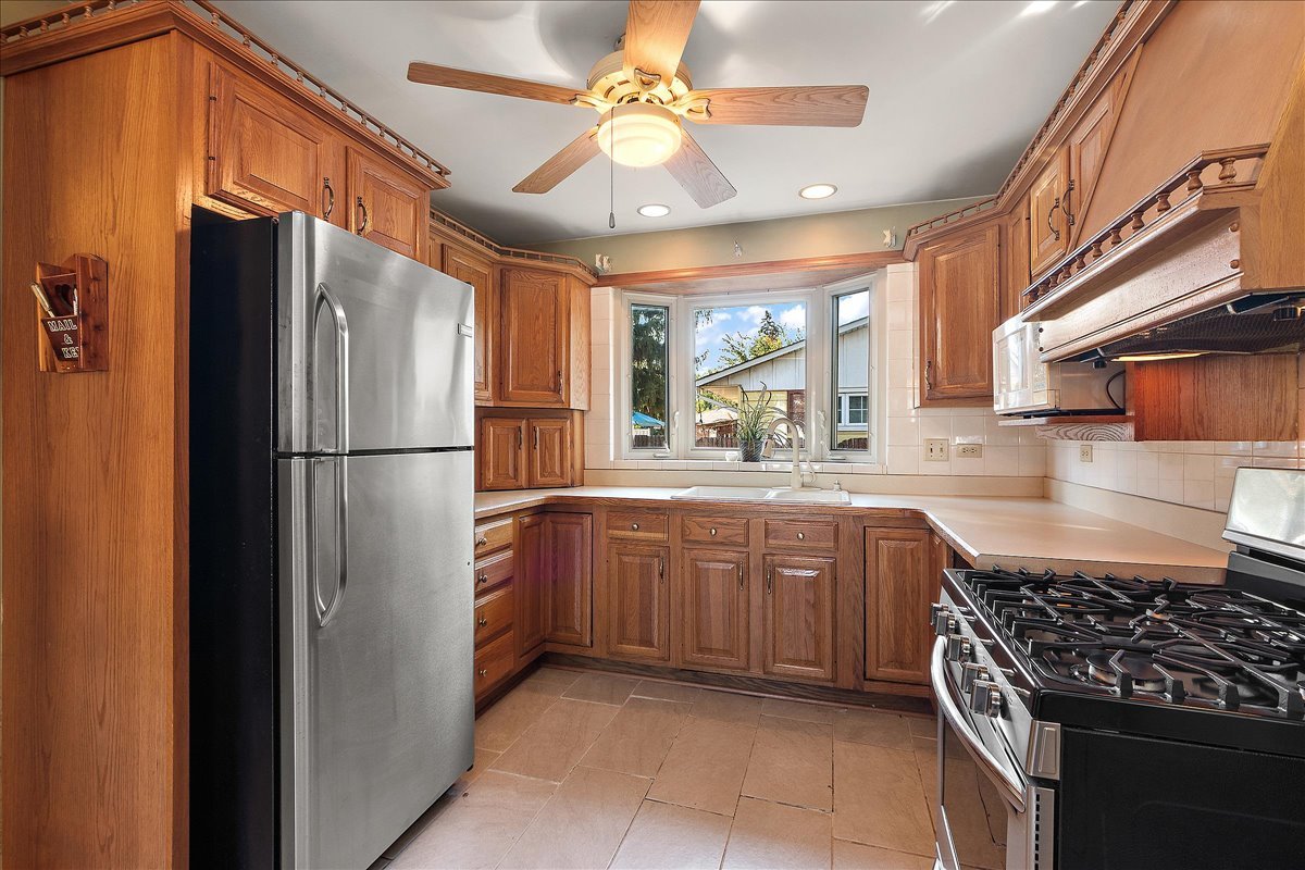 Don’t miss this move-in ready gem! This beautifully maintained home sits on a spacious corner lot and features a massive great room with vaulted ceilings, perfect for entertaining or relaxing. The updated kitchen offers custom cabinetry, tile flooring, and plenty of storage. Enjoy peace of mind with major updates including a new roof, brand new garage door and opener, and new carpet in the front living room and one bedroom. The rest of the home features durable vinyl flooring for easy maintenance. Step outside to your own backyard retreat with an above-ground pool installed within the last 3 years – ideal for summer fun! The attached 2.5-car garage provides extra space for parking, storage, or a workshop. Sold As Is. Well cared for, full of charm, and ready for its next owner!