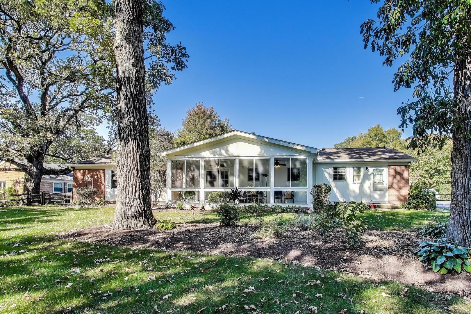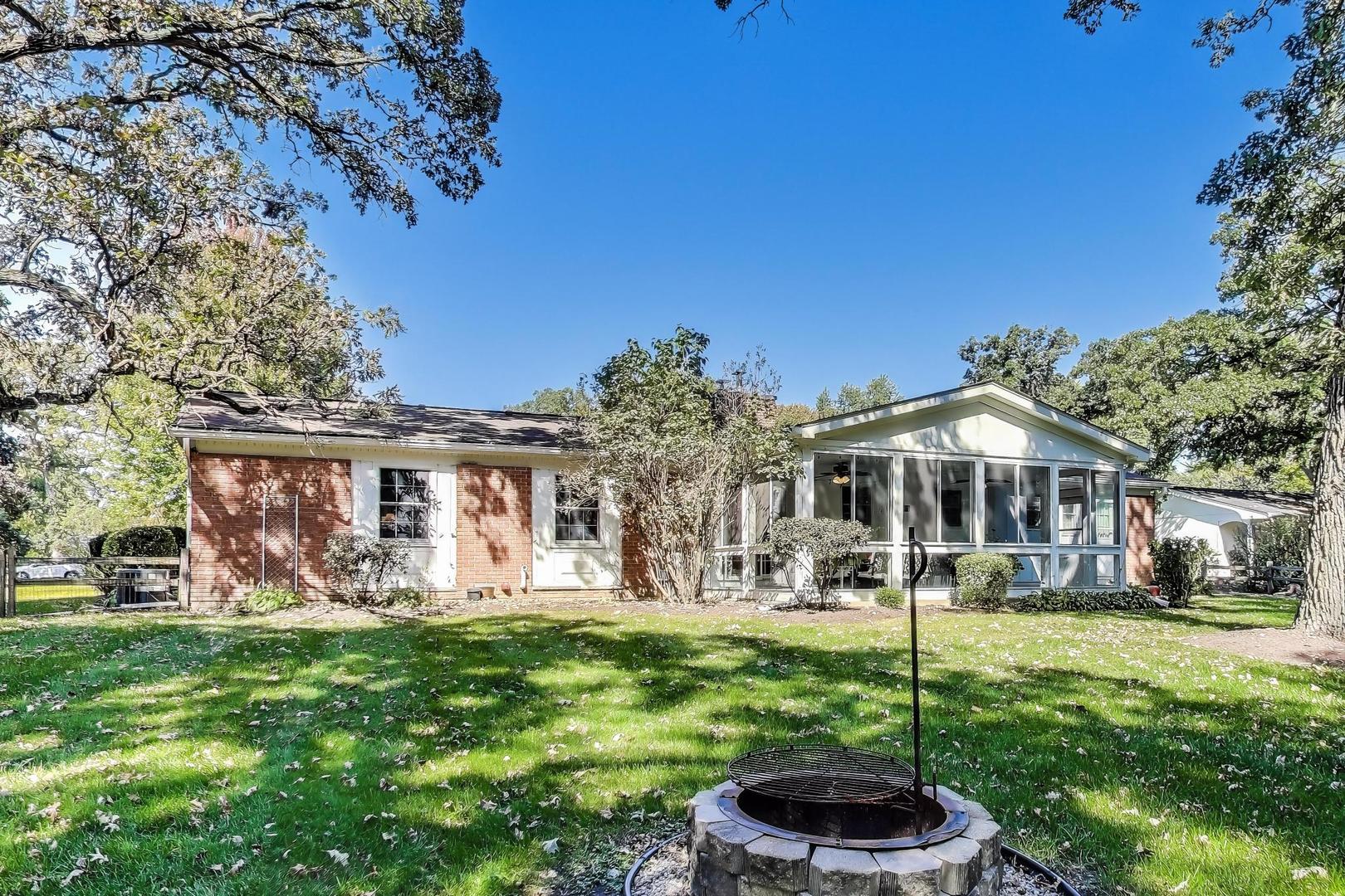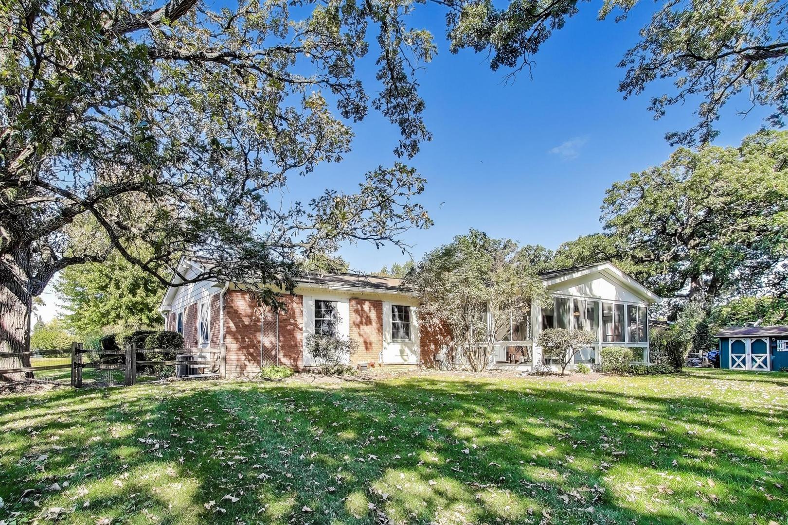 Introducing this good vibes ranch in the lovely Century Oaks East neighborhood in Elgin! 1121 Forest Drive offers one-story living with vaulted, beamed ceilings on a beautiful property with mature shade trees. A formal entry welcomes you in and to the heart of the home– the large living room with soaring ceilings, built-ins, plantation shutters, and fireplace. The spacious kitchen includes abundant counter space, a breakfast bar, plus an eating area with banquette and is a chef’s dream! Enjoy meals in the formal dining room or the large screened porch when the weather allows. The primary bedroom includes a recently remodeled ensuite and the full hallway bathroom services the other two bedrooms. A large laundry room is located off of the garage, providing convenience and easy accessibility. Plenty of storage in the unfinished partial basement that also includes a fireplace– primed for your ideas. Other features: 2-car attached garage, driveway with additional parking, large fenced-in yard, shed and new roof in 2023!