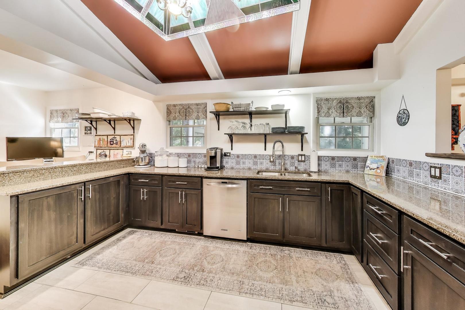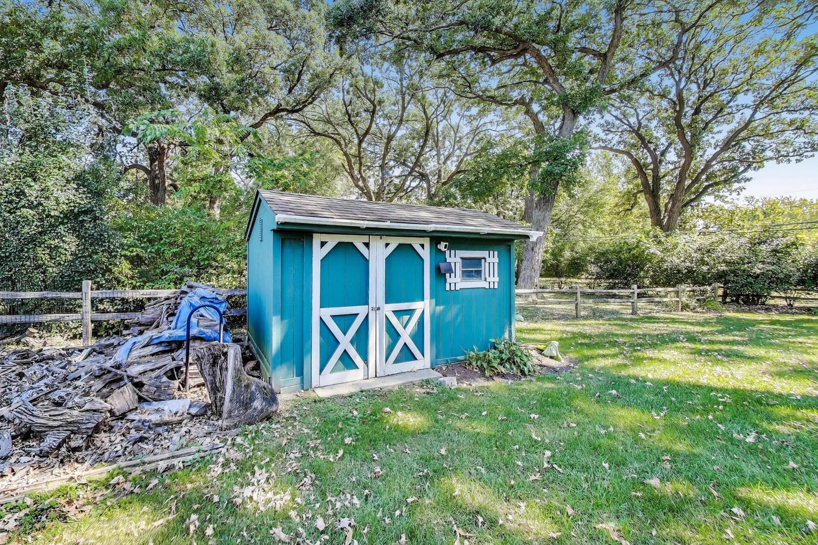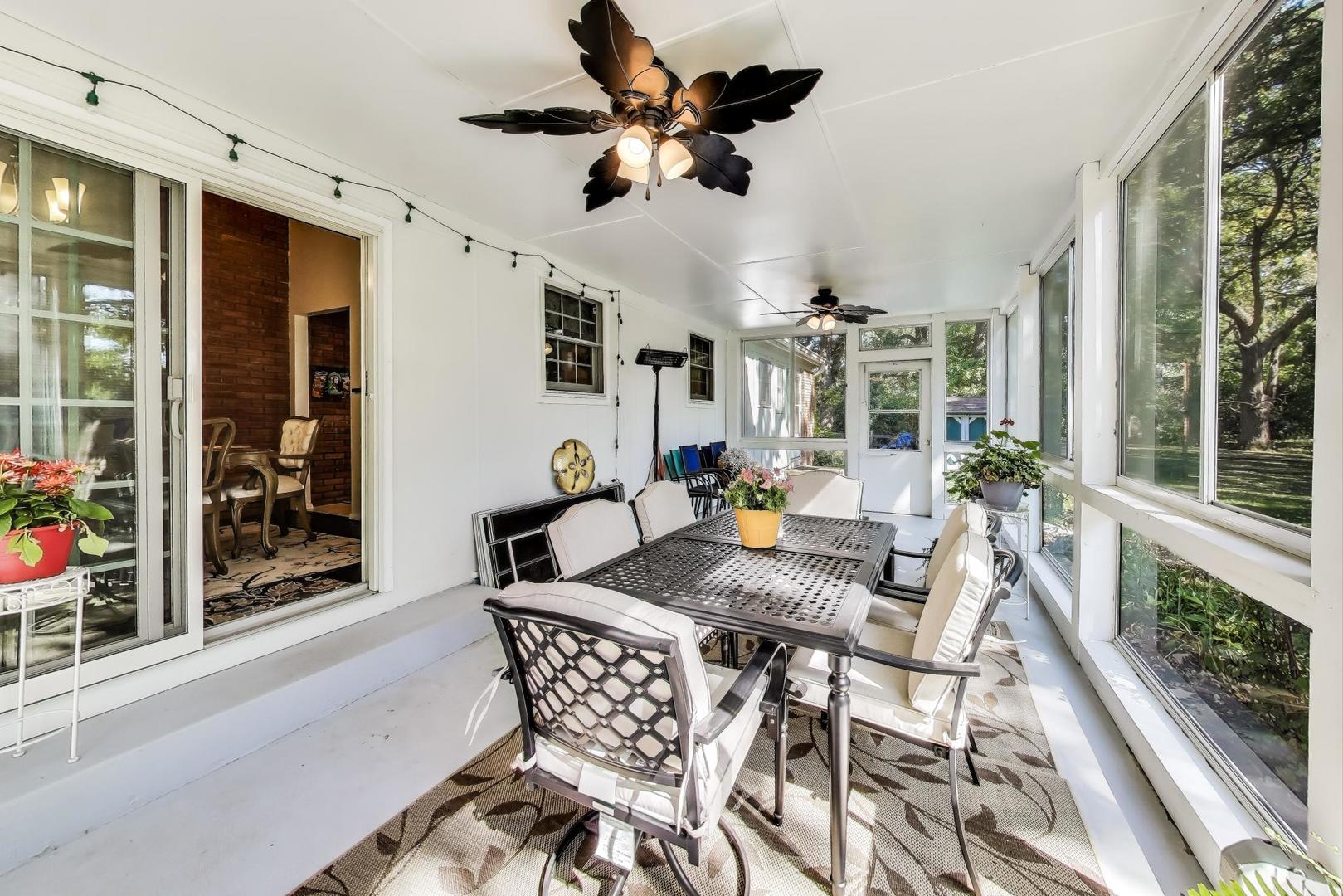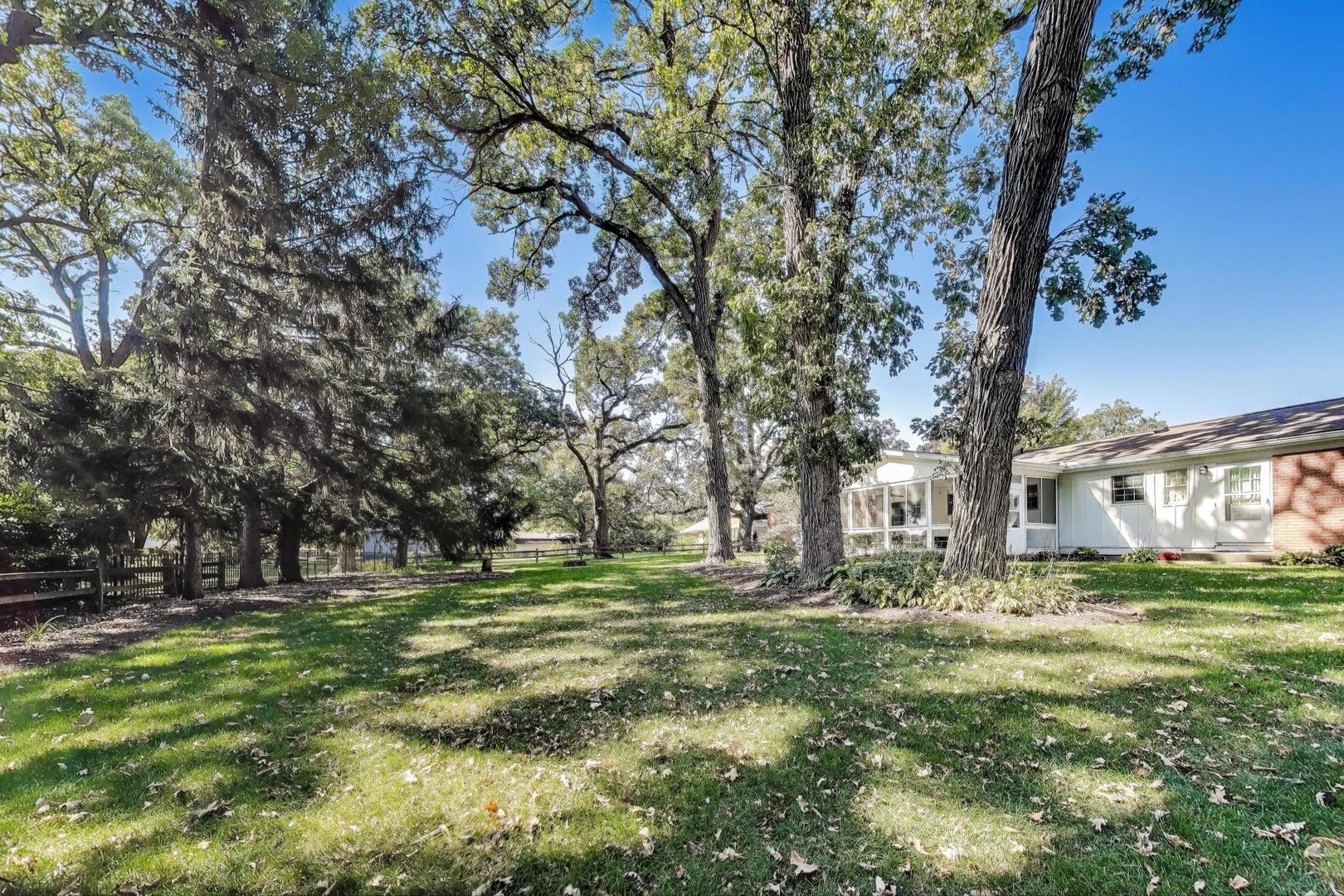Introducing this good vibes ranch in the lovely Century Oaks East neighborhood in Elgin! 1121 Forest Drive offers one-story living with vaulted, beamed ceilings on a beautiful property with mature shade trees. A formal entry welcomes you in and to the heart of the home– the large living room with soaring ceilings, built-ins, plantation shutters, and fireplace. The spacious kitchen includes abundant counter space, a breakfast bar, plus an eating area with banquette and is a chef’s dream! Enjoy meals in the formal dining room or the large screened porch when the weather allows. The primary bedroom includes a recently remodeled ensuite and the full hallway bathroom services the other two bedrooms. A large laundry room is located off of the garage, providing convenience and easy accessibility. Plenty of storage in the unfinished partial basement that also includes a fireplace– primed for your ideas. Other features: 2-car attached garage, driveway with additional parking, large fenced-in yard, shed and new roof in 2023!