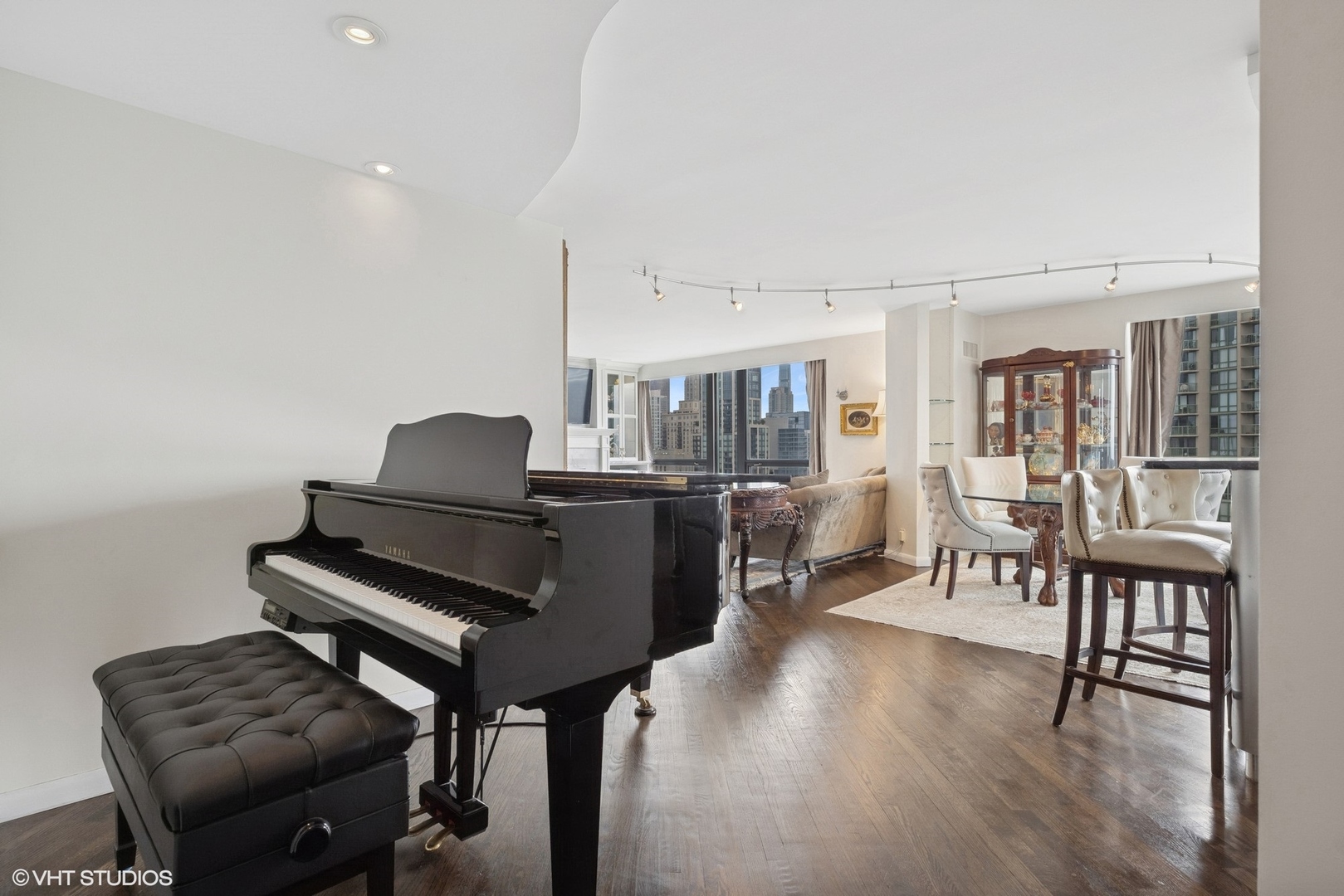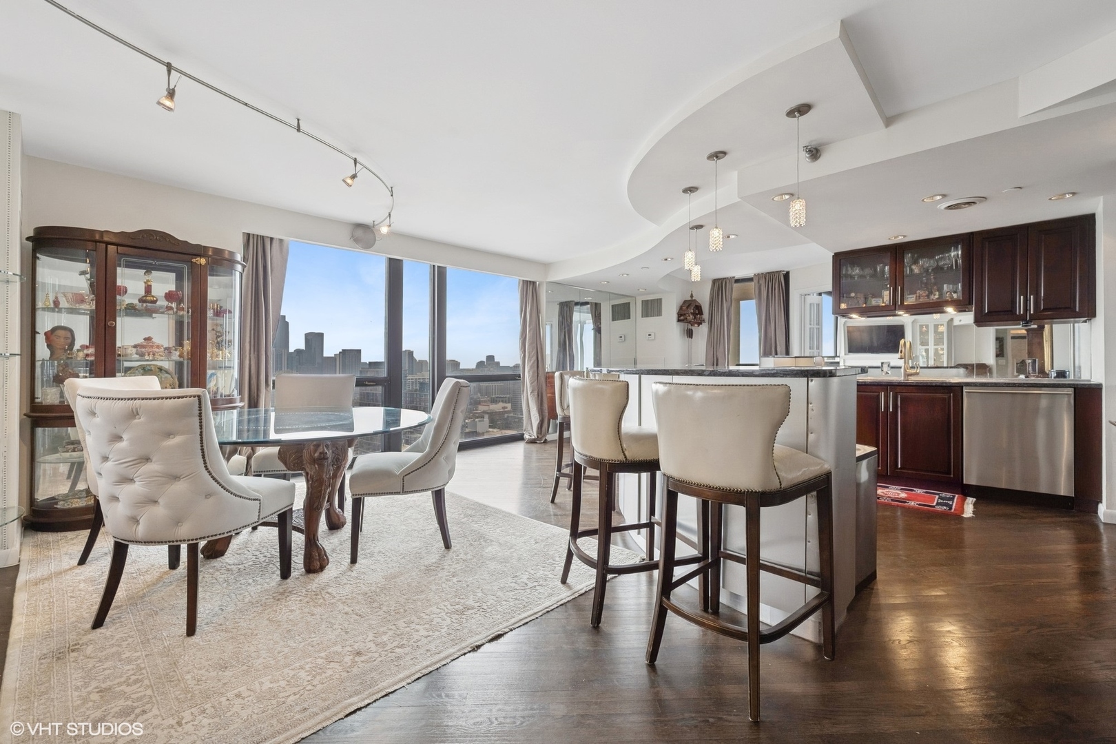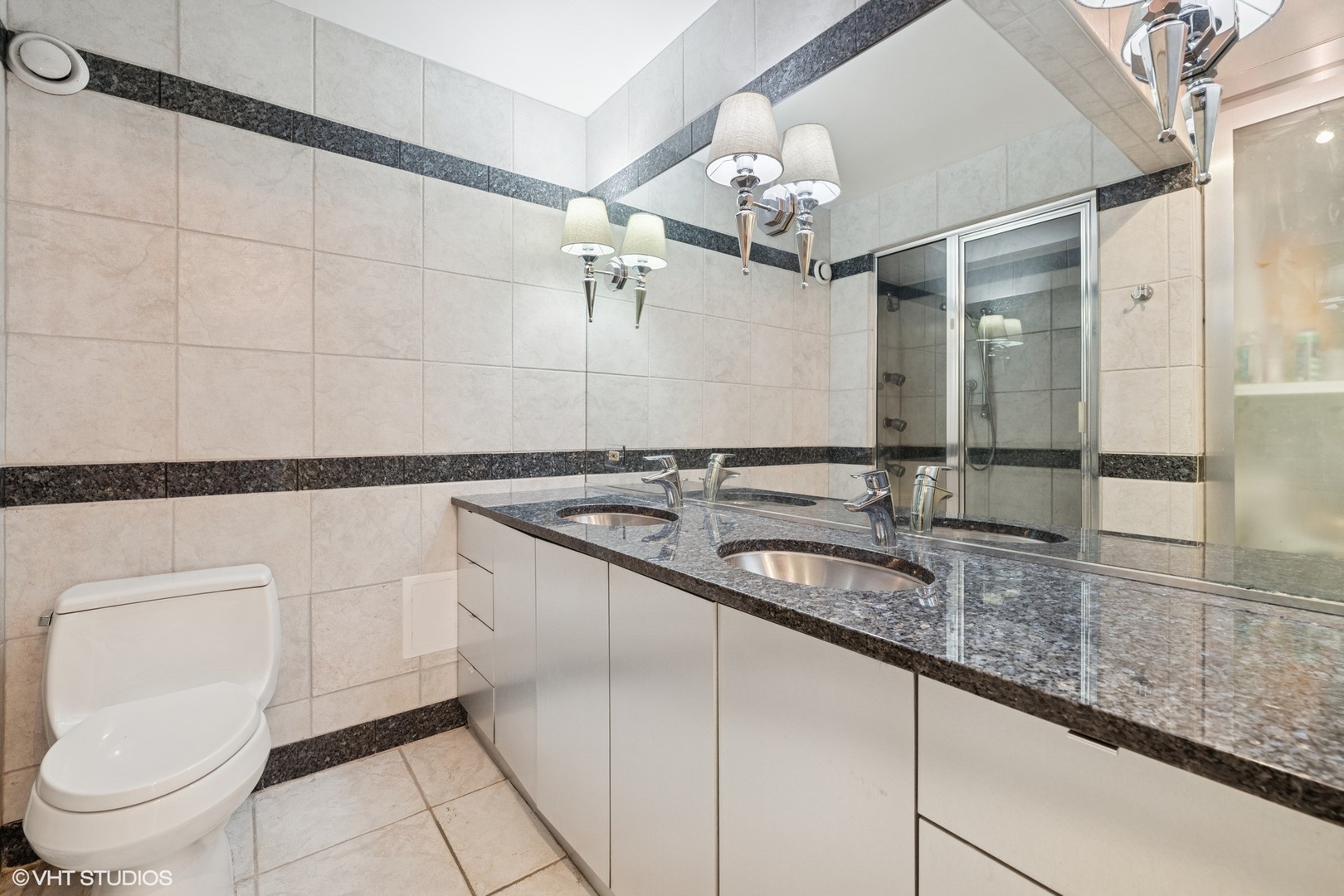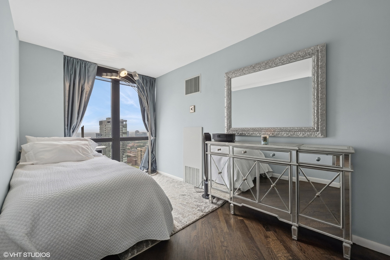 Enjoy beautiful panoramic city views from the southwest corner of one of the top floors at The Elm at Clark. This 3bed+den/3 full bath open concept home has 1800 SQFT of living space and is great for entertaining. Floor-to-ceiling windows showcase stunning city views while the open floorplan floods the home with natural light. An entry foyer has enough space to accommodate a baby grand piano. The living room features a fireplace flanked by built-in bookcases. An upgraded kitchen has granite counters, Sub-Zero, Wolf, Dacor, and Bosch appliances, and a breakfast bar. Conveniently located just off the kitchen, a large, covered balcony is the ideal place to grill, dine, and relax. The living space also offers a den/office, with fantastic views, perfect for working from home. The primary bedroom features porcelain tile flooring, a sitting “nook,” and an ensuite bathroom with double sinks and shower. The second bedroom has an ensuite bath and the third bedroom has a large, walk-in closet. A third full bath is accessible to both the third bedroom and to guests. A laundry room with washer and dryer completes this residence. Two storage cages included in the price. Deeded parking space (P216) available for an additional $40,000. Professionally managed building with 24hr doorman, outdoor pool, fitness room & party room. Steps to the lake, Wells Street, shopping, restaurants, grocery stores, gyms, public transportation, and all the Gold Coast has to offer!