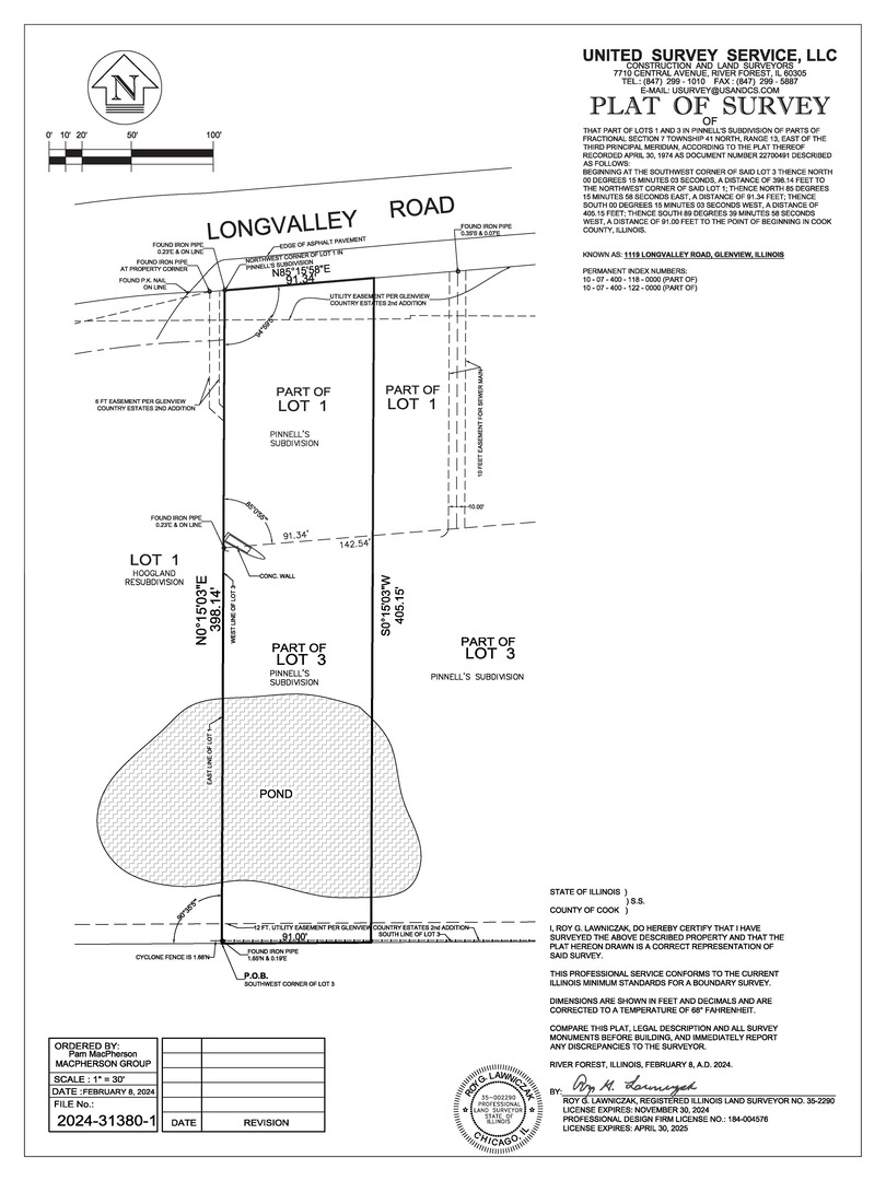 Gorgeous 91×405 buildable lot (With Potential for adding More Frontage!!)at the end of a cul-de-sac in East Glenview with Water Views and Golf Course Views! Build your dream home on this exquisite lot backing up to the Glen View Country Club on a premier street and neighborhood with multi-million dollar homes all surrounding. Situated on an already cleared property with accessible utilities, this property is ready for a luxury home to be built. Along the “bridge streets” connected to Glenayre, The Circles, Golf Acres and the Village of Golf, this almost acre lot has it all: the privacy you want in an accessible location, near downtown Glenview, schools, minutes to 94 to get to the city, and walking trails. Lot 1 on Longvalley Road provides you with picturesque golf course views as well as an idyllic pond, a rare opportunity to build EXACTLY what you have been looking for in District 34 and 225 Nationally Ranked School District. Additional Notes: MULTIPLE Contiguous lots available! Amazing Development Opportunity! The 1125 Longvalley Estate which is located on the south side of Longvalley just east of the river and west of Woodland (current addresses: 1117 (SOLD), 1119, 1121, 1123, 1125 Longvalley lots) -Per Village of Glenview: R-2 Zoning. There are cul-de-sac development opportunities for developers or beautiful already subdivided single family lots available for personal building needs. For additional subdivision: Each parcel must have a minimum of .5 acre and 80ft frontage, all information to be confirmed with Village, variances can be requested. Seller has already successfully prepared a Plat of Subdivision with the Village of Glenview which included multiple tree surveys and tagging, topographical surveys, and drainage engineering. Water/Electric/Sewer available at street. The lot at 1117 Longvalley (92×440) has already been subdivide and sold for $1,400,000. Multiple options for lot breakouts and development opportunities but as of now we are pricing 2 Lots at 92×400+ each (Lots 2/3) at $1,500,000 each and Lot 1 with the pond at $1,299,000. The current 11,000 sq foot estate at 1125 Longvalley which is completely move in ready as well is listed at $4,495,000 on its own with 3.42 acres. The entire almost 6.42 acre parcel plus home is offered at $8,500,000