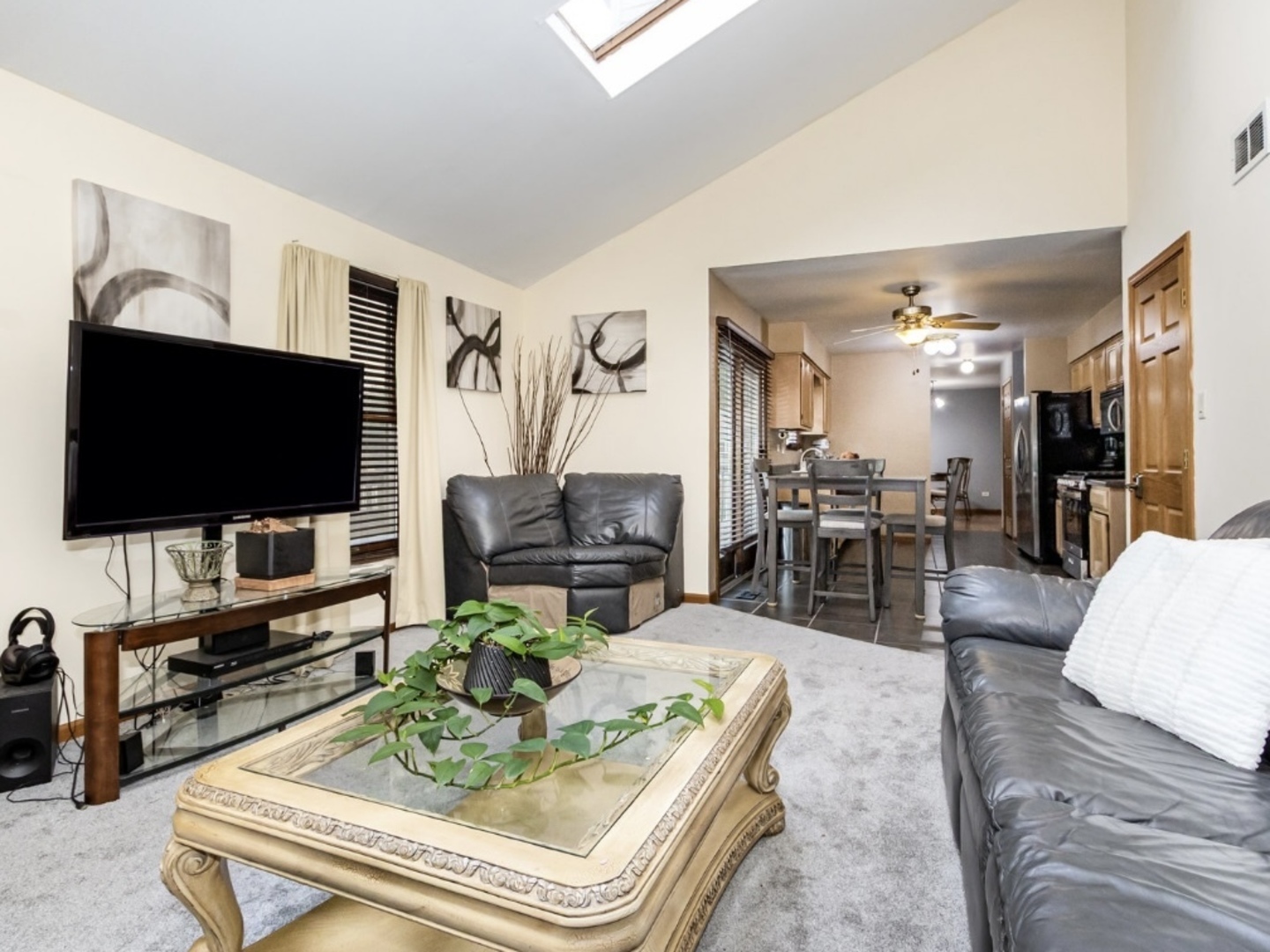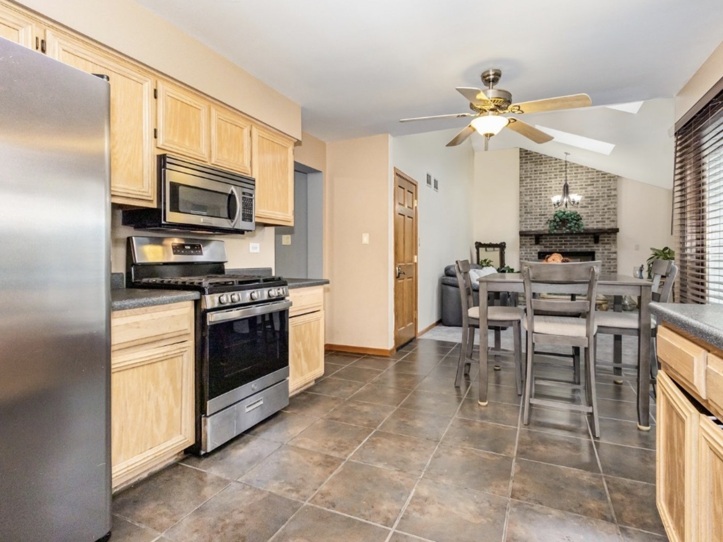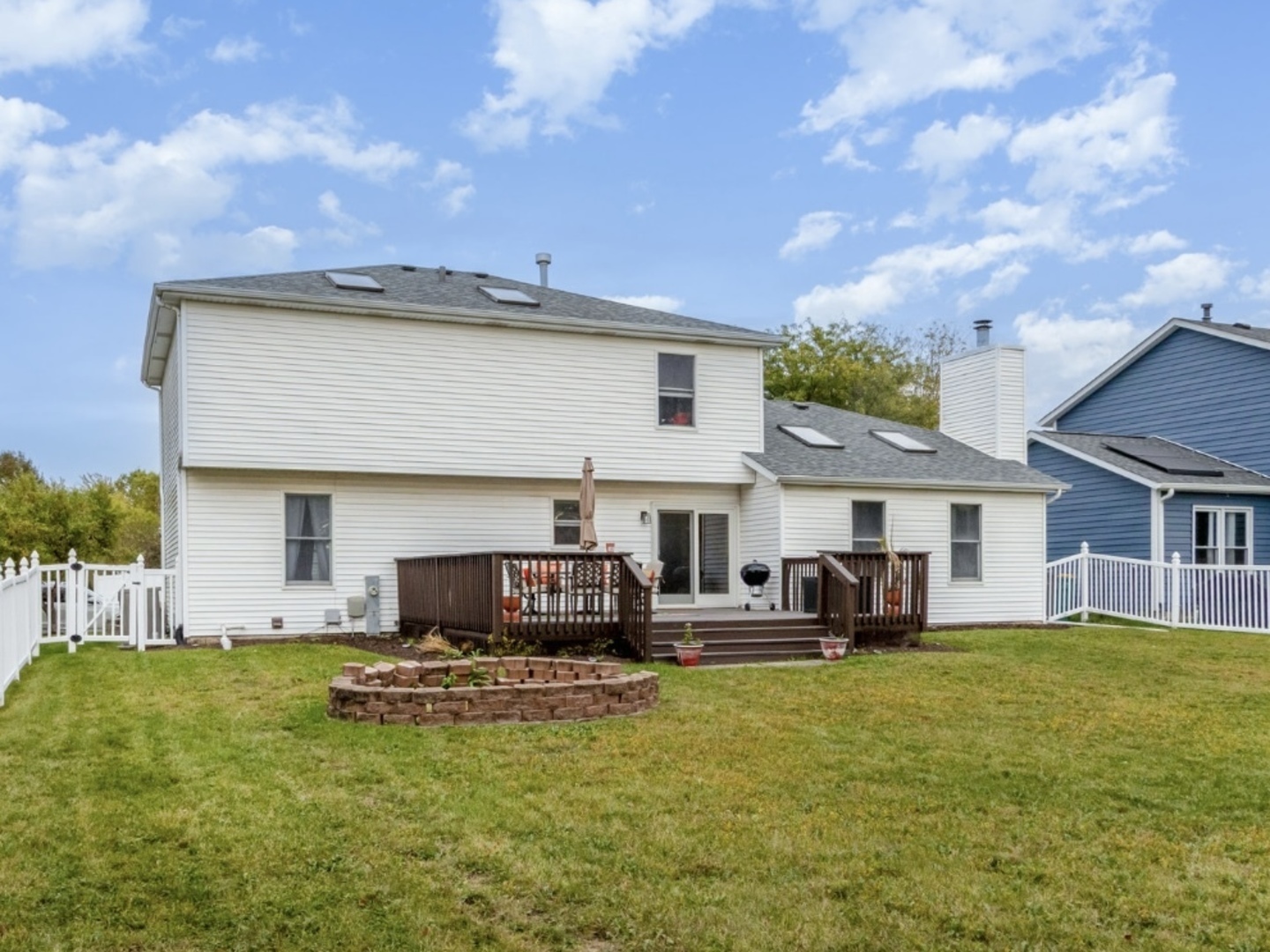 Your next chapter begins here!! This beautifully maintained 4 bedroom 2.5 bath home located in the desirable Cambridge Subdivision offers comfort, charm, and plenty of room! Step inside to a bright, open living and dining are that flows into a spacious family room featuring a cozy fireplace and skylights, creating a warm and inviting atmosphere. The eat-in kitchen offers ample cabinet space, and backyard views perfect for family meals or entertaining. Upstairs you’ll find three generous bedrooms, including a primary suite with a walk-in closet and private bath. The finished lower level provides a fourth bedroom and additional living space ideal for guest, a home office or recreation. Step outside to a tranquil back yard to soak in the beautiful pond views, cast your fishing line, or take the paddle boat out for a relaxing ride. Recent updates include a brand new roof (2024) fully rebuilt deck (2025) new stove (2024) washer/dryer (2024) and water heater (2023). From the moment you walk in to the last step out on the deck, you’ll know this one feels like home!