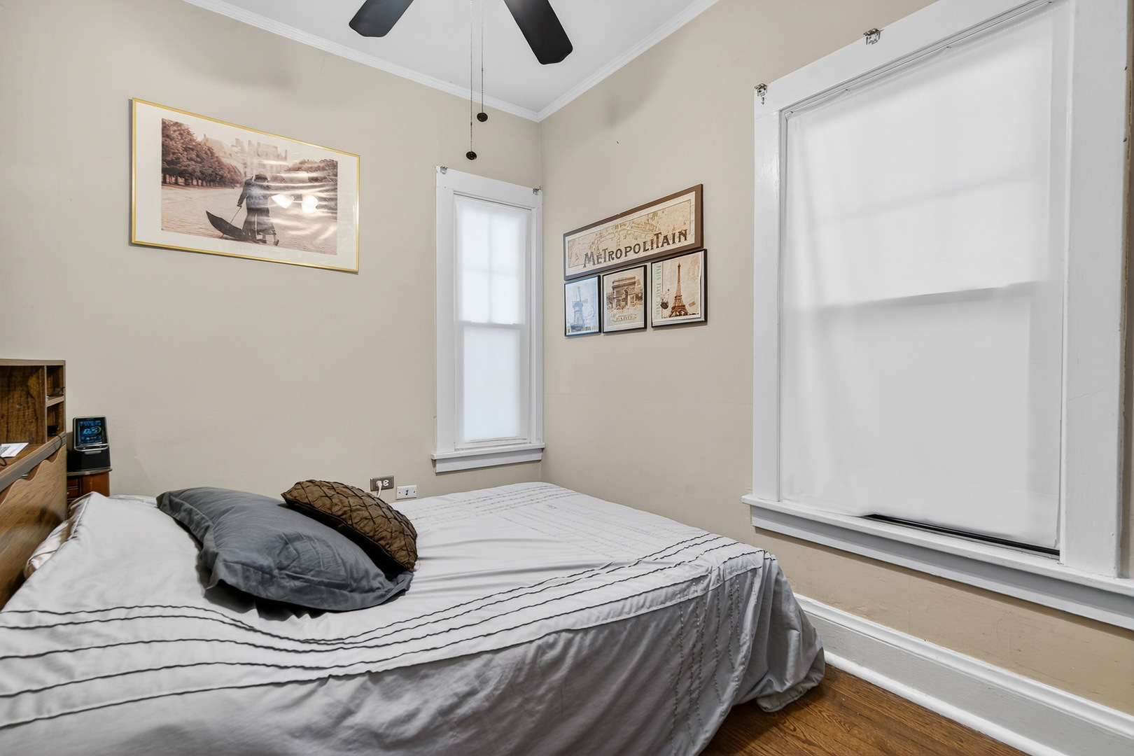 Charming 2 bed, 1 bath Oak Park bungalow filled with character. This home features hardwood floors throughout, an enclosed front porch, spacious living room, and separate dining room. The kitchen offers a walk-in pantry. Both bedrooms share the hall bathroom with soaking tub. Full unfinished basement with exterior access-perfect for storage or future expansion. Enjoy a fully fenced backyard with a patio, ideal for relaxing or entertaining. A detached one-car garage adds extra convenience. Fantastic location close to I-290, the Blue Line, and multiple bus routes for easy commuting.
