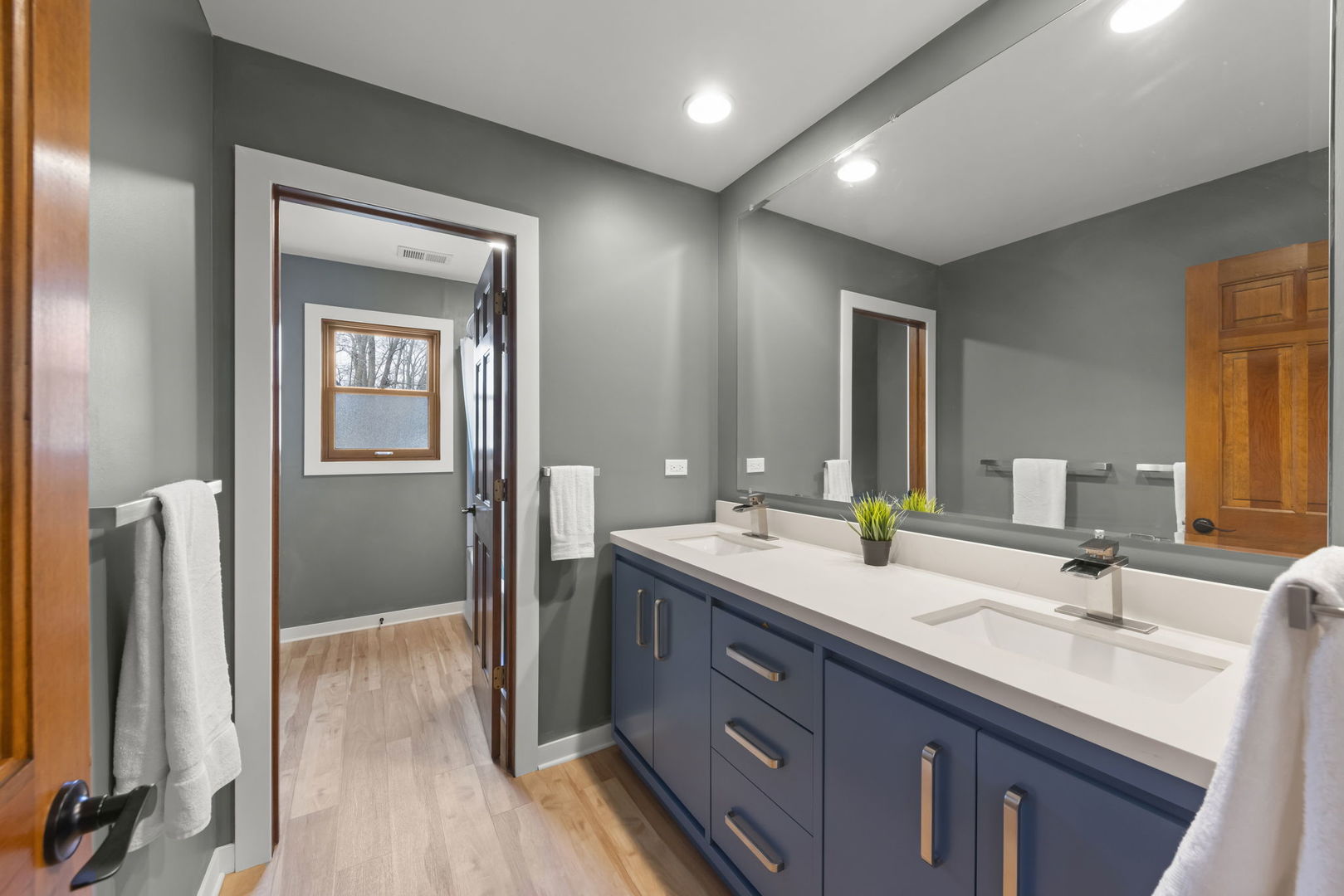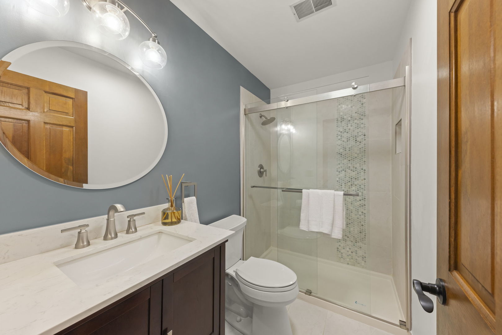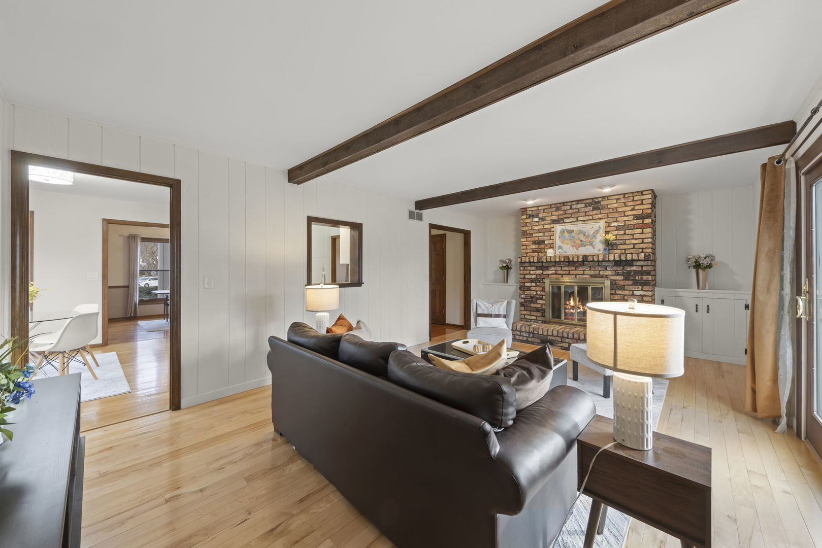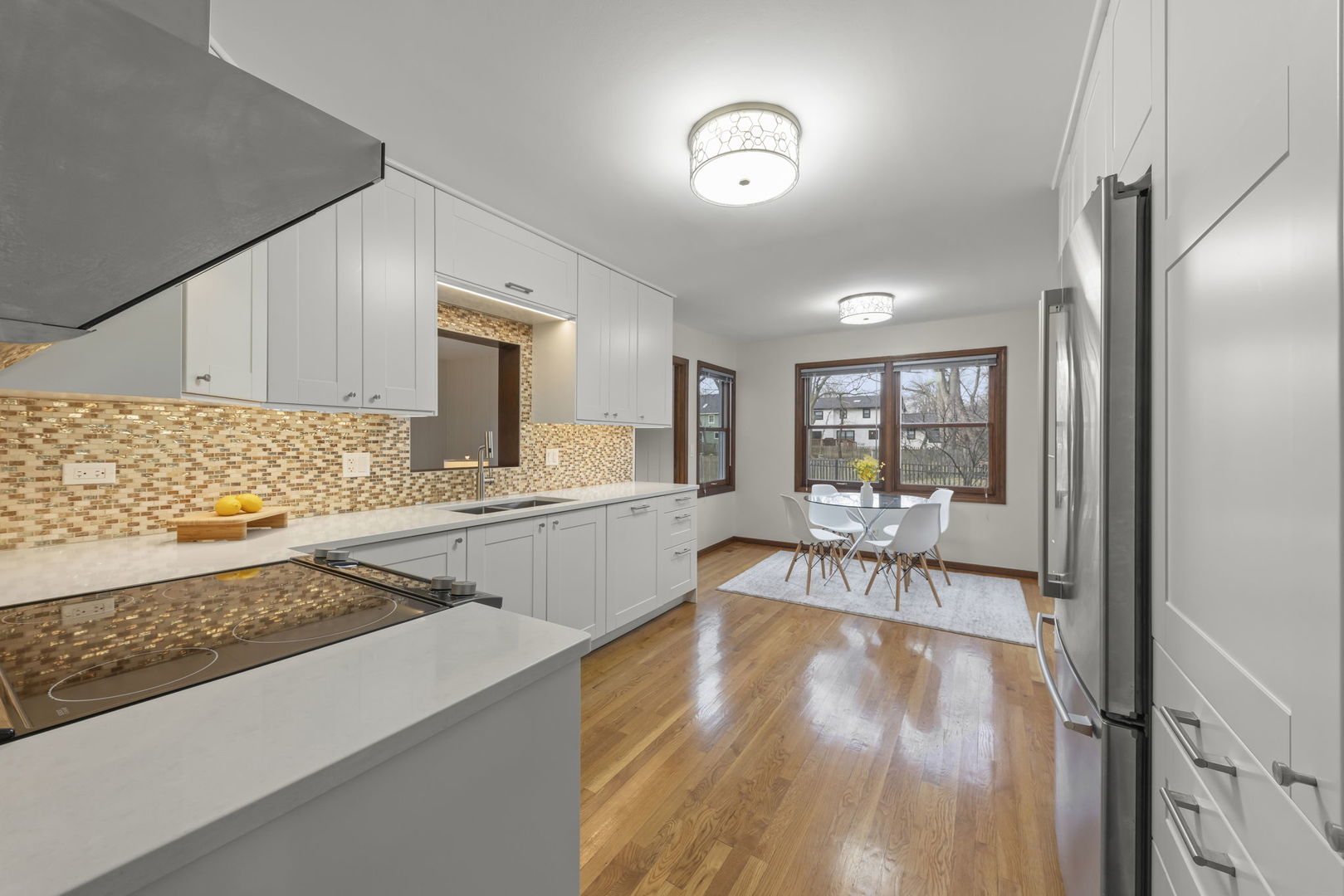 Enjoy cul-de-sac living in sought-after Huntington Estates, ideally situated in a prime northeast Naperville location. This updated 5 bedroom, 3 bathroom home is designed for flexibility and everyday function. From the moment you enter, rich hardwood flooring and freshly painted interiors welcome you in the spacious foyer and elegant dining room. The chef’s kitchen will impress with crisp 42-inch white cabinetry, quartz countertops, stainless steel appliances, eating area and generous prep space that flows into the living room with natural wood beams, a cozy fireplace and backyard views. The main level laundry room and mudroom provide added convenience. A sun-filled vaulted family room upstairs provides a flexible retreat, while all five bedrooms are thoughtfully located on the upper level, including a serene primary suite and renovated hall bath, both updated in 2019. Additional living space includes a mid-level recreation room ideal for a home office or lounge as well as an unfinished sub-basement that offers ample storage and is ready for customization. The fenced backyard with patio is situated on a .3 acre lot with perennial gardens, a shed, and ample green space for outdoor enjoyment. Residents enjoy Huntington Estates amenities including a pool, tennis courts, and park, all within highly acclaimed Naperville School District 203- Highlands Elementary, Kennedy Junior High, and Naperville North High School-with access to shopping, the Metra train, highways, and downtown Naperville.