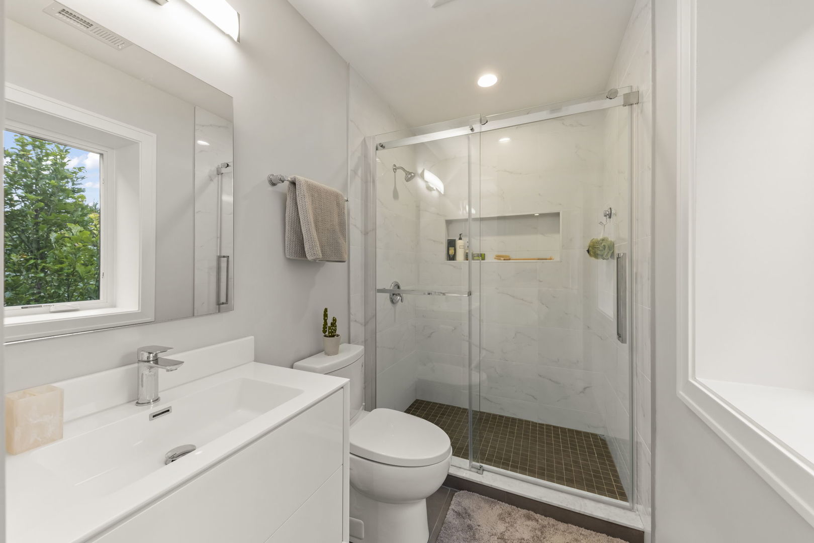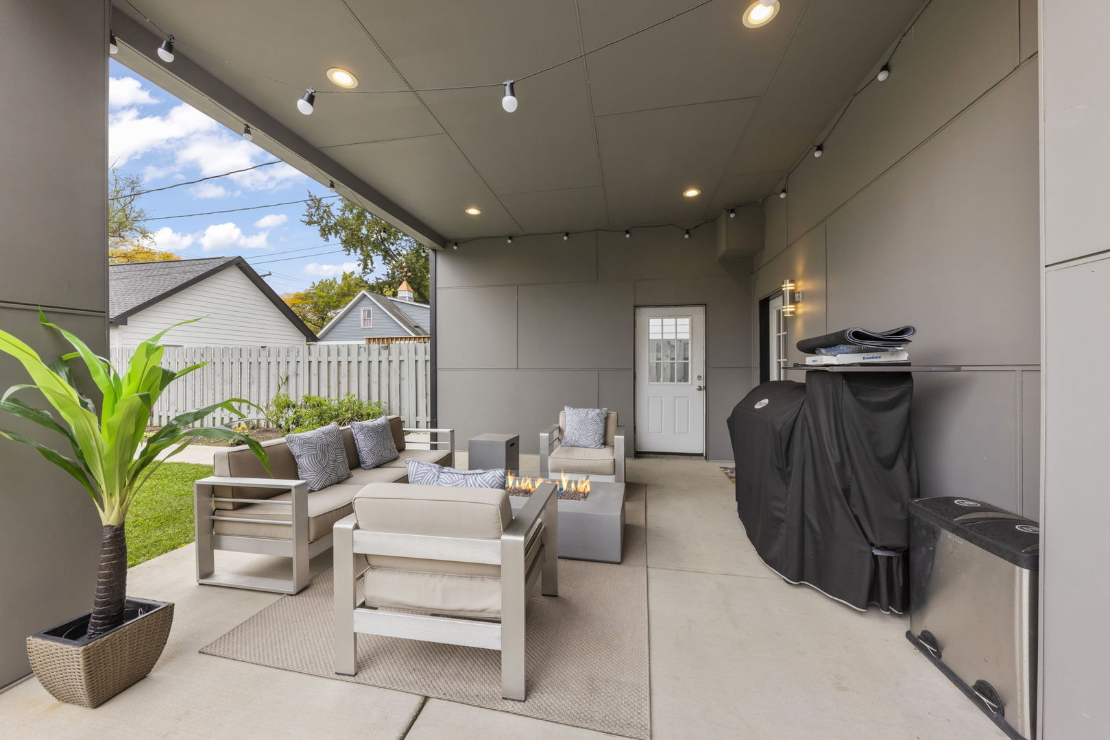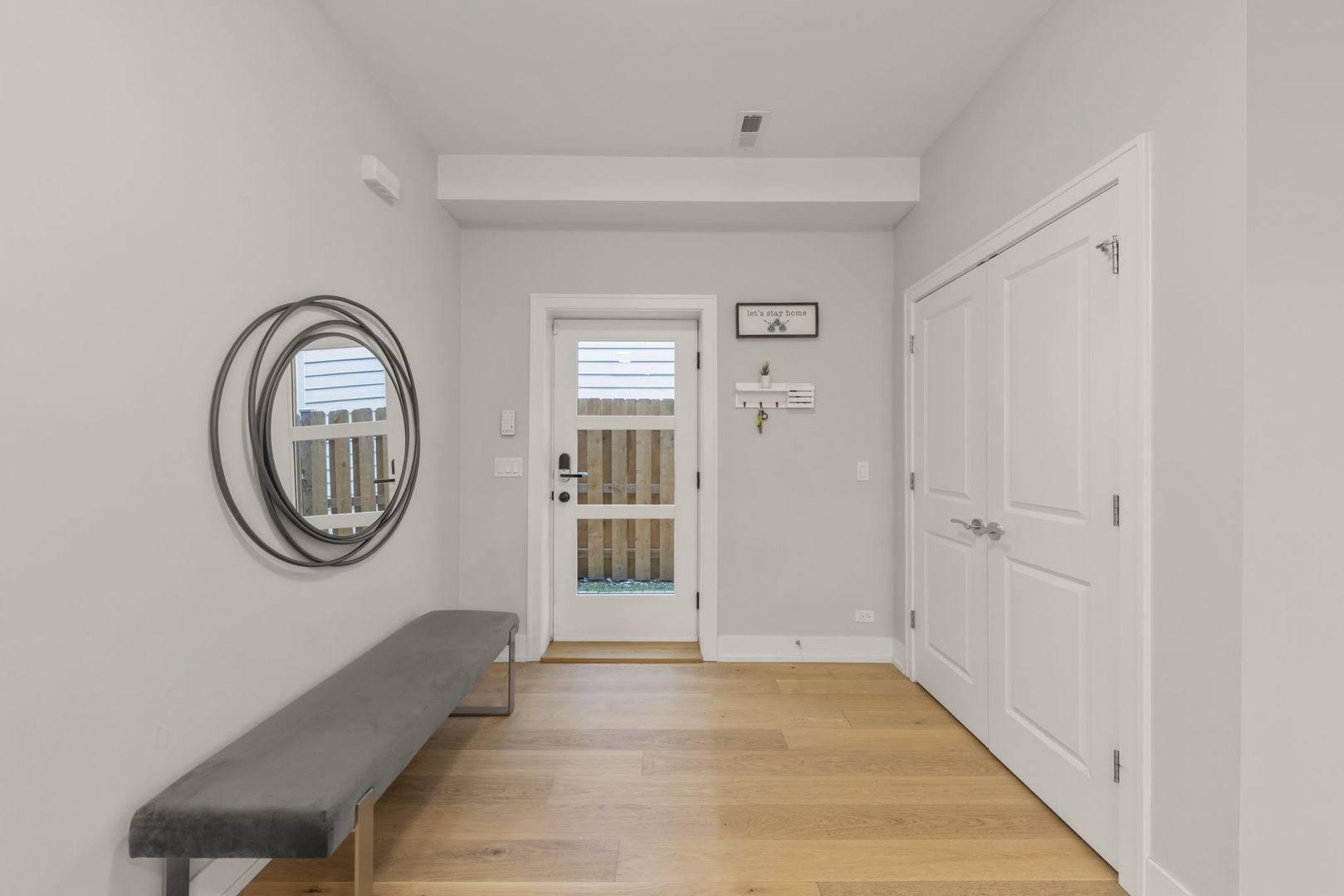 East-facing and beautifully designed, this exceptional home blends modern luxury with thoughtful functionality. Step inside to discover 6″ wide hardwood plank flooring throughout and a stunning open-concept layout that flows effortlessly from the grand entryway to the expansive kitchen and family room. The chef’s kitchen impresses with 42″ cabinetry, a quartz waterfall island with open shelving, a wine fridge, overhead vent hood, and gently textured subway tile backsplash. A walk-in pantry and spacious dining area make entertaining easy. The living room, family room and optional office/craft/bedroom ALL feature flexible layouts. Sliding glass doors provide access to the covered AND uncovered patio areas, overlooking an expansive flat yard-perfect for a playset, garden, or future pool. The fully fenced yard includes two gates, concrete walkways, and garden bed. Upstairs, find five bedrooms including a versatile ensuite with dual closets AND the primary en-suite offering a large walk-in with California Closet storage plus an additional flex room ideal as a nursery, prayer room, or second closet. The upper-level laundry room features Samsung washer/dryer, utility sink, and ample cabinetry. Every detail has been thoughtfully chosen including elevated-Hunter Douglas shades (automatic on the main level), Andersen windows with deep 14″ sills, Nest thermostat, Vivint security system, Navien tankless water heater, and dual Trane HVAC. The three-car garage offers custom shelving and a Tesla charger that stays. Situated walking distance to schools, near Devon Market and close to the beach, this home delivers convenience, comfort, and cutting-edge design.
