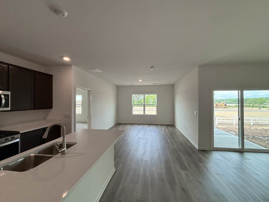 Envision yourself at 1128 Bluebell Lane, Bartlett, Illinois, a beautiful new home in The Grasslands community. This ranch duplex home will move-in Ready NOW! Homesite includes fully sodded yard, landscaping and covered back patio. The Taylor offers 1,505 square feet of living space with 3 bedrooms, 2 baths, and 9-foot ceilings. When you first enter the home you will see the secondary bedroom, full bathroom, and linen closet. Down the hall, you will walk into the open concept great room, kitchen, and dining. The kitchen layout includes a large island with an overhang for stools, 42-inch designer cabinetry with crown molding and soft close drawers. Additionally, the kitchen features a pantry, modern stainless-steel appliances, quartz countertops, and easy-to-maintain luxury vinyl plank flooring. Enjoy your private get away with your spacious primary bedroom and en suite bathroom with a raised height dual sink, quartz top vanity, and walk-in shower with clear glass shower doors. All Chicago homes include our America’s Smart Home Technology, featuring a smart video doorbell, smart Honeywell thermostat, smart door lock, Deako smart light switches and more. Photos are of actual home.