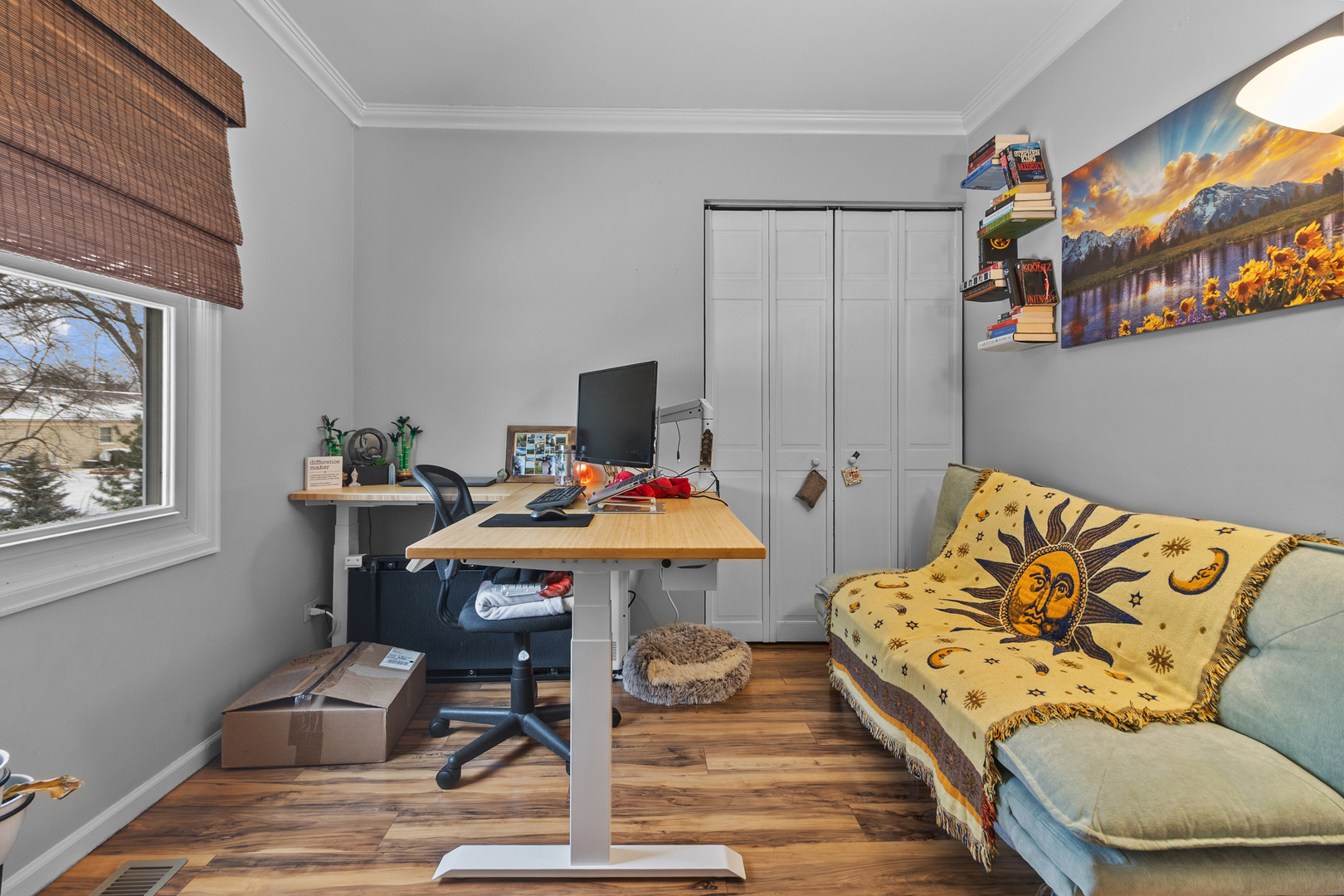 Say hello to a home that refuses to be boring. This 3-bedroom, 1.5-bath tri-level is not here to blend in. It’s here to be remembered. The moment you step inside, BOOM!… a soaring cathedral ceiling with exposed beams stretches across the entire main living space like it’s auditioning for a design magazine. Newer laminate flooring keeps things stylish and low-maintenance, while the kitchen proudly marches to the beat of its own drum: butcher-block counters, wainscoted walls, a pantry closet, shiny stainless steel appliances (all about 3 years young), and a moveable island that has officially abandoned “prep space” to live its best life moonlighting as a full-time coffee bar. The separate dining room is roomy enough for dinner parties, craft explosions, or that one puzzle you swear you’ll finish. The living room is cozy and charming, but don’t worry, it’s NOT at all small! Upstairs, all three bedrooms are hanging out together like a well-behaved sitcom cast. The HUGE primary bedroom features triple mirrored closet doors so you can check your outfit, practice your victory pose, or accidentally startle yourself at night… dealer’s choice. The guest room is the only one with carpet because it likes being unique (but extra laminate flooring will be included), plus a third bedroom and a delightfully updated bathroom with an extra-deep soaker tub, tile floor, and a Bluetooth smart light/speaker so your shower can double as a concert venue. The lower level is where the vibes get extra good: a newly renovated half bath, laundry room with stacked washer & dryer, a mudroom ready for boots, bags, and chaos, and an awesome family room (guitar mounts not included, but rock-star dreams are welcome) with a walk-out through a brand-new patio door to a backyard that clearly understood the assignment. Out back, you’ll find a concrete and paved patio, paver walkway, movable fencing creating a VIP pet lounge, full perimeter fencing, raised garden beds for your farm-to-table fantasies, and a garden shed that quietly holds all your “I’ll deal with this later” stuff. Toss in a 1.5-car (extra-deep) attached garage, freshly painted interior, newer replacement windows, and brand-new pull-down attic stairs, and this home is basically overachieving. Big-ticket updates are already handled too: Furnace & Aprilaire (2011), Central Air (2014), and Water Heater (2019). And just when you think it can’t get better, BOOM again! You’re conveniently located near the library and the Bartlett Park District amenities like the Community Center (pool, gym, fitness center, programs), Nature Center, golf, skate park, parks, and trails, plus senior living options (Victory Centre), schools (Centennial), and a bikeable, quiet suburban environment with nearby golf (Apple Orchard) and skiing (Villa Olivia) for recreation. This isn’t just a house. It’s a real home with personality, punch, and a little bit of sass, ready for someone who appreciates a home that doesn’t take itself too seriously. Come see it before someone else falls in love first!