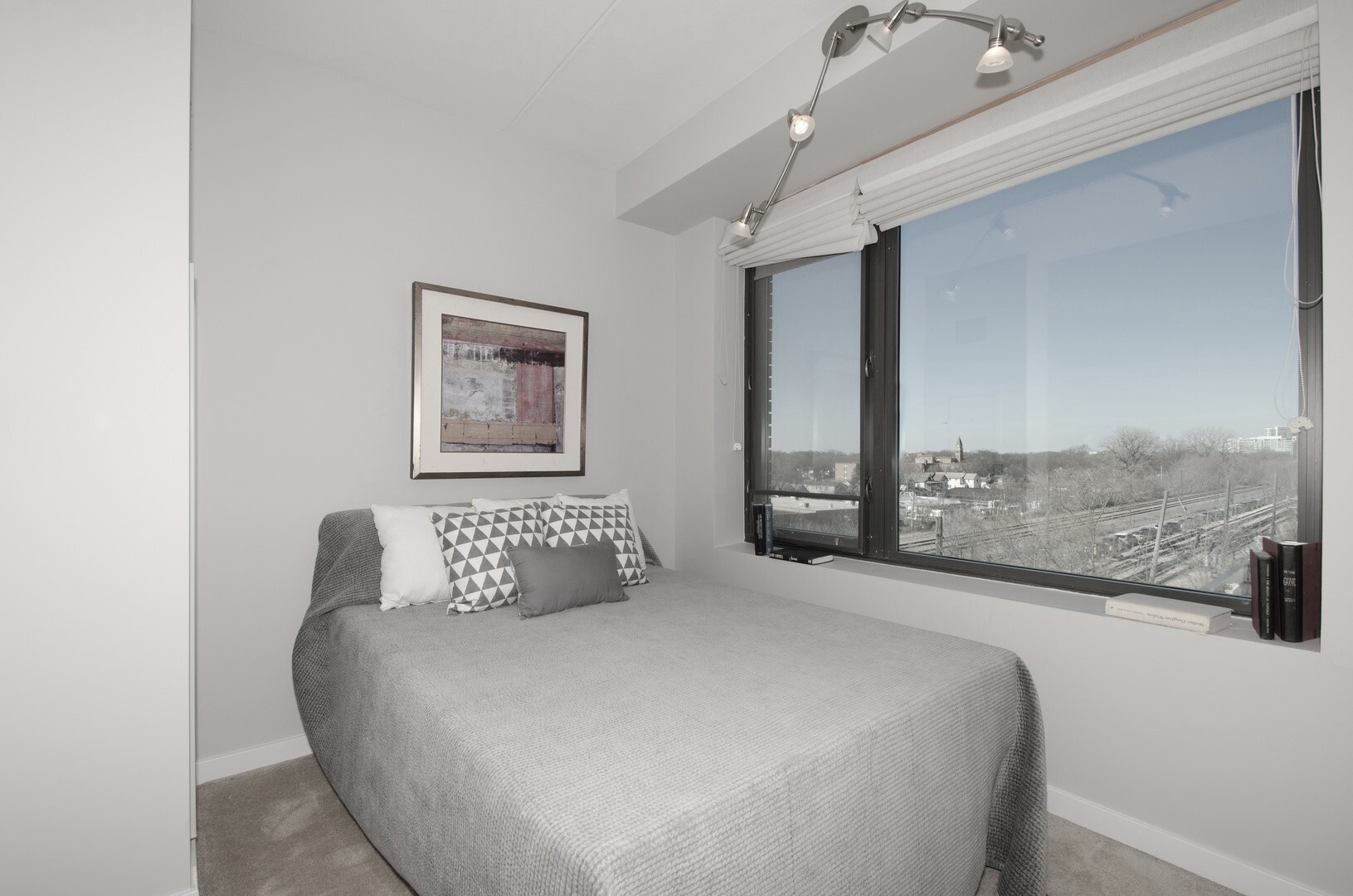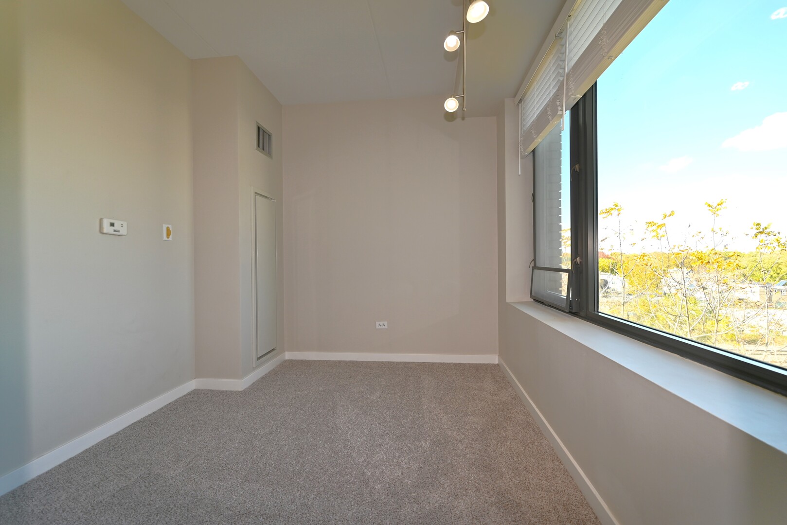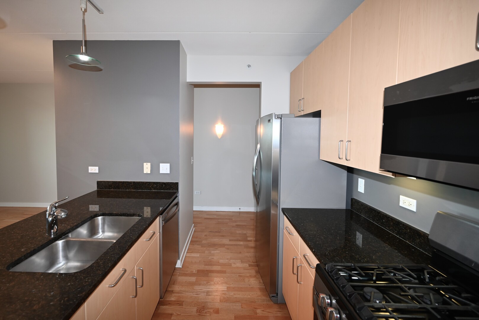 This sleek unit with in-unit laundry, private balcony, central air, and parking is ideally located at Main St. & Chicago Ave., which is absolutely perfect for all commuters: Purple Line, Metra North Line + a tandem garage space for two cars. Built in 2005, this modern building offers a welcoming lobby, fitness room, bike room, and a storage cube. You will appreciate the hardwood floors + the bedrooms feature, brand-new carpet. There is in-unit-laundry + a fully featured kitchen with granite counters, breakfast bar, stainless steel appliances, maple cabinets, garbage disposal, built-in microwave & ice/water dispenser for the refrigerator. The 2nd bedroom is ideal for an office, guest room, or kids room or baby’s room. The large, private balcony offers western views. Solid, pre-cast concrete construction enhances privacy. — Cafes, restaurants, shops, trains, buses, NU shuttle, all at your door step + Trader Joe’s, Lake Michigan are just a few blocks away. — Professionally managed building with with a low monthly HOA assessment of $463.16, includes basic cable TV, internet, parking, water, gas and production of heat and air conditioning. Garage space for two cars (P31 & P10T.)
