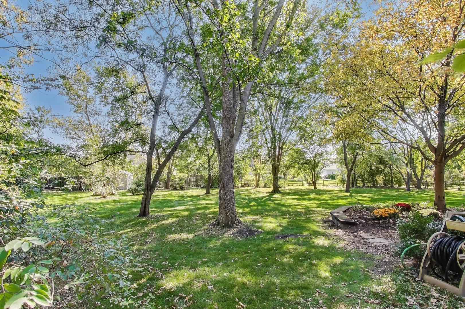This beautifully maintained 4-bedroom, 2.5-bath residence sits on nearly an acre of serene, tree-lined land, offering the perfect blend of privacy and convenience. Nestled within a sought-after neighborhood and award-winning school district – School bus picks up right at your driveway. This home is just minutes from local restaurants and shopping-giving you the best of both worlds. Step inside to discover stunning inlaid hardwood floors, a welcoming family room with a cozy gas fireplace, and a spacious layout designed for everyday living and effortless entertaining. The beautifully designed primary suite features a walk-in closet built to keep you perfectly organized and a relaxing jacuzzi tub for spa-like comfort. The full basement provides abundant storage or potential for future finishing, while modern upgrades-including new siding and LeafGuard gutters (2024), an ADT security system, and a Ring doorbell with chimes-offer peace of mind and efficiency. Outside, your private backyard feels like a sanctuary-an expansive green space shaded by mature trees, ideal for gatherings, gardening, or quiet mornings with coffee. Enjoy the charm of the covered wraparound front porch and the paver brick patio and walkway, creating the perfect setting to relax or entertain. This is more than a house-it’s a place to feel at home, inside and out. No tax exemptions, taxes will be lower