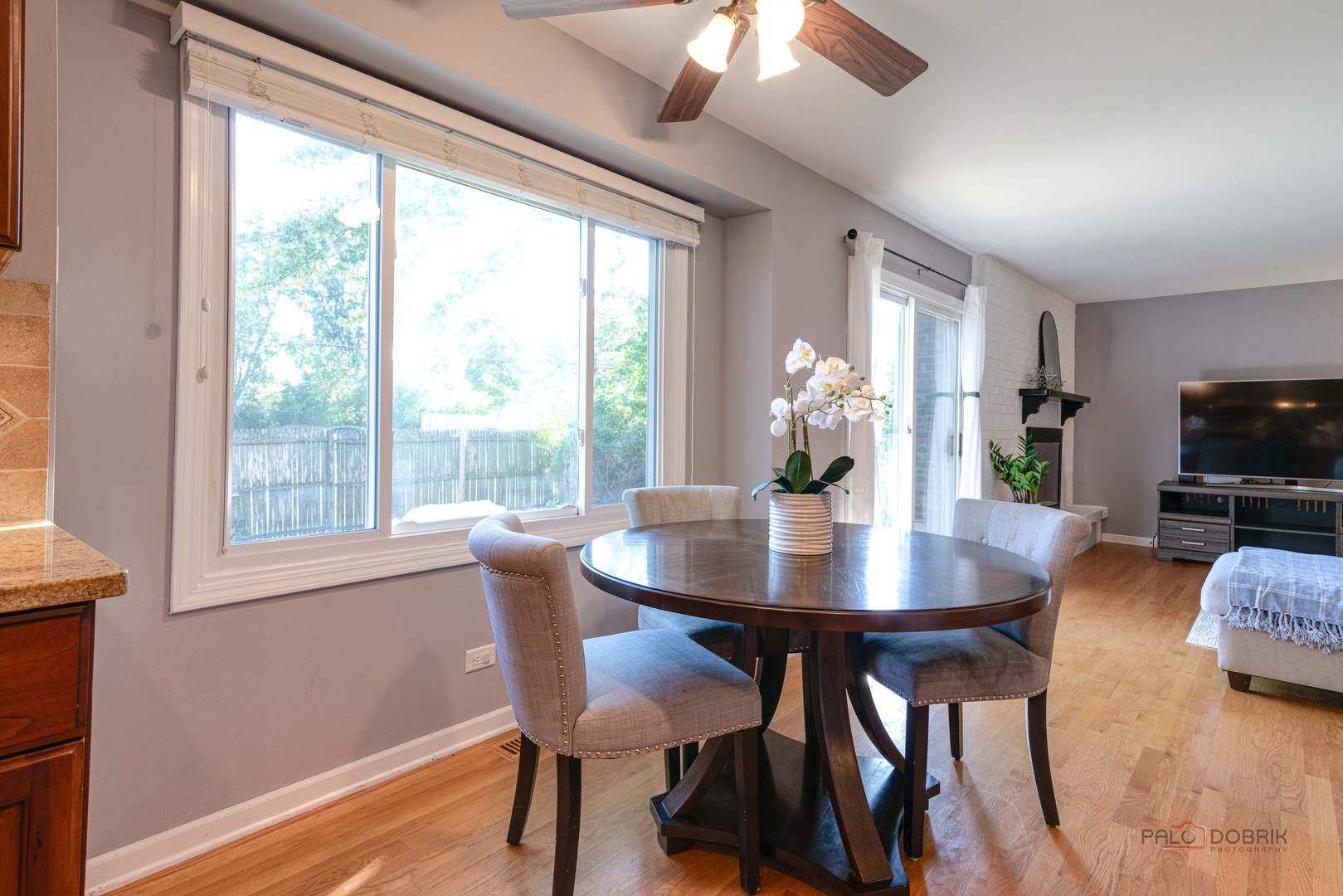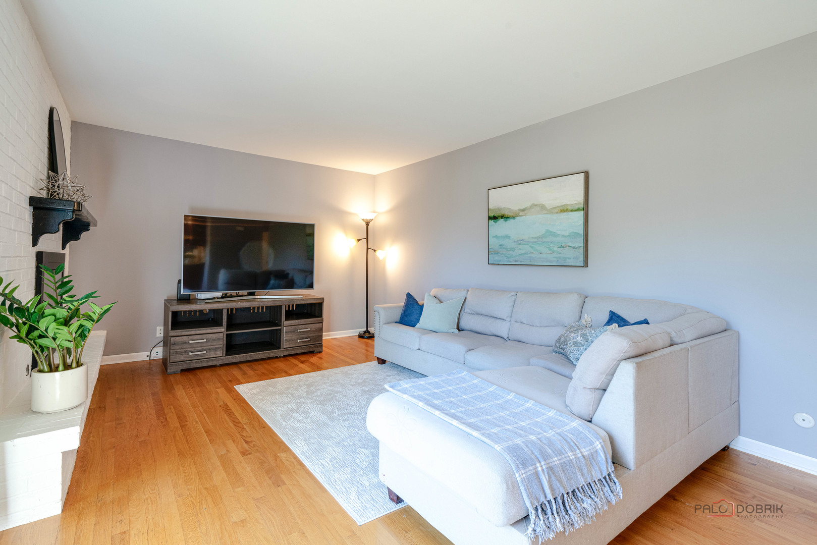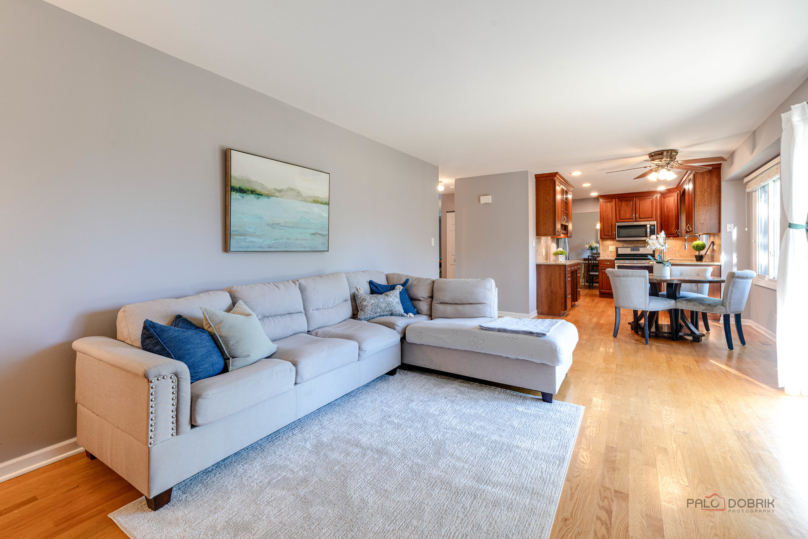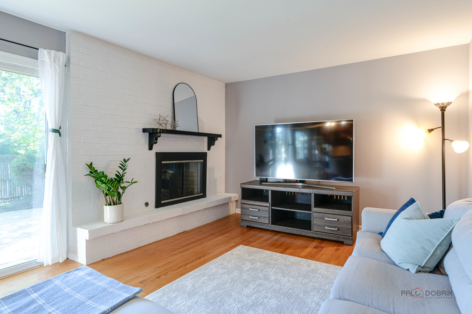 Welcome home! Imagine entering from your inviting front porch into a beautifully maintained residence filled with warmth and charm. The spacious living and dining rooms with gleaming hardwood floors set the perfect stage for entertaining. The stylish kitchen is a chef’s delight, featuring sleek cabinetry, granite countertops, stainless steel appliances, a tasteful backsplash, and hardwood flooring. Relax in the cozy family room boasting a brick fireplace and direct exterior access to the backyard. The expansive master suite offers a private retreat with an ensuite bath and walk-in closet, ideal for unwinding at the end of the day. The finished basement provides additional living space, perfect for a playroom, rec room, or home theater. Recent updates include a new roof (2024), gutters and gutter guards (2024), downspouts (2024), second-level flooring (2024), and window exterior framing (2024), along with furnace and A/C replaced in 2013. A truly move-in ready home with timeless finishes and modern upgrades throughout!