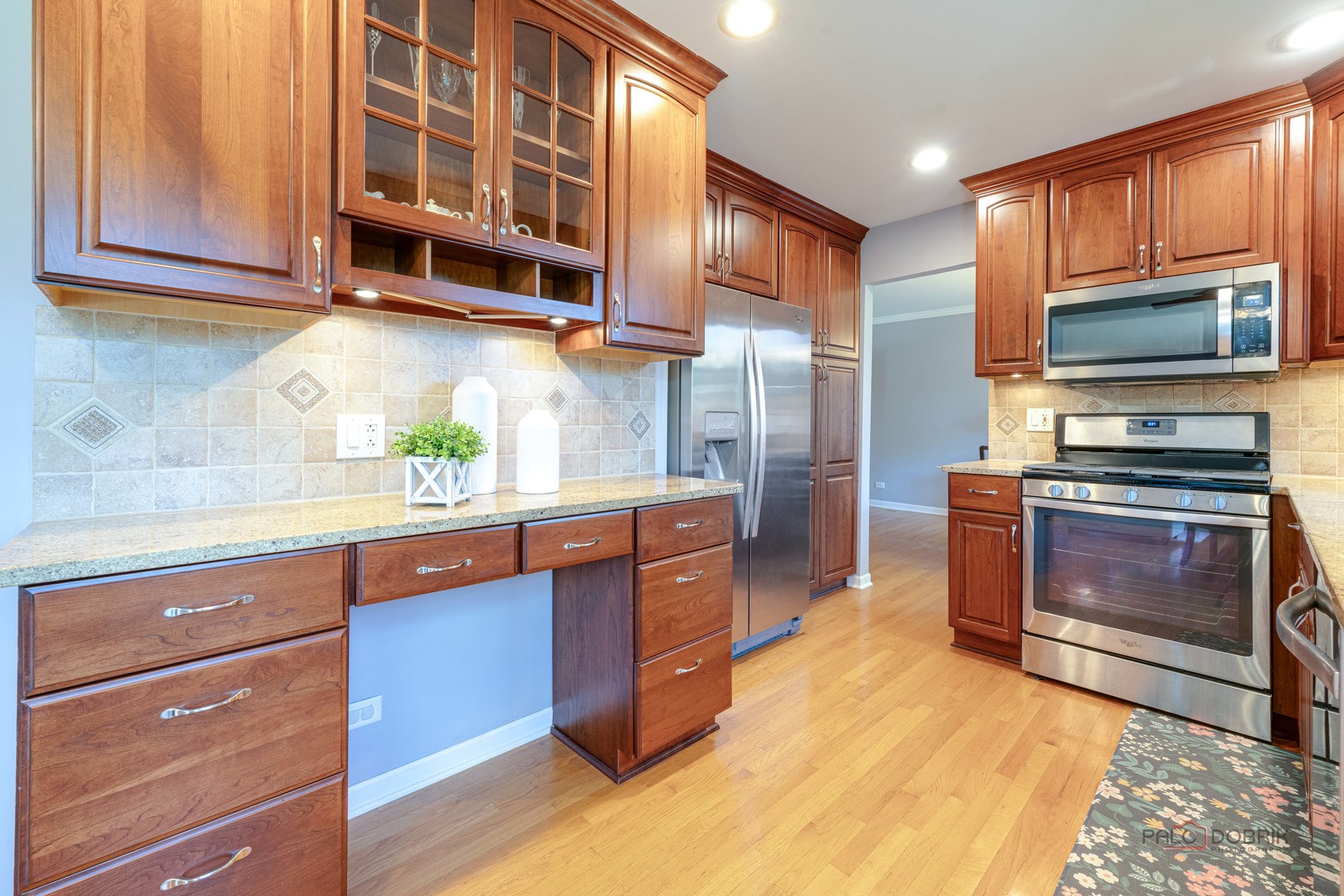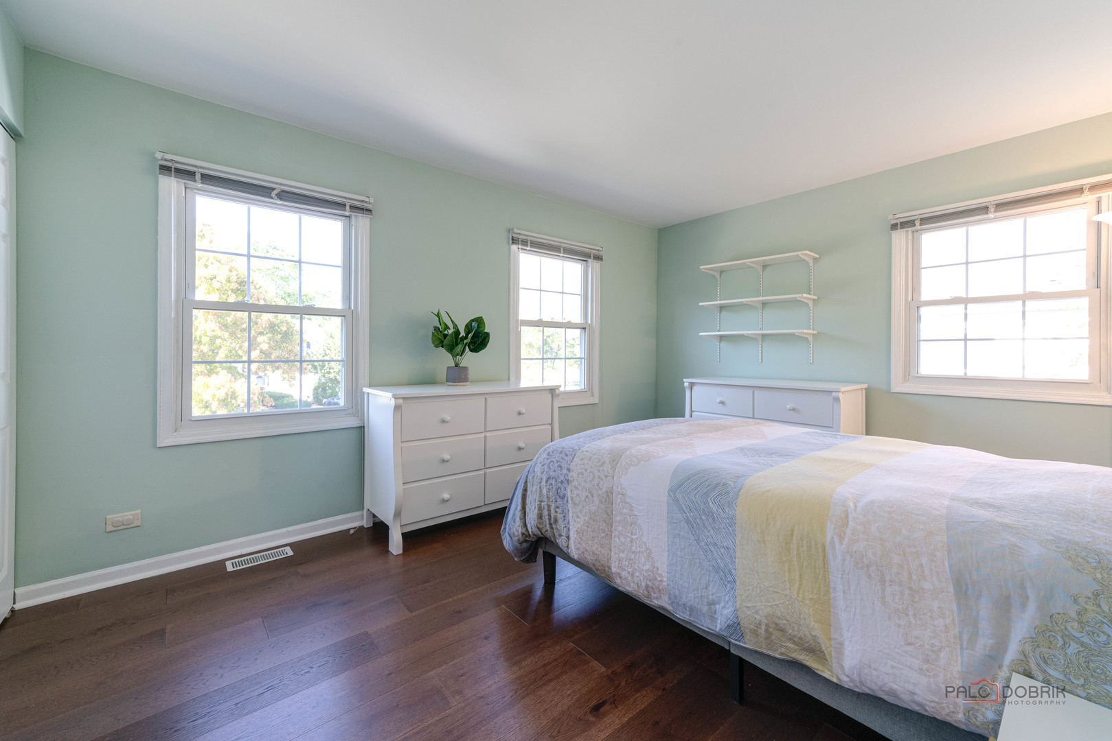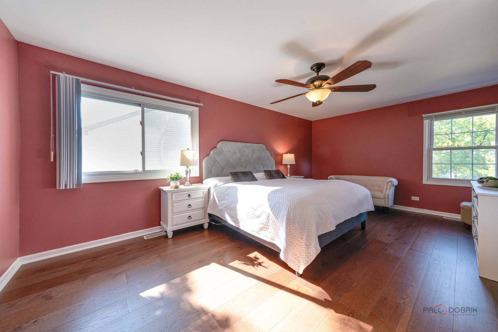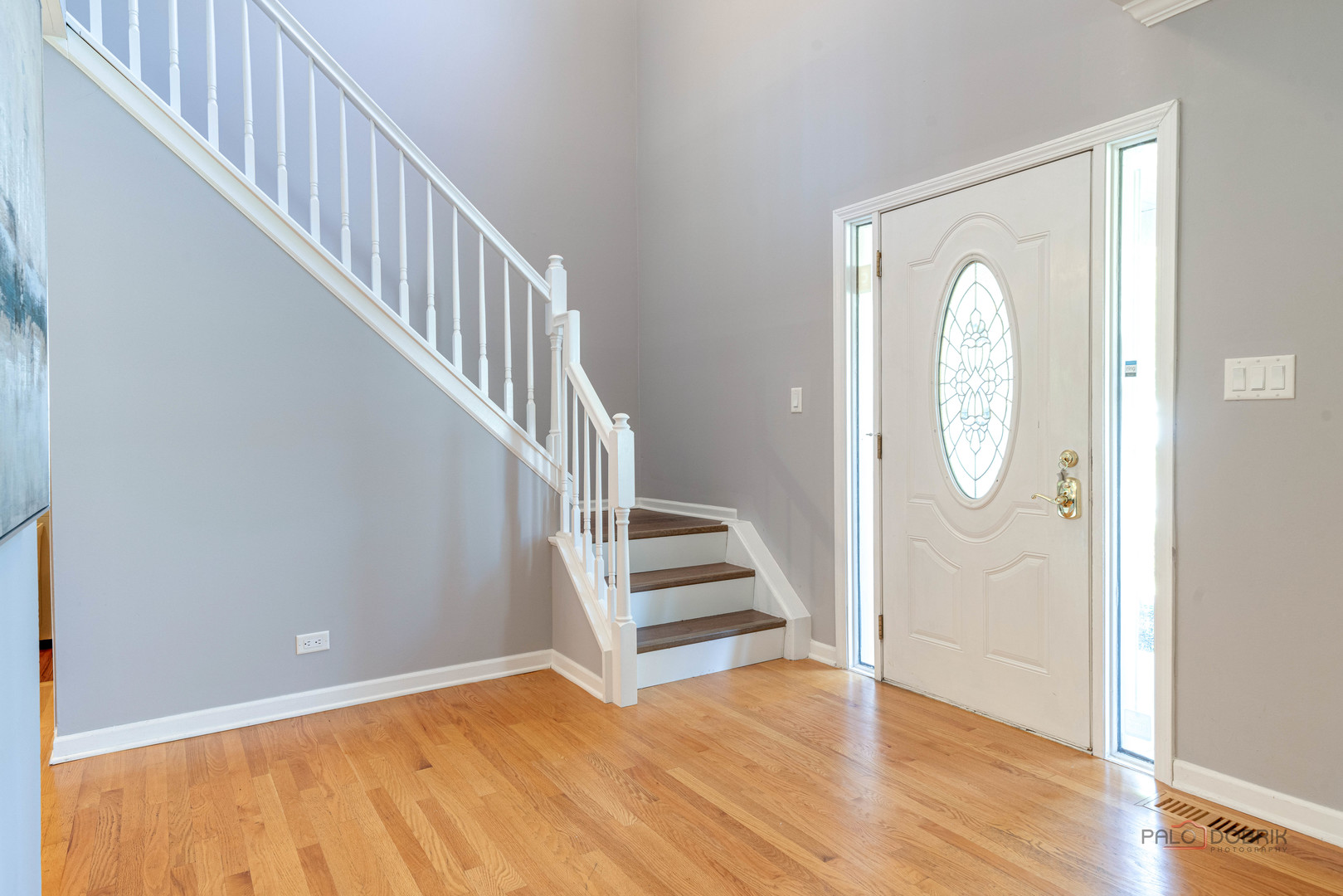 Welcome home! Imagine entering from your inviting front porch into a beautifully maintained residence filled with warmth and charm. The spacious living and dining rooms with gleaming hardwood floors set the perfect stage for entertaining. The stylish kitchen is a chef’s delight, featuring sleek cabinetry, granite countertops, stainless steel appliances, a tasteful backsplash, and hardwood flooring. Relax in the cozy family room boasting a brick fireplace and direct exterior access to the backyard. The expansive master suite offers a private retreat with an ensuite bath and walk-in closet, ideal for unwinding at the end of the day. The finished basement provides additional living space, perfect for a playroom, rec room, or home theater. Recent updates include a new roof (2024), gutters and gutter guards (2024), downspouts (2024), second-level flooring (2024), and window exterior framing (2024), along with furnace and A/C replaced in 2013. A truly move-in ready home with timeless finishes and modern upgrades throughout!