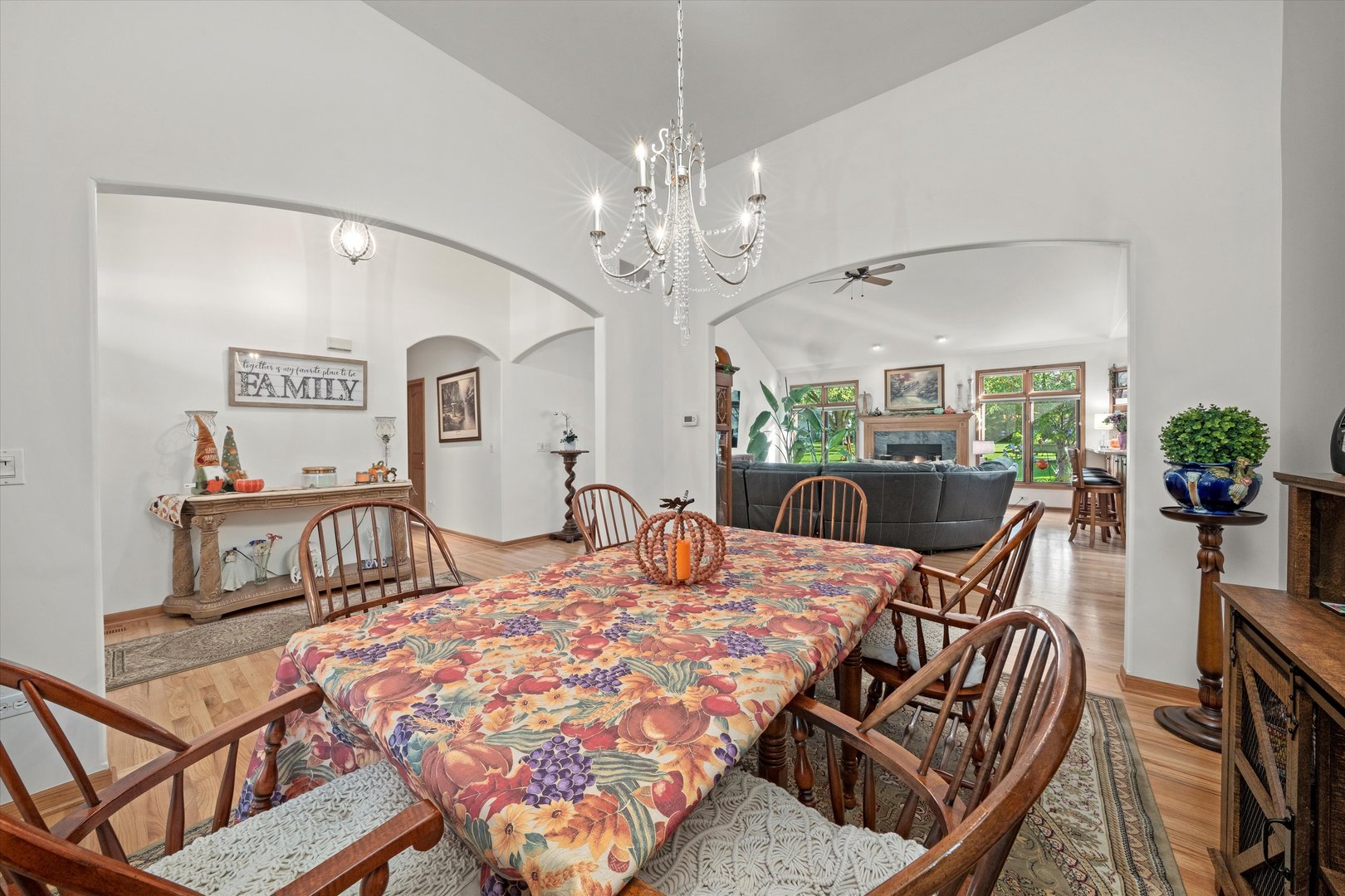 CUSTOM BUILT TRUE RANCH ON NEARLY 3/4 OF AN ACRE. THIS ALL BRICK 3 BEDROOM 3 1/2 BATH HOME HAS THE POTENTIAL FOR A 4TH BEDROOM. A BRICK WALKWAY LEADS TO A COVERED PORCH IDEAL FOR CONVERSTAIONS. THE FRONT DOOR ATRIUM WINDOW ALLOWS NATURAL LIGHTING TO THE GRAND FOYER WITH 12 FOOT CEILINGS. ARCHWAYS WITH ROUND CORNERS OPEN UP TO THE TALL CEILING IN THE FORMAL DINING ROOM AND LIVING ROOM CATHEDRAL CEILINGS. A GAS LOG FIREPLACE IS THE FOCAL POINT WHERE HARDWOOD FLOORS FLOW THROUGHOUT THIS RANCH WITH NO INTERIOR MAIN LEVEL STEPS. THE EAT-IN KITCHEN COMPRISES OF PLENTY OF SEATING WITH A 4 STOOL BREAKFAST BAR, 3 STOOL CENTER ISLAND AND EATING AREA ENOUGH TO SIT 6 COMFORTABLY. 10 FOOT CEILINGS OPEN UP THIS SPACE OVERLOOKING THE LIVING ROOM. GRANITE COUNTERTOPS, DOUBLE DOOR PANTRY, LAZY SUZANNE, GORGEOUS MAPLE CABINETS, TILE BACKSPLASH AND CAN LIGHTING ENHANCE THE KITCHEN. A SLIDING DOOR LEADS TO A 4 SEASON SUN ROOM WITH EPOXY FLOOR AND GREAT VIEWS OF THE BACKYARD, PERFECT FOR RELAXATION. THIS SPRAWLING RANCH OFFERS 3 BEDROOMS ALL EQUIPPED WITH CEILING FANS AND SOLID OAK DOUBLE PANEL DOORS. THE 2ND BEDROOM HAS A WALK-IN CLOSET. THE GENEROUS SIZED PRIMARY SUITE OFFERS A BIG WALK-IN CLOSET, TRAY CEILING, SITTING AREA WITH BUMP OUT WINDOWS, FULL BATH COMPOSED OF DOUBLE SINKS, WATER CLOSET, SOAKING TUB AND SEPARATE SHOWER. A FULL BATH IS IN THE HALLWAY WITH SKYLIGHT CLOSE TO ALL OF THE BEDROOMS. AN ADDITIONAL HALF BATH IS SITUATED ON THE OTHER END OF THE HOUSE. NEXT TO THE LAUNDRY ROOM THAT PROVIDES ACCESS TO A 2 1/2 CAR GARAGE, COMPLETELY DRYWALLED AND EPOXY FLOOR. A GLASS DOOR OPENS TO A FINISHED BASEMENT WITH VINYL FLOORS, CAN LIGHTING, PLENTY OF STORAGE SPACE, A FULL BATH, FAMILY ROOM, RECREATION ROOM, WORKOUT ROOM WITH THE POTENTIAL OF 4TH BEDROOM. EQUIPPED WITH AIR PURIFIER AND REVERSE OSMOSIS SYSTEM. LOCATED IN THE DESIRABLE MOKENA SOUTH SUBURB WITH GREAT SCHOOLS, RESTAURANTS, DOWNTOWN AREA AND HIGHWAY ACCESS. THIS ONE STORY HOME IS SITUATED ON CLOSE TO A 3/4 ACRE LOT WITH A CONCRETE PATIO, OUTDOOR KITCHEN WITH TV AND SINK, 12X20 SHED SITTING ON A CONCRETE PAD, HAS A COVERED PORCH AND STORAGE LOFT. THE BACKYARD FEATURES MATURE MAPLES, EVERGREENS AND A CHERRY BLOSSOM TREE PLUS A VEGETABLE GARDEN. ROOF IS 1YR OLD, FURNACE 10 YRS, AC MOTOR WAS REPLACED 2 YRS AGO, WATER HTR 7 YRS, SHED ON CONCRETE 3 YRS, CEMENT PATIO. OUTDOOR KITCHEN 2 YRS, GARAGE EPOXY FLOOR 3 YRS, SUNROOM EPOXY FLOOR 3 MONTHS, HARDWOOD LIVING ROOM FLOOR 4YRS AND PRIMARY SUITE CARPET IS 2 YEARS OLD…SCHEDULE A SHOWING TODAY!