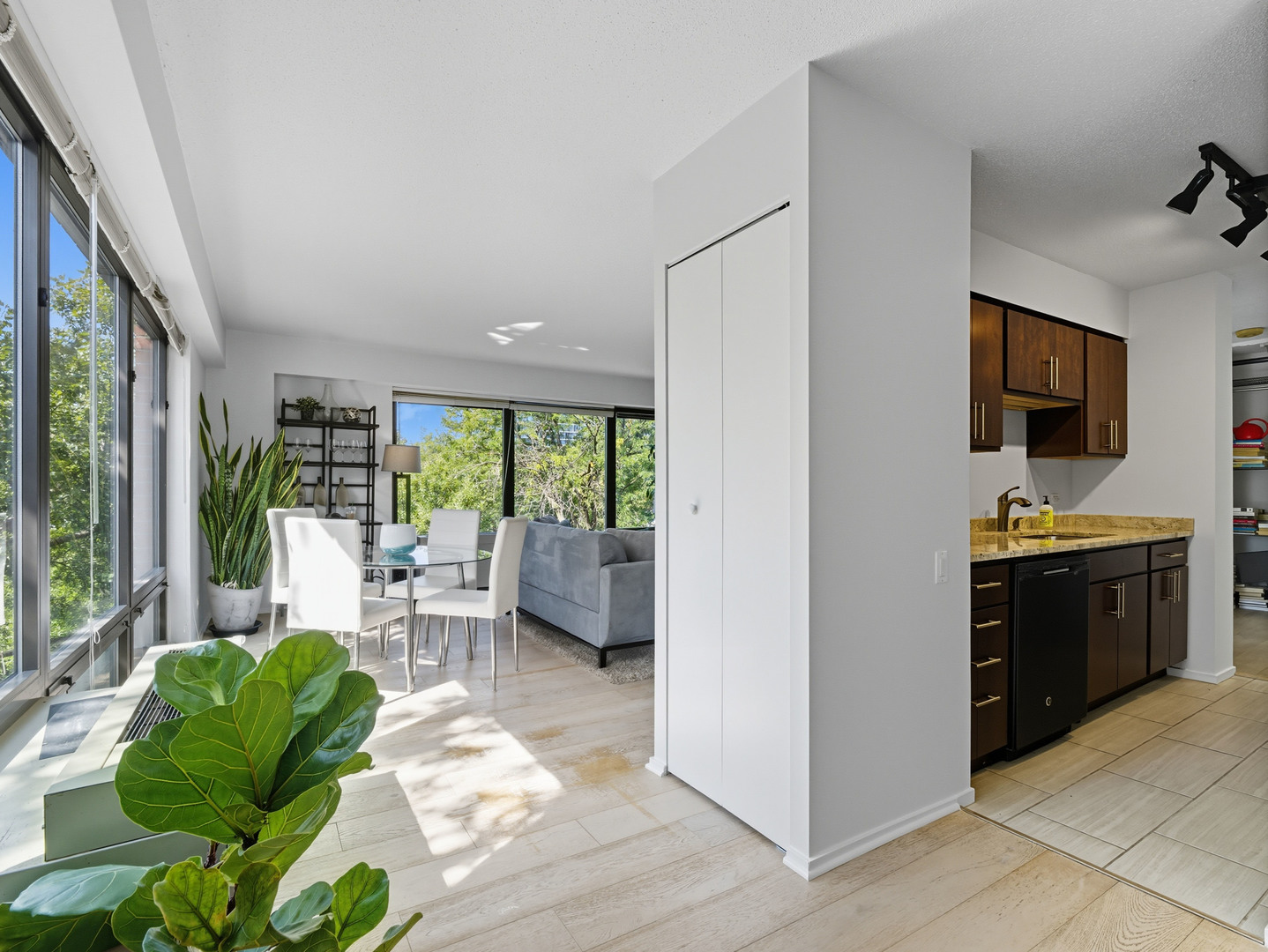 Experience intimate living in Dearborn Park with this rare 3-bed + den, 2-bath corner unit nestled in the trees and overlooking beautiful, mature, professionally landscaped grounds. Offering an expansive 1550 sqft of updated living space, this home features a modern kitchen with updated cabinetry, granite countertops, stainless steel appliances, ceramic tile flooring. Three generous sized bedrooms, two renovated bathrooms with tub/shower combos, a washer/dryer in-unit, and tons of storage space including two walk-in closet complete the space. This southwest facing sun-drenched home is located on a beautiful tree-lined dead-end street and benefits from 24/7 shared security and easy access to all things Printers Row and South Loop: parks, dining, shops, CTA Red/Orange/Green lines, Jewel/Trader Joes/Marianos/Target/Whole Foods, and just a short walk to South Loop Elementary. Building amenities include on-site laundry, community pool, sundeck, and party room with nearby Tennis courts. Attached garage parking (on waitlist) or monthly parking nearby. High speed 1GB internet and cable included in HOA amount. Don’t miss up on a great unit at an enticing price.