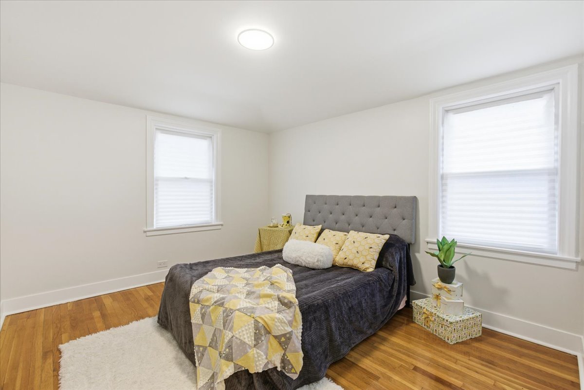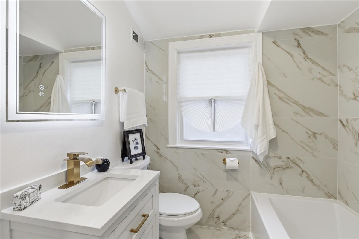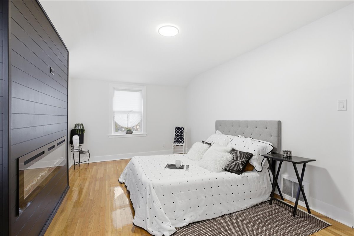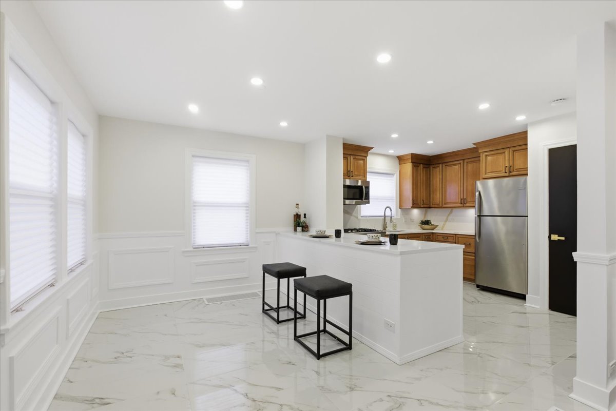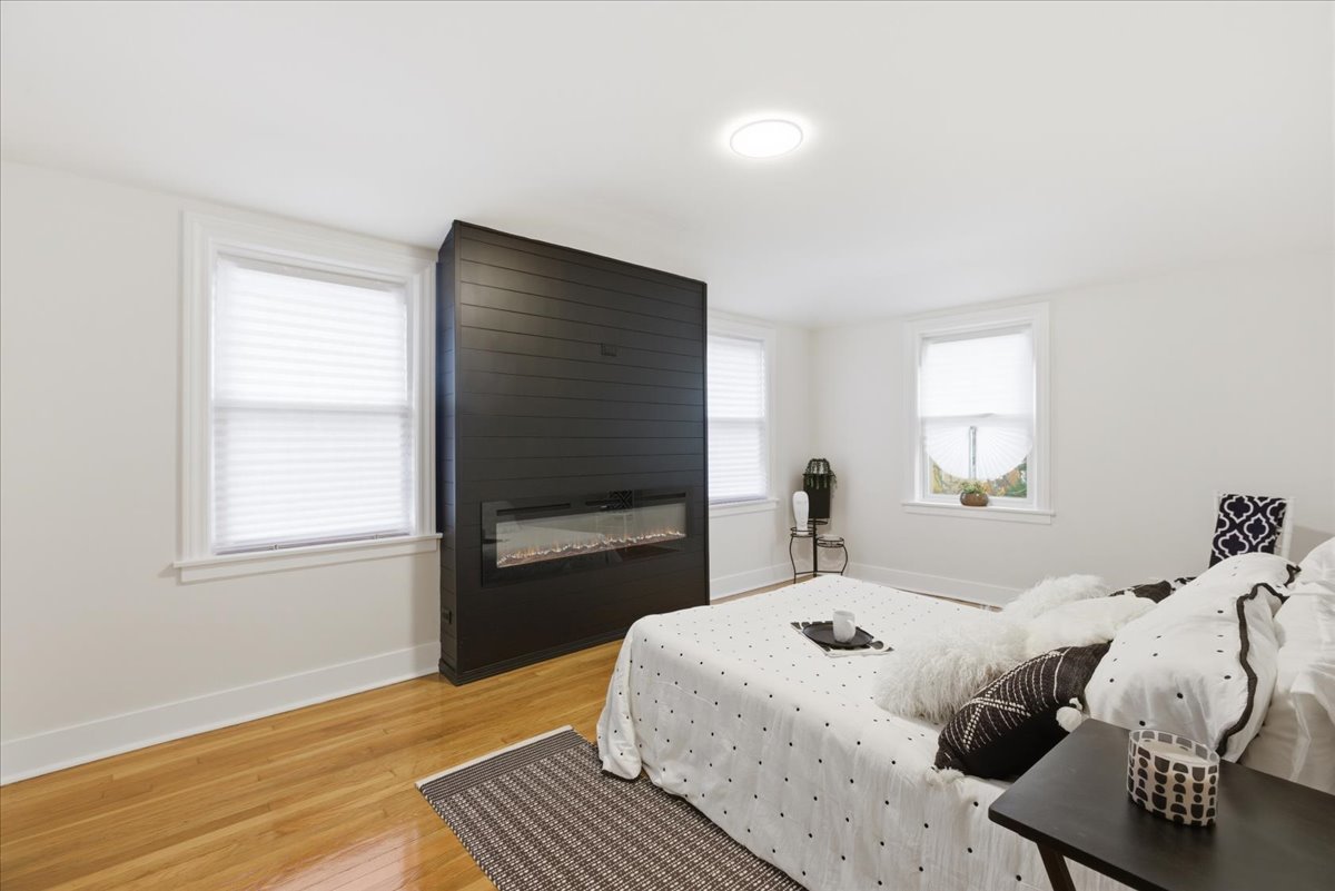Stately and stylishly reimagined, this 4BR/2BA renovated Georgian commands a corner lot in sought-after West Beverly. Thoughtfully updated for today’s buyer, the home blends timeless architecture with modern luxury at every turn. Step inside to a light-filled main level featuring gleaming hardwood floors and elegant wainscoting that elevate the home’s classic character. The open-concept living, dining, and kitchen layout is ideal for entertaining, enhanced by oversized windows that flood the space with natural light. The chef’s kitchen impresses with Calacatta quartz countertops and backsplash, custom soft closed cabinetry, a stainless steel appliance suite, porcelain tile flooring, and a generous breakfast bar that accommodates four easily. The main level offers two spacious bedrooms-one with a cozy gas-starter free standing fireplace-along with a spa-inspired full bath showcasing a luxury full-body shower tower. Upstairs, retreat to the expansive primary bedroom featuring an electric fireplace, creating a warm and sophisticated sanctuary. An additional bedroom and a second updated full bath with another luxury shower tower complete the upper level. Three of the bedrooms can accommodate queen and king size beds. The finished lower level expands your living space with a large family room highlighted by a second electric fireplace, durable wood laminate flooring, a laundry area with W/D hookup, and plentiful storage. Outside, enjoy dining and relaxation on the brick-paved pergola overlooking the fully fenced yard. A detached 2.5-car garage with lofted storage (via hydraulic pull-down stairs) plus a side driveway offers 2 additional exterior spaces. Perimeter lighting beautifully showcases the home’s classic brick exterior. Renowned for its community charm and urban convenience, West Beverly places you minutes from shopping, top-rated schools, parks, and dining. Weekend brunch, afternoon strolls, and everyday errands are all effortlessly within reach. Fall in love-and stay forever. This home is more than move-in ready; it’s a true lifestyle upgrade. Perfect for hosting holidays, working remotely, or simply enjoying the comfort of a thoughtfully redesigned space, it seamlessly marries modern amenities with the timeless elegance of its Georgian roots. Come in. Take a look around. You’re already home and just in time for Christmas. Start the New Year off in your new home.