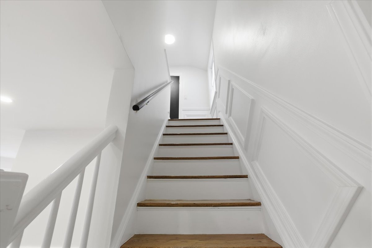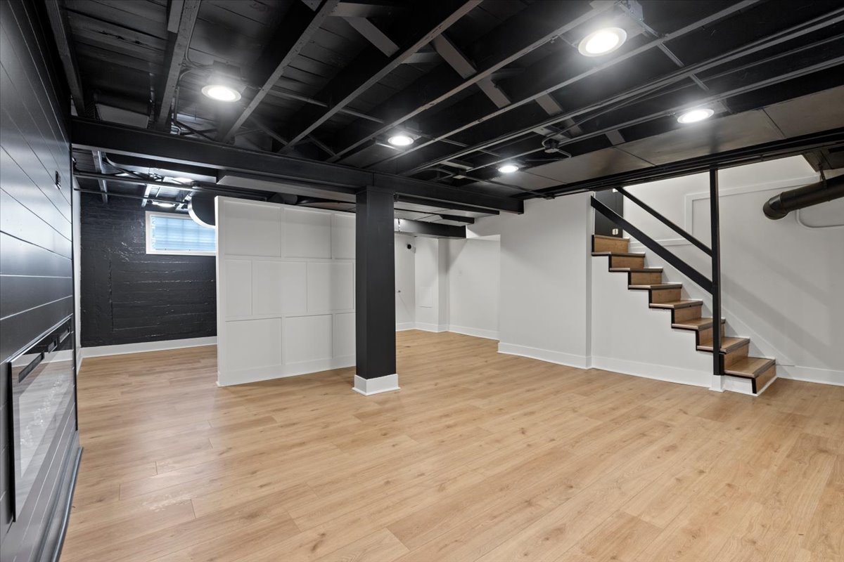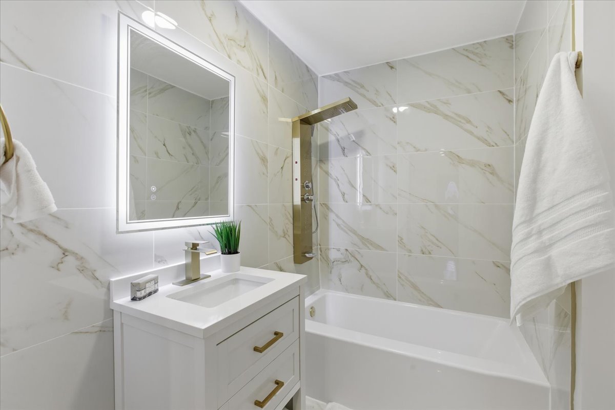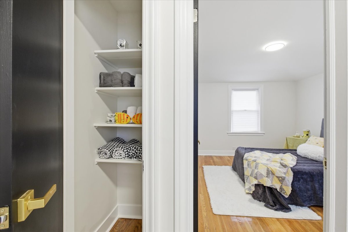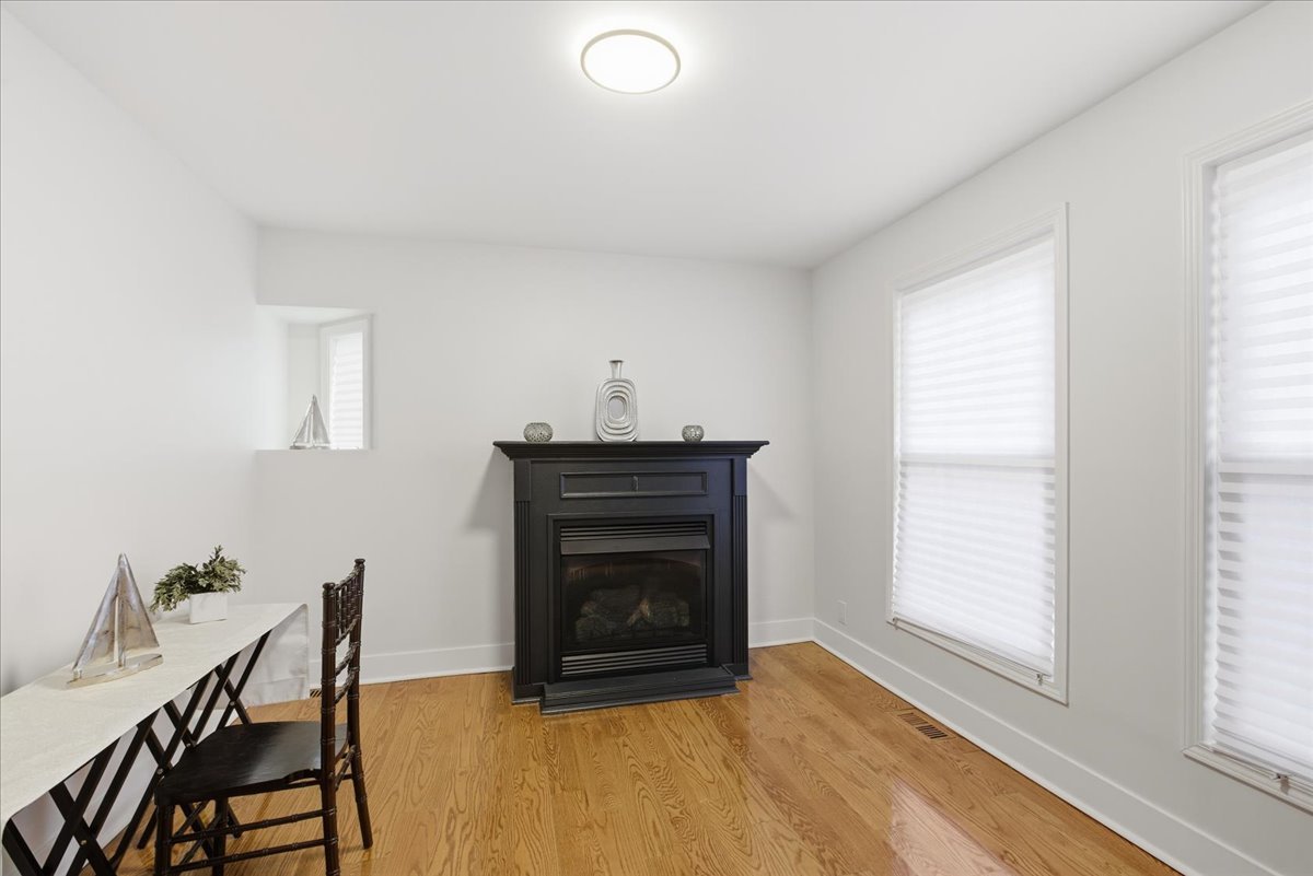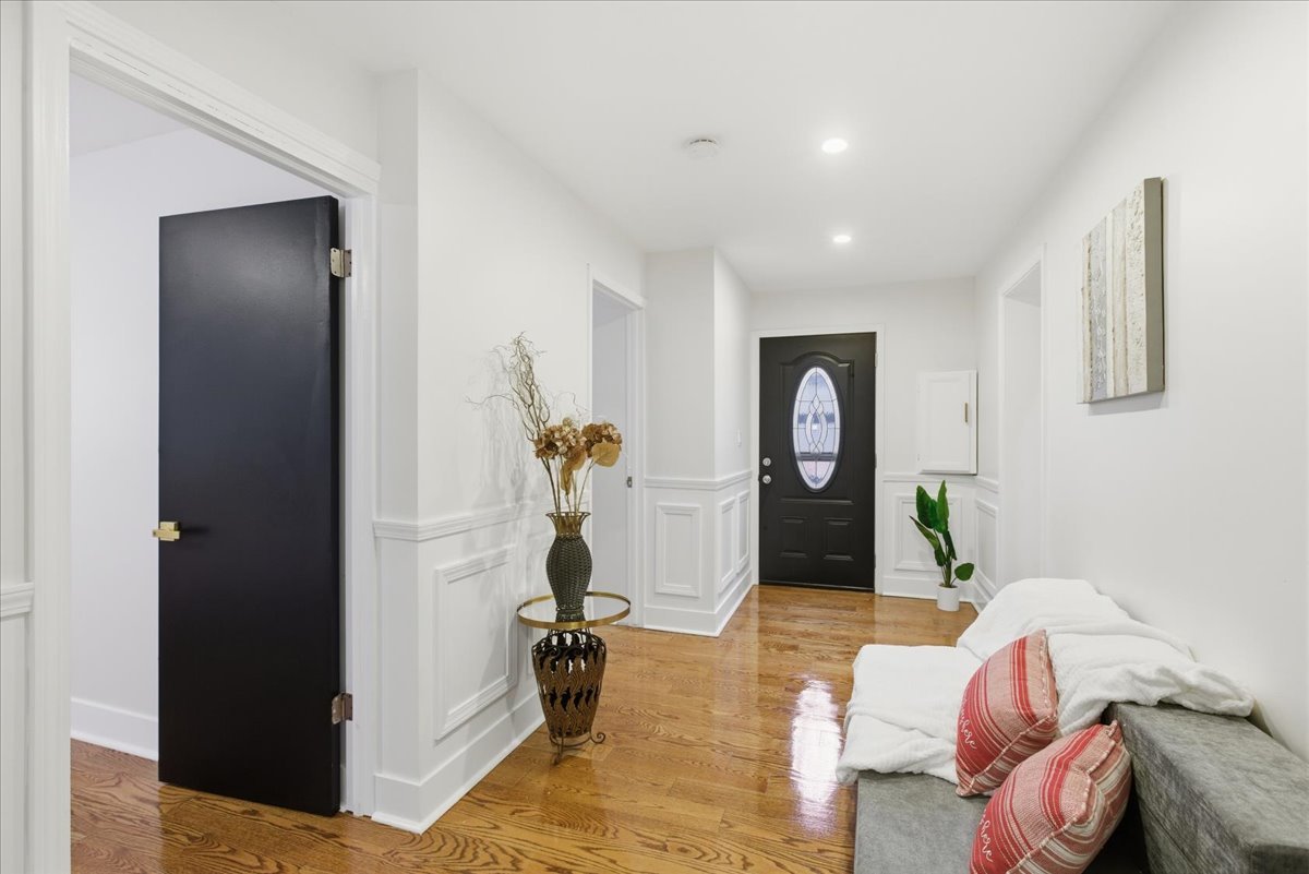 Stately and stylishly reimagined, this 4BR/2BA renovated Georgian commands a corner lot in sought-after West Beverly. Thoughtfully updated for today’s buyer, the home blends timeless architecture with modern luxury at every turn. Step inside to a light-filled main level featuring gleaming hardwood floors and elegant wainscoting that elevate the home’s classic character. The open-concept living, dining, and kitchen layout is ideal for entertaining, enhanced by oversized windows that flood the space with natural light. The chef’s kitchen impresses with Calacatta quartz countertops and backsplash, custom soft closed cabinetry, a stainless steel appliance suite, porcelain tile flooring, and a generous breakfast bar that accommodates four easily. The main level offers two spacious bedrooms-one with a cozy gas-starter free standing fireplace-along with a spa-inspired full bath showcasing a luxury full-body shower tower. Upstairs, retreat to the expansive primary bedroom featuring an electric fireplace, creating a warm and sophisticated sanctuary. An additional bedroom and a second updated full bath with another luxury shower tower complete the upper level. Three of the bedrooms can accommodate queen and king size beds. The finished lower level expands your living space with a large family room highlighted by a second electric fireplace, durable wood laminate flooring, a laundry area with W/D hookup, and plentiful storage. Outside, enjoy dining and relaxation on the brick-paved pergola overlooking the fully fenced yard. A detached 2.5-car garage with lofted storage (via hydraulic pull-down stairs) plus a side driveway offers 2 additional exterior spaces. Perimeter lighting beautifully showcases the home’s classic brick exterior. Renowned for its community charm and urban convenience, West Beverly places you minutes from shopping, top-rated schools, parks, and dining. Weekend brunch, afternoon strolls, and everyday errands are all effortlessly within reach. Fall in love-and stay forever. This home is more than move-in ready; it’s a true lifestyle upgrade. Perfect for hosting holidays, working remotely, or simply enjoying the comfort of a thoughtfully redesigned space, it seamlessly marries modern amenities with the timeless elegance of its Georgian roots. Come in. Take a look around. You’re already home and just in time for Christmas. Start the New Year off in your new home.