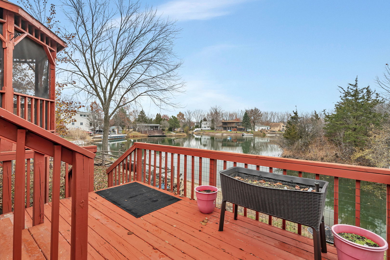 Looking for that beautiful retreat on the water? You will love life on Big Shadow Lake, set upon on a prime, waterfront, nestled above the lake & across from nature area this home is a raised ranch w/ 4 bedrooms & 2 baths. Upper level has 2 bedrooms /bath, open floor plan w/wood laminate floors, nice large kitchen (plenty counter space) & gas fireplace. Lower level has 2 BRS /bath, family room & heated floors (added warmth for the winter months). This home has plenty of room to entertain. All appliances including washer/dryer. A backup generator to keep the house going even during a power outage. Large, beautiful deck w/screened gazebo, paver block sidewalk, nicely landscaped, boat slip, blacktopped driveway, a shed for storage all done and ready to enjoy. Pontoon boat is staying. Some outdoor photos are from previous seasons. This is a private gated community. We have miles of fresh water channels, lakes, and marshes all interconnecting. This is the place to fish, swim, or boat, where it can reach 42 feet deep in some areas. (BIG FISH POSSIBILITIES!) Wildlife is abundant as well. This association includes a club house, community pool, a separate sand beach, pavilion, dog park, volleyball and basketball area (other games as well). They offer plenty of family and group activities. Other important notes: Close to I55 & only 60 Mins. from Chicago. Only Electric Boats & Golf Carts allowed. Association Dues are on a tiered basis and depend on the time you spend at the property- . Dues include water, sewer and garbage. Buyer / Buyer’s agent to call Shadow Lakes to verify all rules / info. Lot size and square footage is estimated.