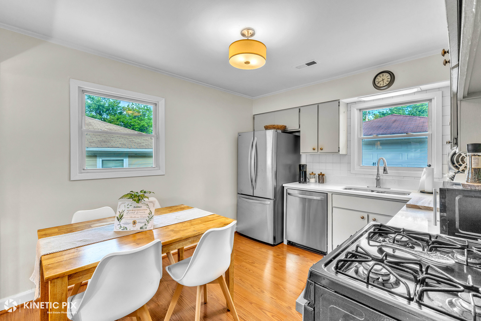 Come be impressed with this charming Park Forest ranch with affordable Will County taxes! The gorgeous updates and calming hues of this home bring both sophistication and warmth ready for a new owner to move right in. Natural light beams through the picture windows of the living room leading you into your eat in kitchen with new quartz countertops and stainless steel appliances. Moving down the hallway you will find three nicely sized bedrooms and your bathroom with a classic touch. Outside you will appreciate your 2.5 car garage, brand new driveway and patio, plenty of room for hosting, and a beautifully manicured back yard. Also feel comforted by a newer AC (2024), stainless steel appliances (2024), hot water heater (2023), windows (2020), driveway/patio (2025) . This home is found in the Crete-Monee school district and is close to parks in a lovely neighborhood. Schedule your showing today!