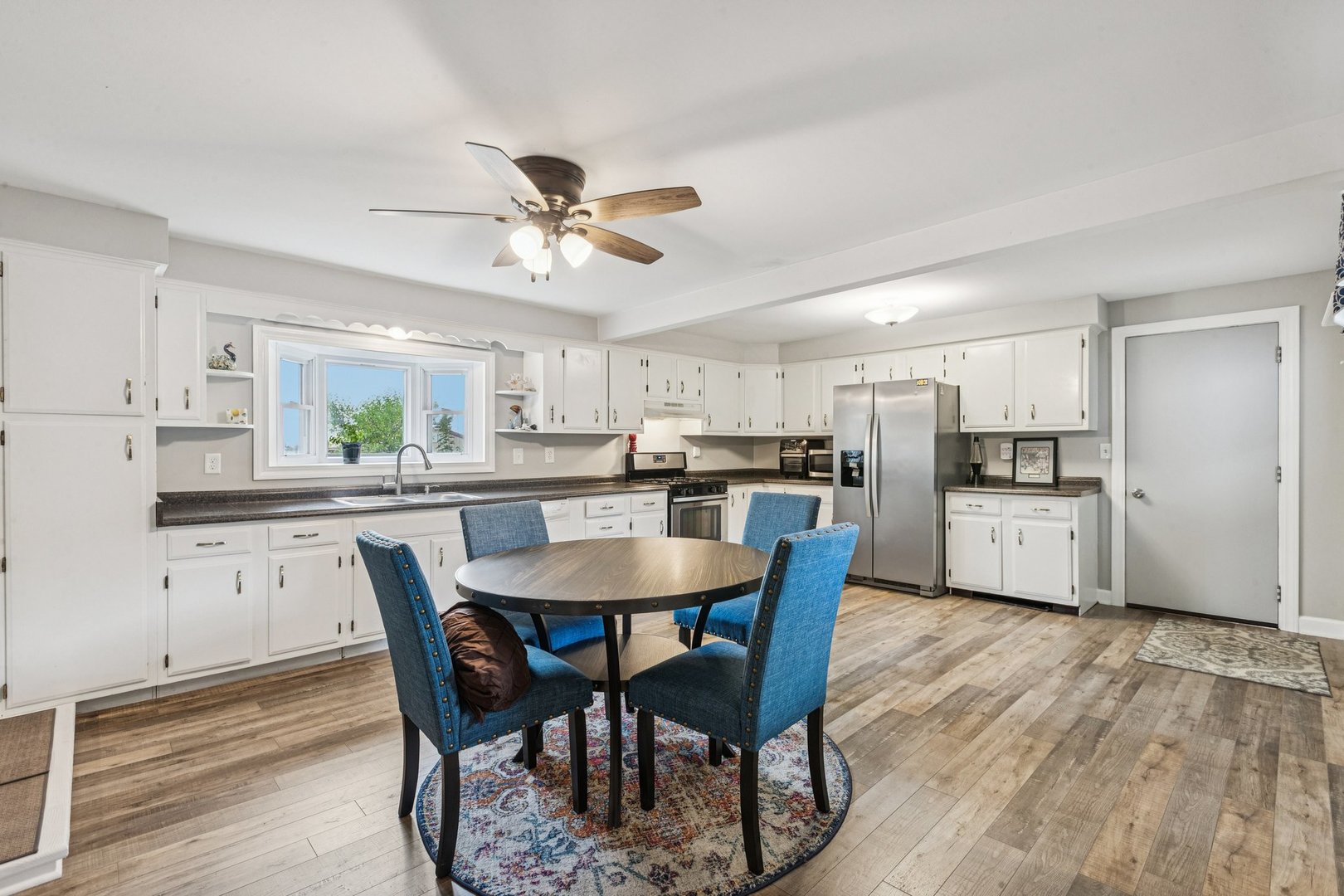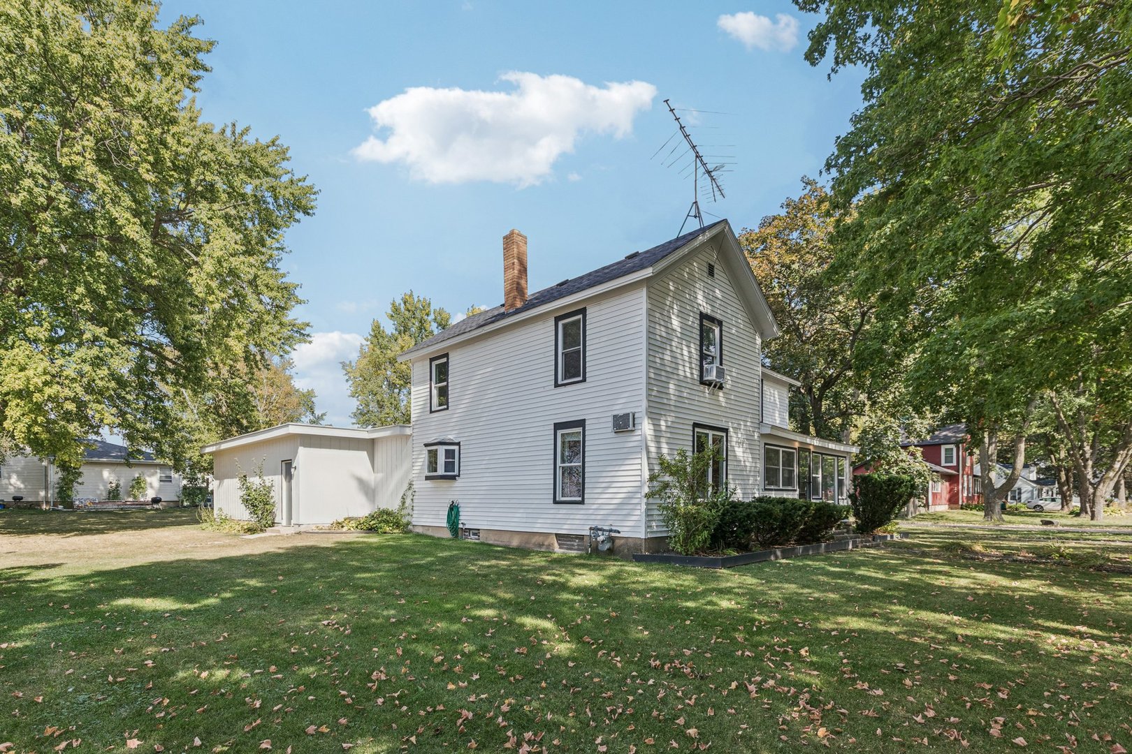 Charming Corner-Lot Home in the Historic District Nestled on a tree-lined street in the heart of town, this country-style corner-lot home blends historic character with modern updates. The expansive double lot offers a rare, park-like yard-perfect for entertaining, gardening, or play-all with the benefit of low taxes. Inside, enjoy a stunning remodeled kitchen (2023) with all-new appliances (2022), Heated Main Floor and a bright four-season front porch (2024). Three spacious bedrooms, two full baths, and a large basement with a limestone foundation provide plenty of room and storage. Peace of mind comes with recent updates: new boiler (2023), roof (2017), and low-maintenance vinyl siding. The oversized 2-car garage adds even more storage and flexibility. Highlights: 3 Bedrooms | 2 Bathrooms, Huge Kitchen (2023 remodel), Four-Season Porch (2024), New Boiler (2023), Roof (2017),Water Heater (2016)Oversized 2-Car Garage, Expansive Corner Double Lot. This is a rare opportunity to own a solid, updated home with incredible outdoor space-right in the charm of the historic district. All offers will be considered.