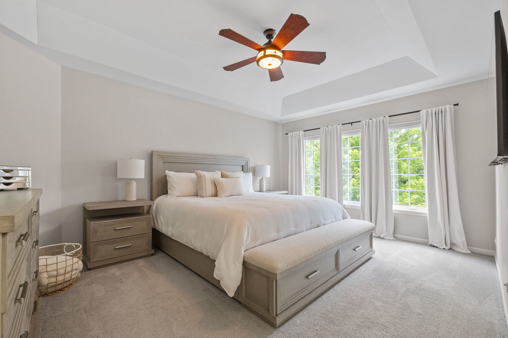 Step into this stunningly renovated townhome nestled in one of Orland Park’s most highly coveted neighborhoods. From the moment you enter, you’ll be captivated by the flood of natural light, soaring two-story ceilings, and grand marble fireplace that create an inviting and elegant first impression. The modern kitchen features sleek 42″ shaker cabinets, pristine quartz countertops, and high-end stainless steel appliances. A new water filtration system and fresh designer paint throughout enhance the home’s clean, contemporary style, making it truly move-in ready. Upstairs, a modern hardwood staircase with a brand new runner, leads to a spacious loft and a luxurious primary suite featuring a walk-in closet and spa-style bath with double quartz vanities, soaking tub, and separate shower. The walkout basement is an entertainer’s dream – featuring recessed lighting, a full updated bathroom, and a convenient kitchenette, perfect for guests or extended family. Outside, enjoy beautiful views and direct access to walking paths and a lovely park just across the street. The location couldn’t be better – minutes from the train station, expressways, shopping, golf courses, top-rated restaurants, and more. With every detail thoughtfully updated and no expense spared, this home offers modern luxury, convenience, and comfort – all in one perfect package.