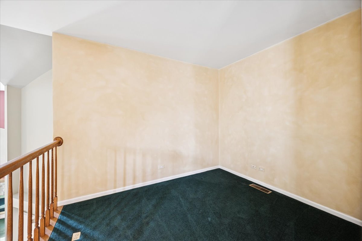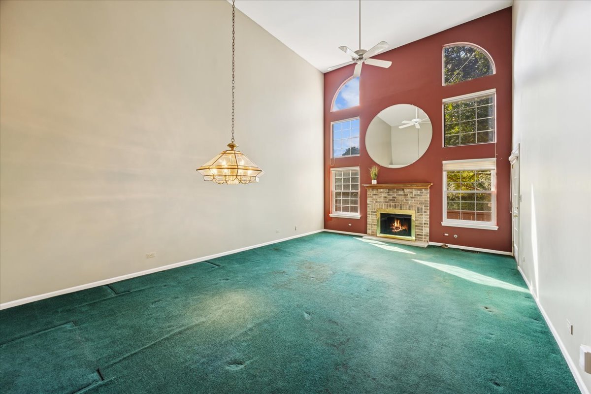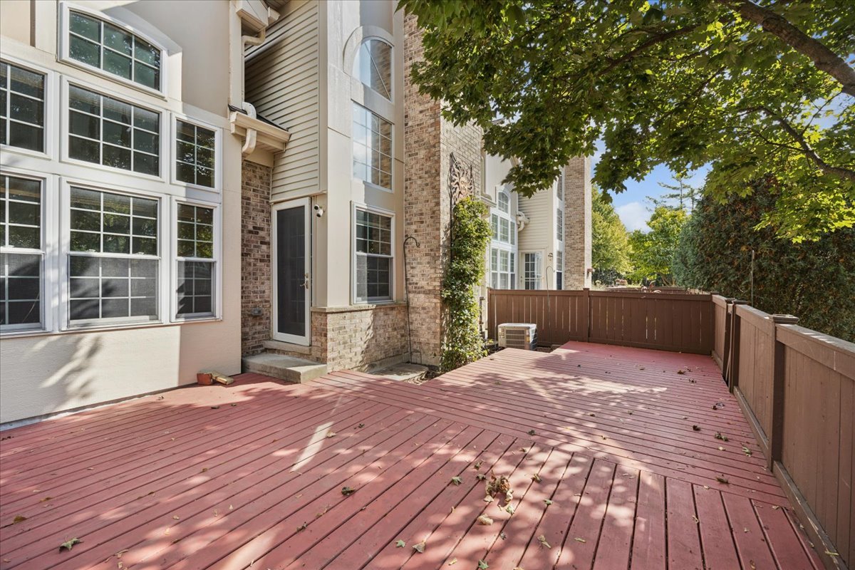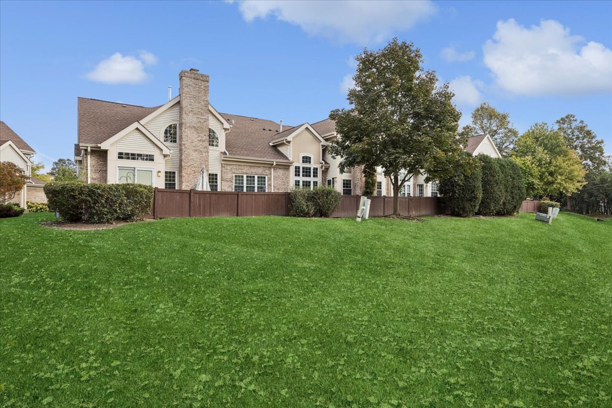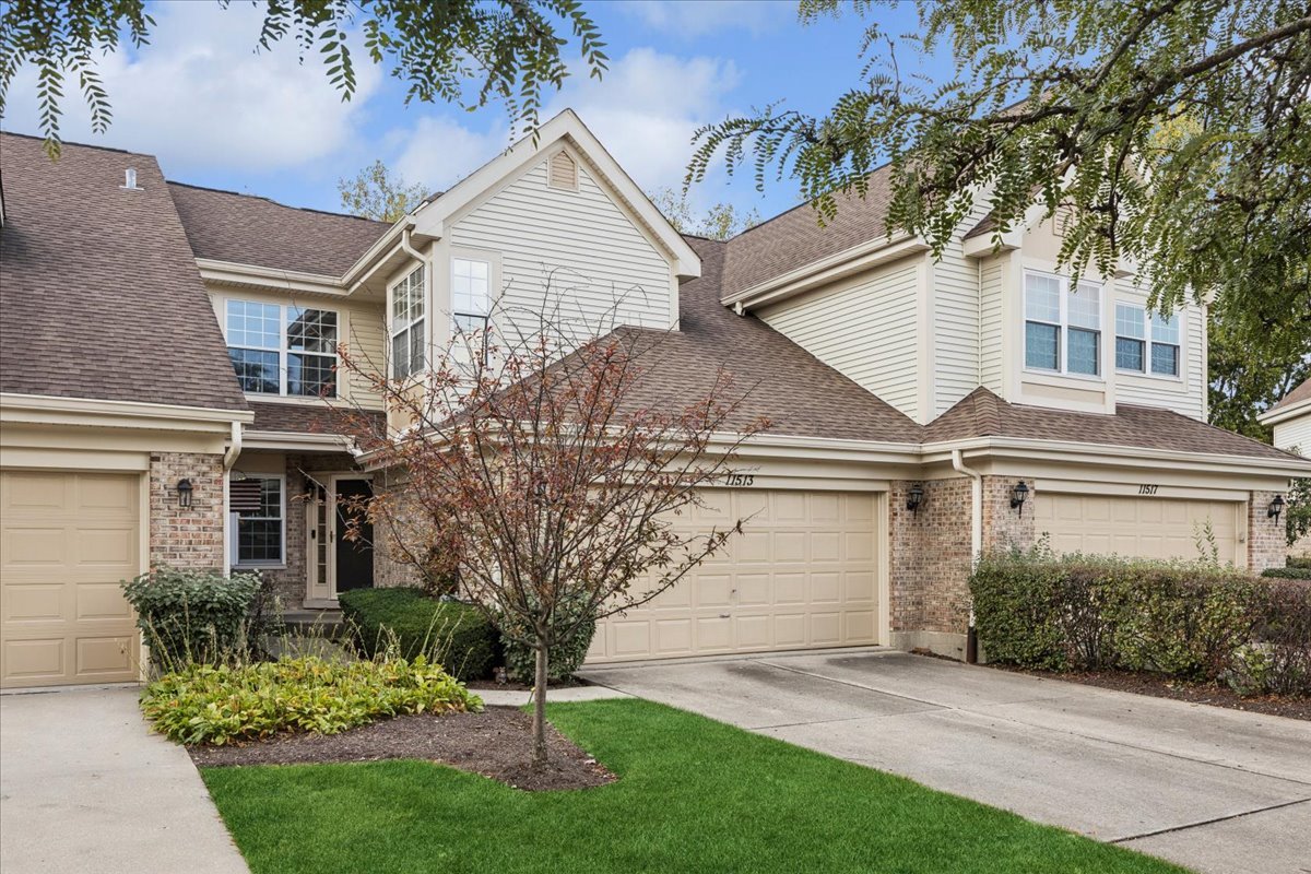First floor primary bedroom in Prescott Square offers great potential! Original owners have lovingly maintained this brick townhome. The eat-in kitchen offers oak cabinetry including a pantry cabinet, granite countertops, tile backsplash, peninsula for extra seating, stainless steel appliances and opens to the dining room/living room combination. The living room showcases cathedral ceilings, floor to ceiling south-facing windows with great natural light, and a brick gas log fireplace. Enter the primary bedroom through double doors and additional cathedral ceilings. This suite offers a walk-in-closet, linen closet, double sinks, jacuzzi tub, and separate shower. The main level conveniently provides a powder room, mud room, access to the fenced back deck, and attached two car garage. Second floor brings two additional bedrooms, a full bathroom, and loft open to the living room below. Full finished basement expands the living space and offers great additional storage with closets and cabinetry, laundry room (can be moved into mudroom), and utility room. Back deck has great views of open land. Amazing location with easy access to major expressways, commuter trains, and both airports. Blocks away from Prairie and Forest Preserve trails, Mariano’s, golf courses, and more. Come check the opportunity in this Prescott Square townhome!