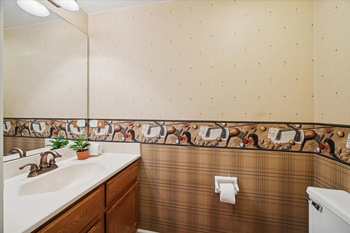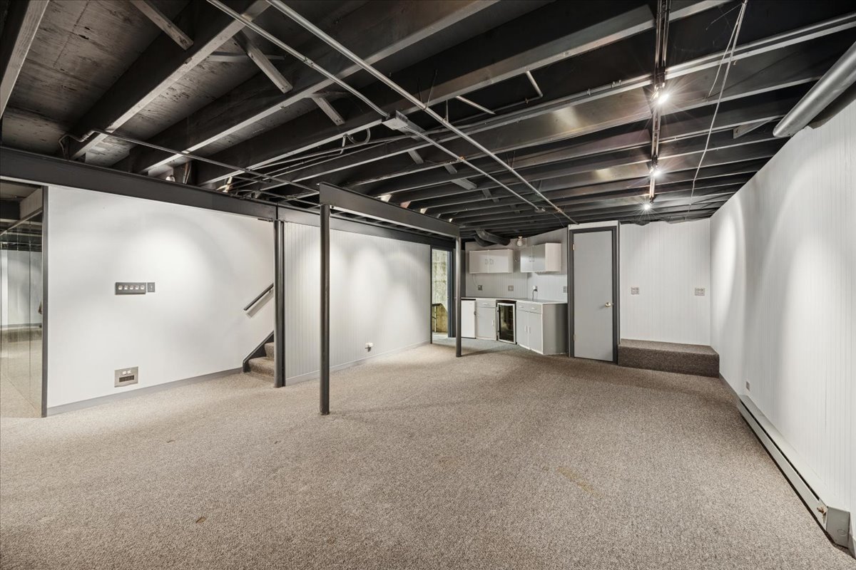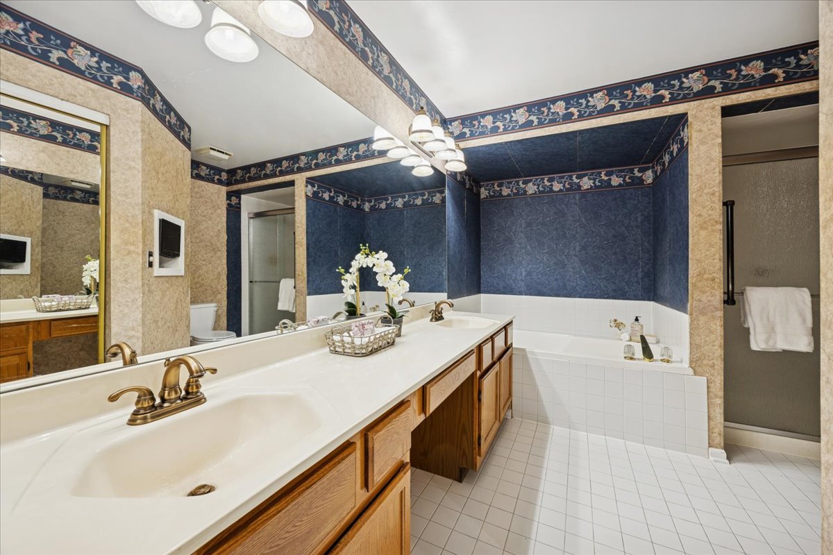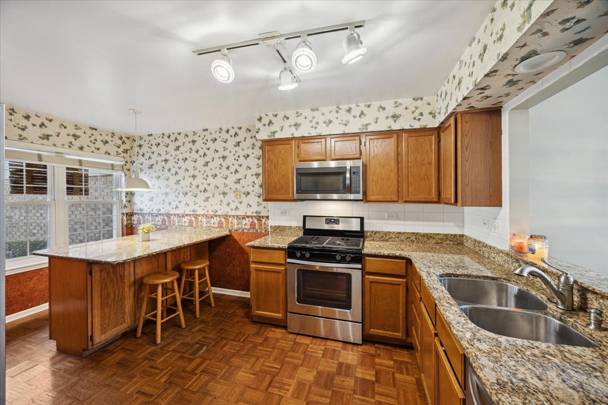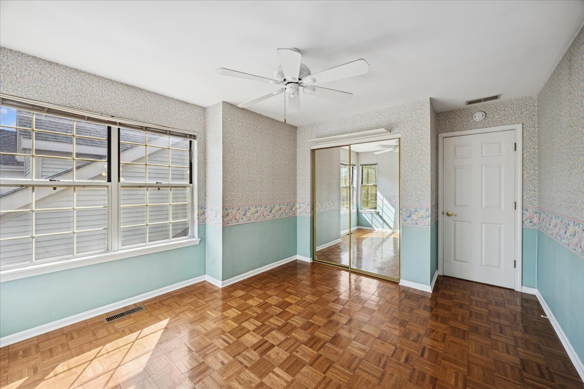 First floor primary bedroom in Prescott Square offers great potential! Original owners have lovingly maintained this brick townhome. The eat-in kitchen offers oak cabinetry including a pantry cabinet, granite countertops, tile backsplash, peninsula for extra seating, stainless steel appliances and opens to the dining room/living room combination. The living room showcases cathedral ceilings, floor to ceiling south-facing windows with great natural light, and a brick gas log fireplace. Enter the primary bedroom through double doors and additional cathedral ceilings. This suite offers a walk-in-closet, linen closet, double sinks, jacuzzi tub, and separate shower. The main level conveniently provides a powder room, mud room, access to the fenced back deck, and attached two car garage. Second floor brings two additional bedrooms, a full bathroom, and loft open to the living room below. Full finished basement expands the living space and offers great additional storage with closets and cabinetry, laundry room (can be moved into mudroom), and utility room. Back deck has great views of open land. Amazing location with easy access to major expressways, commuter trains, and both airports. Blocks away from Prairie and Forest Preserve trails, Mariano’s, golf courses, and more. Come check the opportunity in this Prescott Square townhome!