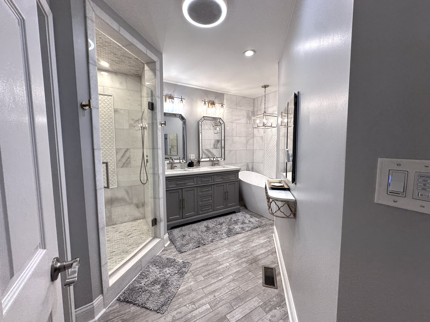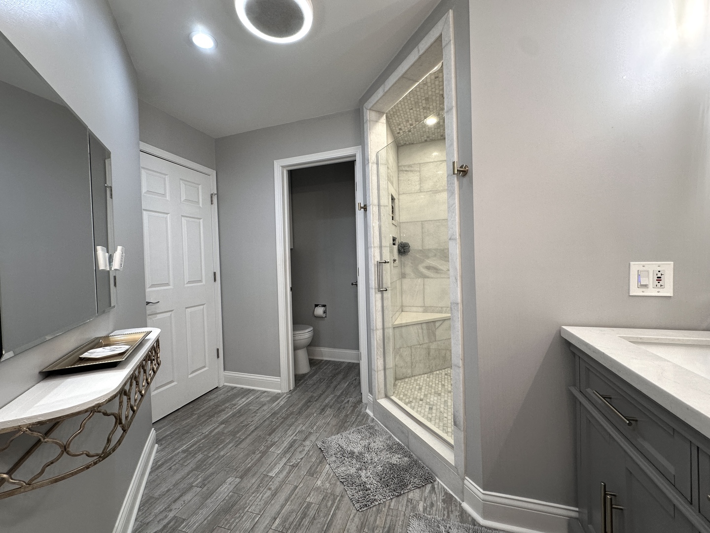 Absolutely AMAZING townhome with FINISHED, WALK-OUT BASEMENT! This home sits on one of the BEST PREMIUM LOTS in THE PRESERVES TOWNHOMES, with no neighbors behind you! After a large back yard, it backs to the preserve area! Beautifully updated with an on trend color palette and finishes! Nestled in one of Orland Park’s most highly coveted neighborhoods. Stunning open layout on main level features HAND-SCRAPED HARDWOOD FLOORS, an updated kitchen with 42″ white shaker cabinets, Stainless Steel appliances, subway tiled backsplash, GRANITE COUNTERTOPS with LARGE SURFACE AREA (to roll your dough or layout buffets), the breakfast bar is finished with wainscoting and could accommodate 5 seats! Gold hardware and Dual spout gold faucet, one spout is a powerful pull down sprayer. Best of all the kitchen is wide open to the generous sized Family room with soaring two-story ceiling and fireplace flanked by 2-story windows. The dining area has a bump out and sliding glass door that leads to the EXPANDED DECK. Slide open the adorable barn doors and you will find the main flr laundry room that has been recently updated with thoughtful shelving. Head upstairs on your very wide staircase w/ brand new carpet and into your spacious loft area (presently used as an office) from there you will find your 3 bedrooms all with custom closets! The master suite is a real showstopper! The bedroom area is very spacious, it has a tray ceiling and a bump-out that overlooks the preserve area (sleep with those windows open when weather permits and enjoy the sounds of nature!). The huge walk-in closet was carefully curated to maximize organization! The Master bathroom has been completely remodeled and is now a home spa! Let your worries wash away in the huge, marble tiled, luxurious walk-in shower! It has a rain-shower shower head and a hand held shower head! This bathroom also has a stand alone tub, vanity has quartz countertop w/ double sinks, a separate makeup area, bluetooth exhaust fan and a water closet (for your privacy). The walkout basement has a sliding glass door that leads to the patio below the deck. The basement is a wonderful space to relax and have fun, it also has a wet-bar area. a bathroom with a shower and lots of storage. Seller just also installed a brand new garage door! This location is a dream! THE PRESERVES TOWNHOMES offers 26 ACRES surrounded by WOODS & NATURAL WETLANDS, CONNECTING ASSOCIATION OWNED WALKING PATHS and ASSOCIATION OWNED PONDS. The most incredibly friendly neighbors really sets this COMMUNITY apart but it also has a solid HOA and a professional off-site management company. There’s a picturesque park at the end of the street that has a playground, sledding hill, water fountain for you (and one for your pups), basketball courts, a pretty pond and walking paths! This neighborhood is in the middle OF EVERYTHING–STARBUCKS, BANKING, JEWEL, ALDI, WALGREENS, BARRACO’S, McDONALDS, GYMS, GARDEN CENTER, METRA, I-355, I-80 AND MORE.