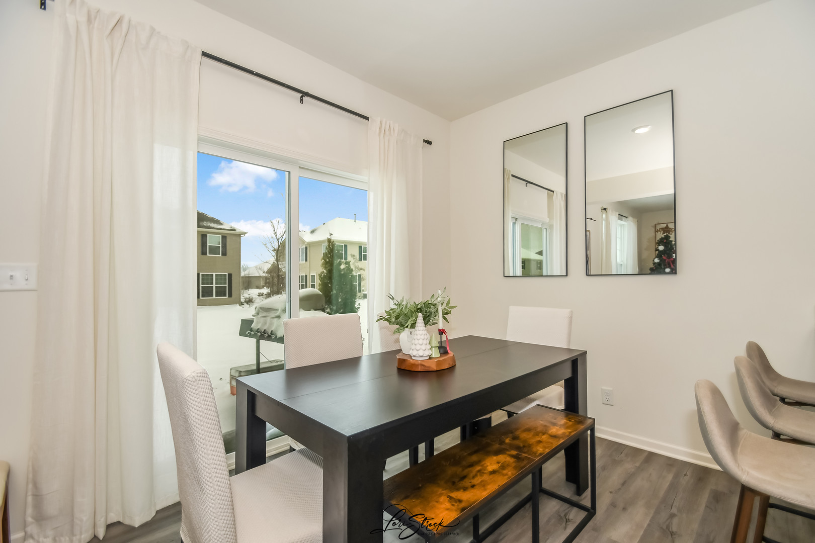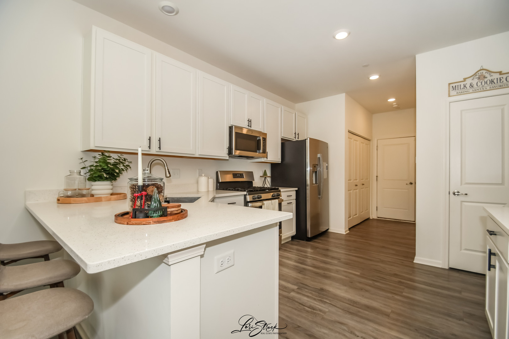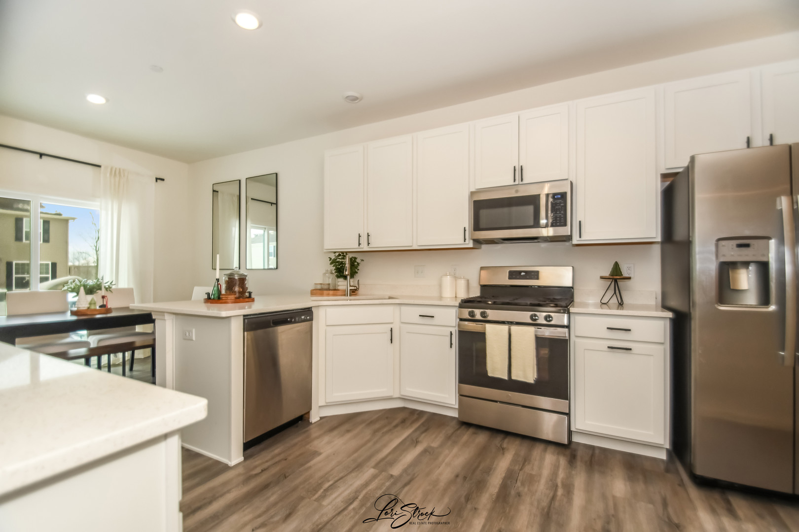 You are welcomed by a bright, airy floor plan with a spacious great room and high-end finishes throughout. This home offers the open floor plan-perfect for entertaining or everyday living. The eat-in kitchen features quartz countertops, stainless steel appliances, upgraded modern cabinetry, and a pantry. The dining area opens directly to the patio-ideal for grilling and outdoor gatherings. The first floor impresses with 9-foot ceilings, luxury vinyl plank flooring, and an abundance of natural light. Upstairs, retreat to a luxurious owner’s suite complete with two walk-in closets and a spa-like bath featuring a designer walk-in shower. You’ll also appreciate the convenience of a second-floor laundry room. This home is fully WiFi-certified and equipped with smart home technology, including remote thermostat access, wireless touch entry, and a Ring video doorbell-ensuring connectivity with zero blackout spots. Garage is equipped with myQ and front door has a smart level lock.