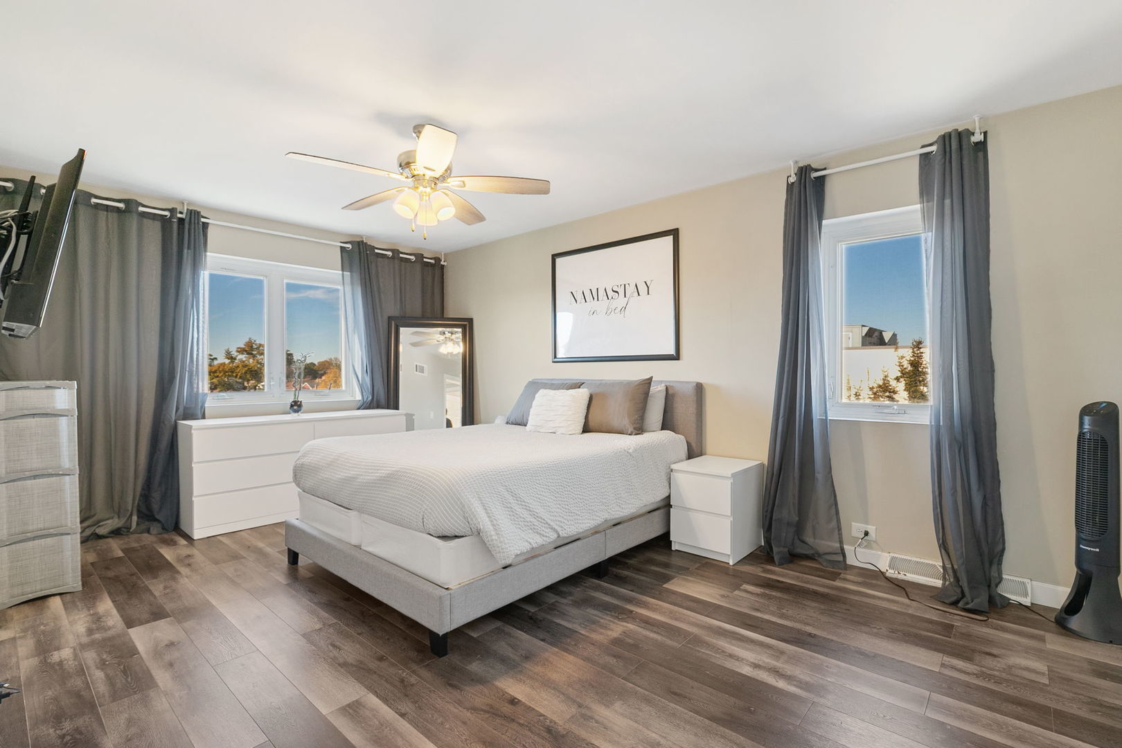 PERFECTLY LOCATED & RENOVATED COMMUTER’S DREAM! As you enter this stunning community note the ideal placement of this condo; peacefully tucked away from Western Ave with ideal east/west exposures! Step inside this well maintained building and you’ll be greeted by 2 formal foyers, security doors, and a convenient ELEVATOR. Take your pick of 2 entrances into this stunning condo and you’ll be greeted by modern wood-look floors, neutral paint, & beautifully curated spaces. Enjoy the oversized living room with adjacent balcony. Take in the beautiful sunsets from your private west-facing balcony and enjoy incredible views of annual 4th of July fireworks without leaving the comfort of your home! Host events with ease in the oversized dining room that is perfect for holiday gatherings! Enjoy an updated kitchen offering incredible storage space, durable counters, brand new backsplash, & upgraded appliances. Retreat to the SPACIOUS PRIMARY SUITE offering room for your King bedroom set, 2 oversized closets, & access to a private ensuite! The primary ensuite boasts a generous shower with upgraded glass doors & modern vanity! This spacious floorplan offers a dedicated guest bedroom as well as a 2nd full bathroom with soaking tub! Explore the lower level of the condo building to find your private storage locker & access to the shared party room, coin laundry, & bike storage. This beautiful property comes with 1 assigned space and guest parking passes. Short distance to shopping, entertainment, & restaurants! Quick commute to highways & Metra (only 0.7 mi)! Easy access to Western bus stops & low taxes! Meticulously kept with great pride in ownership! Easy low maintenance living ~ This is the one you’ve been waiting for!
