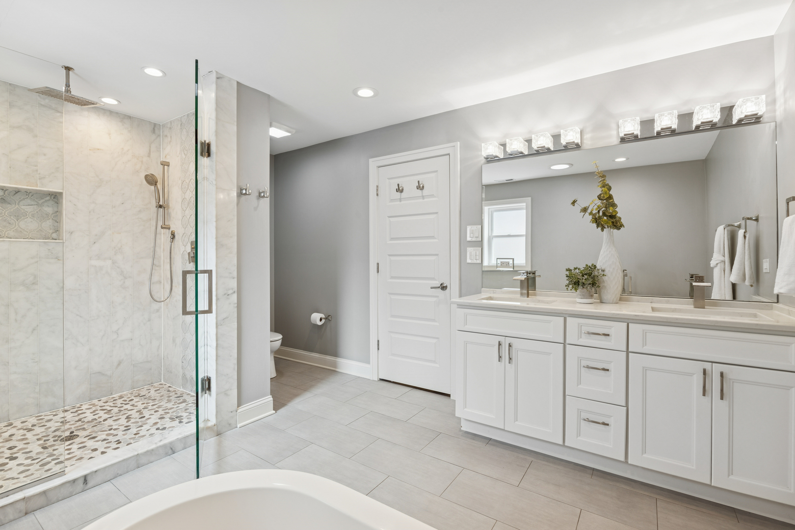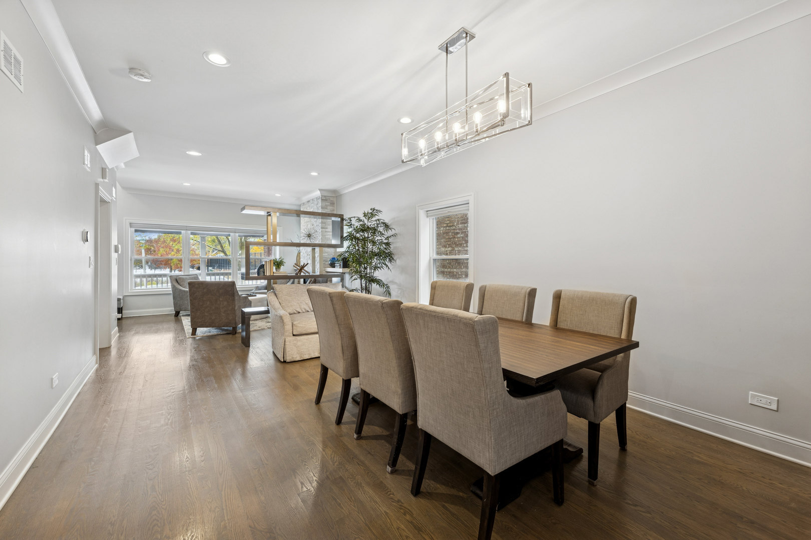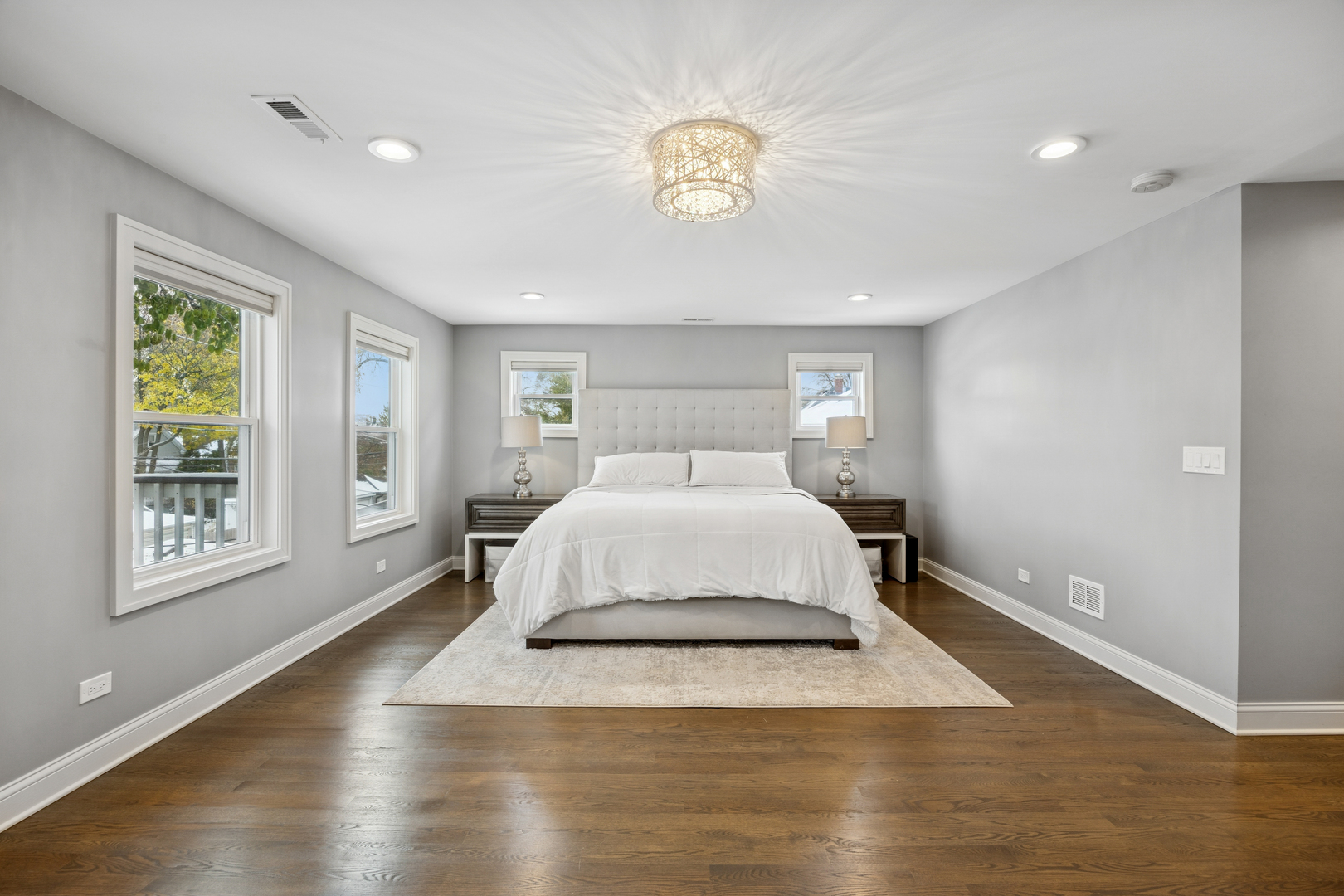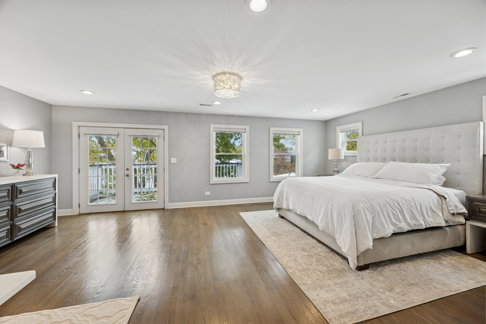 Welcome to 1156 Wesley, a 4,000 sq ft completely renovated showpiece in Oak Park’s historic village that offers effortless modern living across from the beautiful Euclid Square Park, with tennis courts, a baseball diamond, and a playground right outside your door. With every system, fixture and finish fully rebuilt in 2017 and still feeling brand new, this stunning 5-bedroom, 4-bath three-story home features soaring high ceilings, an open concept layout, and gorgeous grey oak hardwood floors throughout. The chef’s kitchen is an entertainer’s dream with a 9-foot island, custom cabinetry, GE Cafe appliances, custom lighting, and a wine/beverage fridge. The main floor offers flexible living with a bedroom or office plus a full bathroom. Upstairs, the luxurious primary suite includes a private balcony for morning coffee, a huge walk-in closet, and a spa-like bathroom with both a soaking tub and walk-in shower. Second-floor laundry includes a sink and extra storage. The finished basement elevates entertainment with a wet bar featuring its own beverage fridge, a great theater area, an additional bedroom, full bathroom, home gym and large storage area. Modern amenities include zoned heating and cooling with Amazon Alexa Ecobee thermostats, all-updated electrical and plumbing, French doors, solid-core interior doors, and a gas fireplace. With large, plentiful closets, a two-car garage, a fenced yard, and an unbeatable location where you can walk to restaurants, shops, and transit or drive to the city in minutes, 1156 Wesley truly offers the perfect blend of luxury, convenience, and community-just unpack and relax!