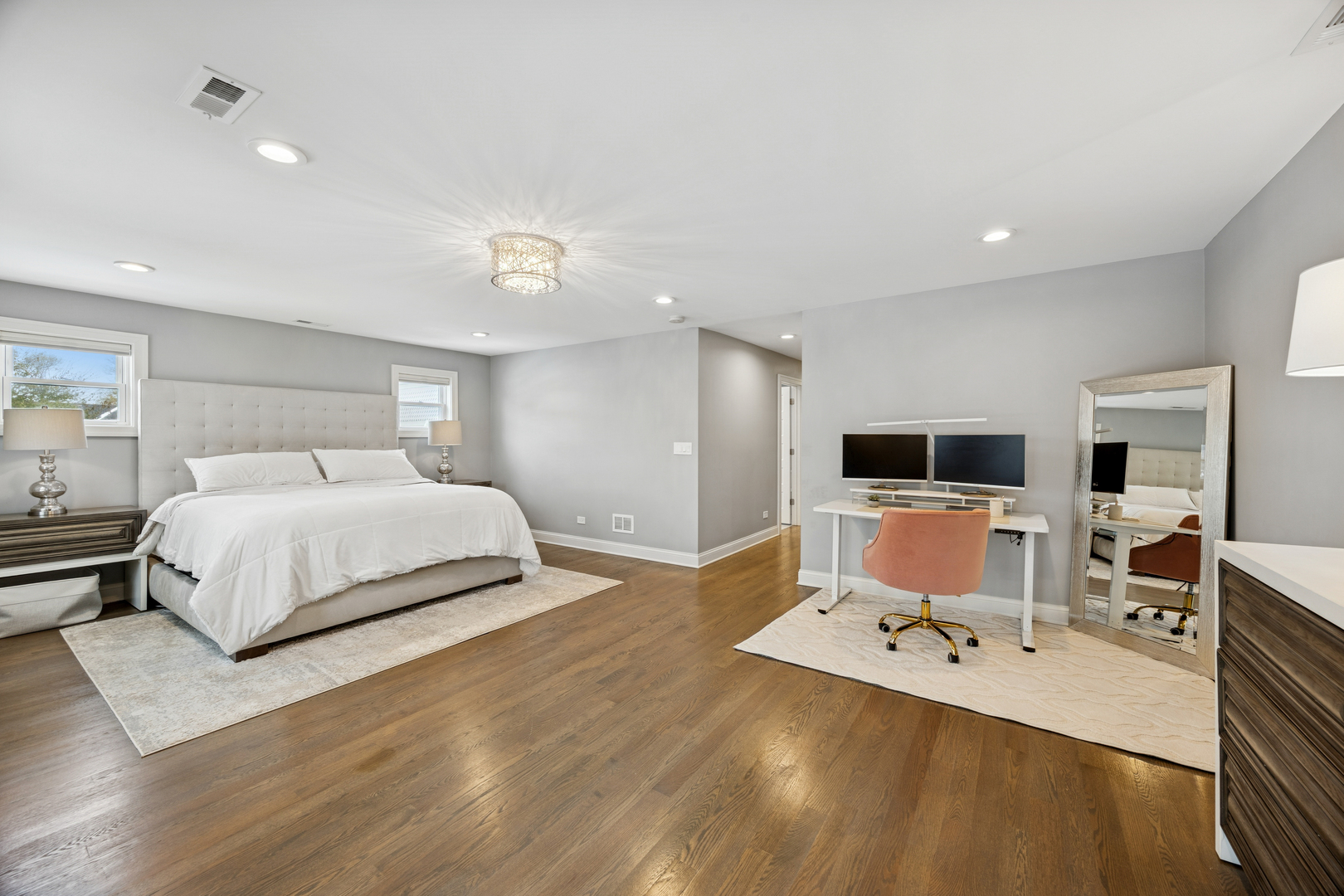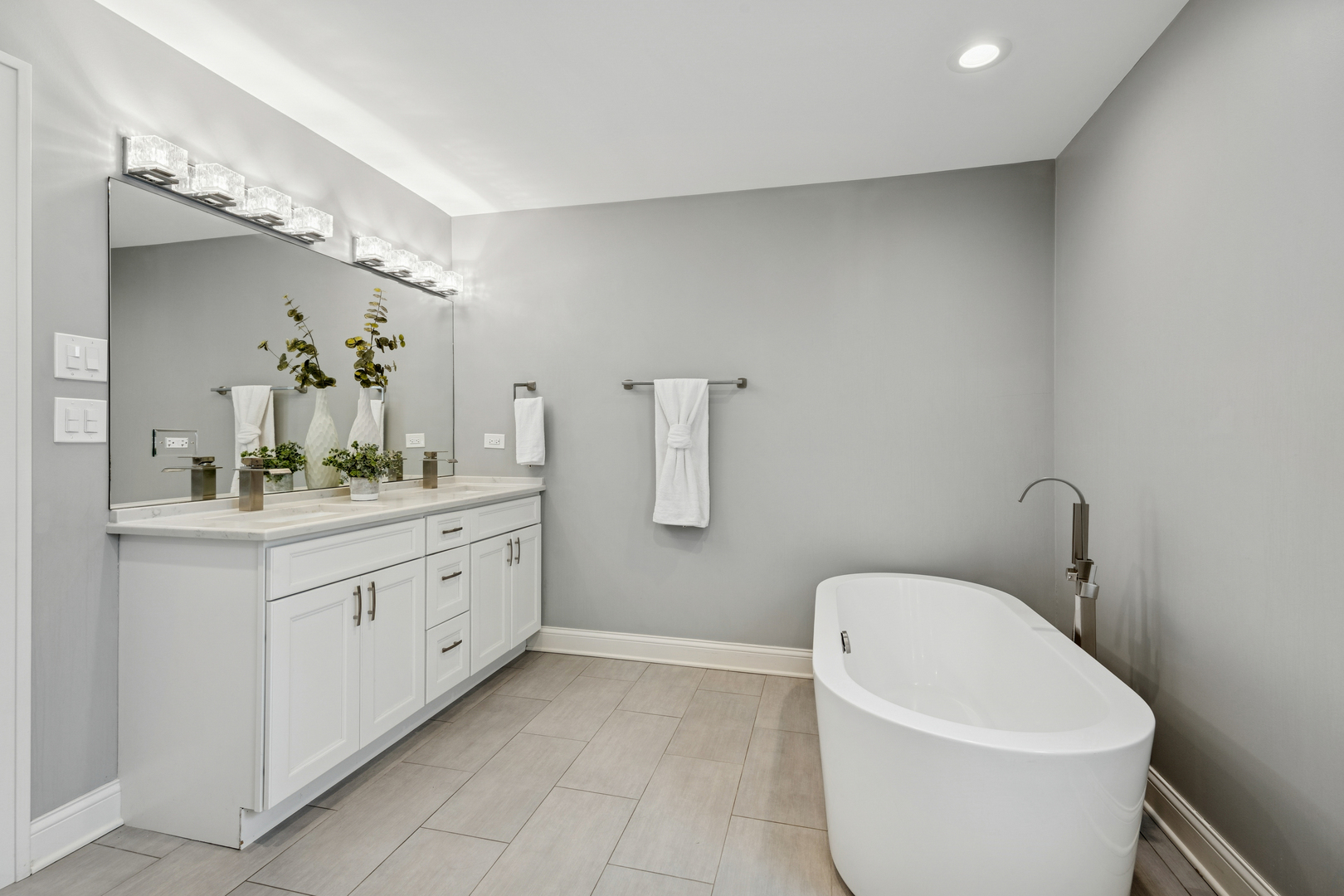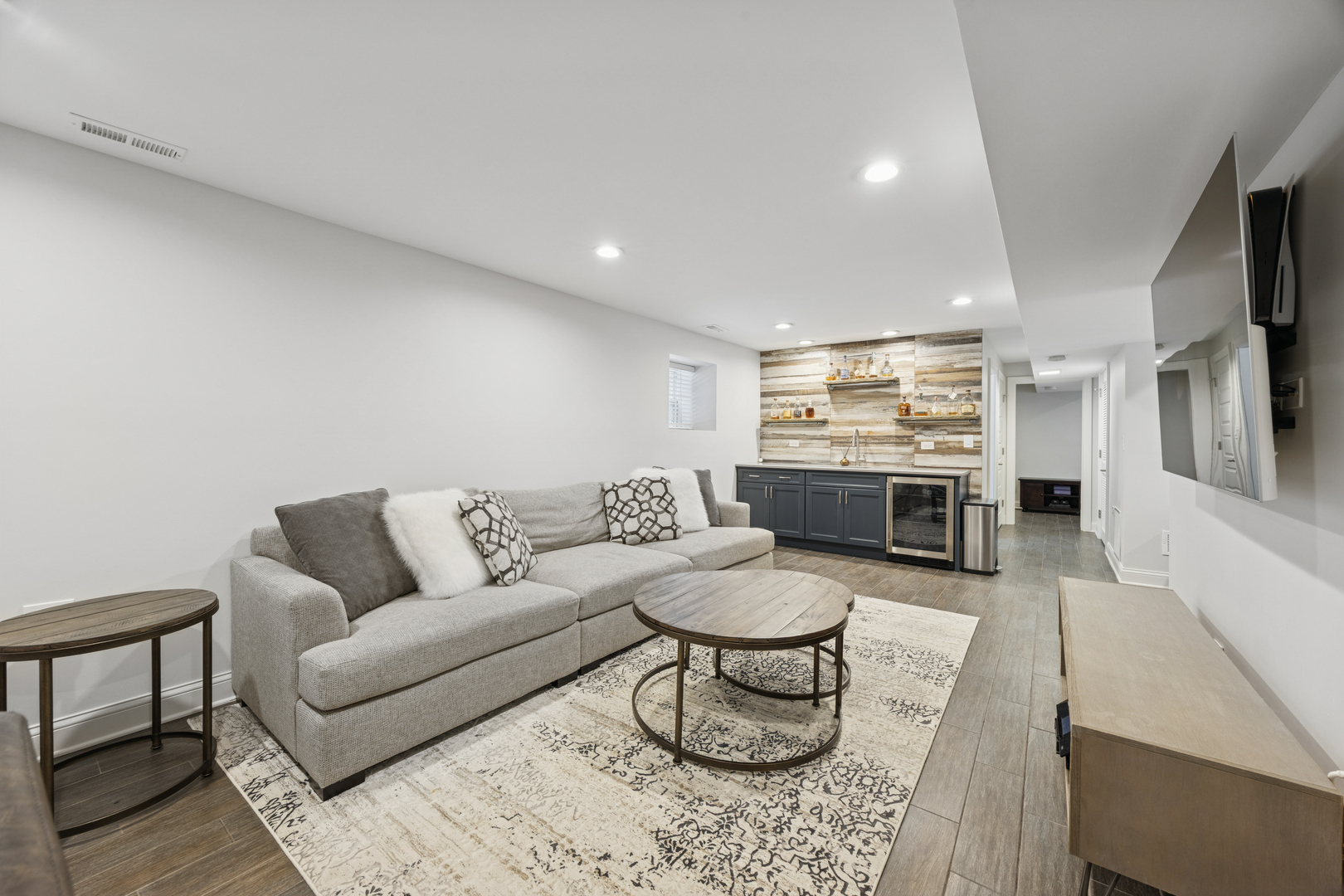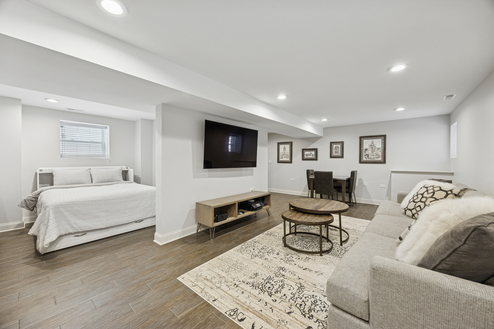 Welcome to 1156 Wesley, a 4,000 sq ft completely renovated showpiece in Oak Park’s historic village that offers effortless modern living across from the beautiful Euclid Square Park, with tennis courts, a baseball diamond, and a playground right outside your door. With every system, fixture and finish fully rebuilt in 2017 and still feeling brand new, this stunning 5-bedroom, 4-bath three-story home features soaring high ceilings, an open concept layout, and gorgeous grey oak hardwood floors throughout. The chef’s kitchen is an entertainer’s dream with a 9-foot island, custom cabinetry, GE Cafe appliances, custom lighting, and a wine/beverage fridge. The main floor offers flexible living with a bedroom or office plus a full bathroom. Upstairs, the luxurious primary suite includes a private balcony for morning coffee, a huge walk-in closet, and a spa-like bathroom with both a soaking tub and walk-in shower. Second-floor laundry includes a sink and extra storage. The finished basement elevates entertainment with a wet bar featuring its own beverage fridge, a great theater area, an additional bedroom, full bathroom, home gym and large storage area. Modern amenities include zoned heating and cooling with Amazon Alexa Ecobee thermostats, all-updated electrical and plumbing, French doors, solid-core interior doors, and a gas fireplace. With large, plentiful closets, a two-car garage, a fenced yard, and an unbeatable location where you can walk to restaurants, shops, and transit or drive to the city in minutes, 1156 Wesley truly offers the perfect blend of luxury, convenience, and community-just unpack and relax!