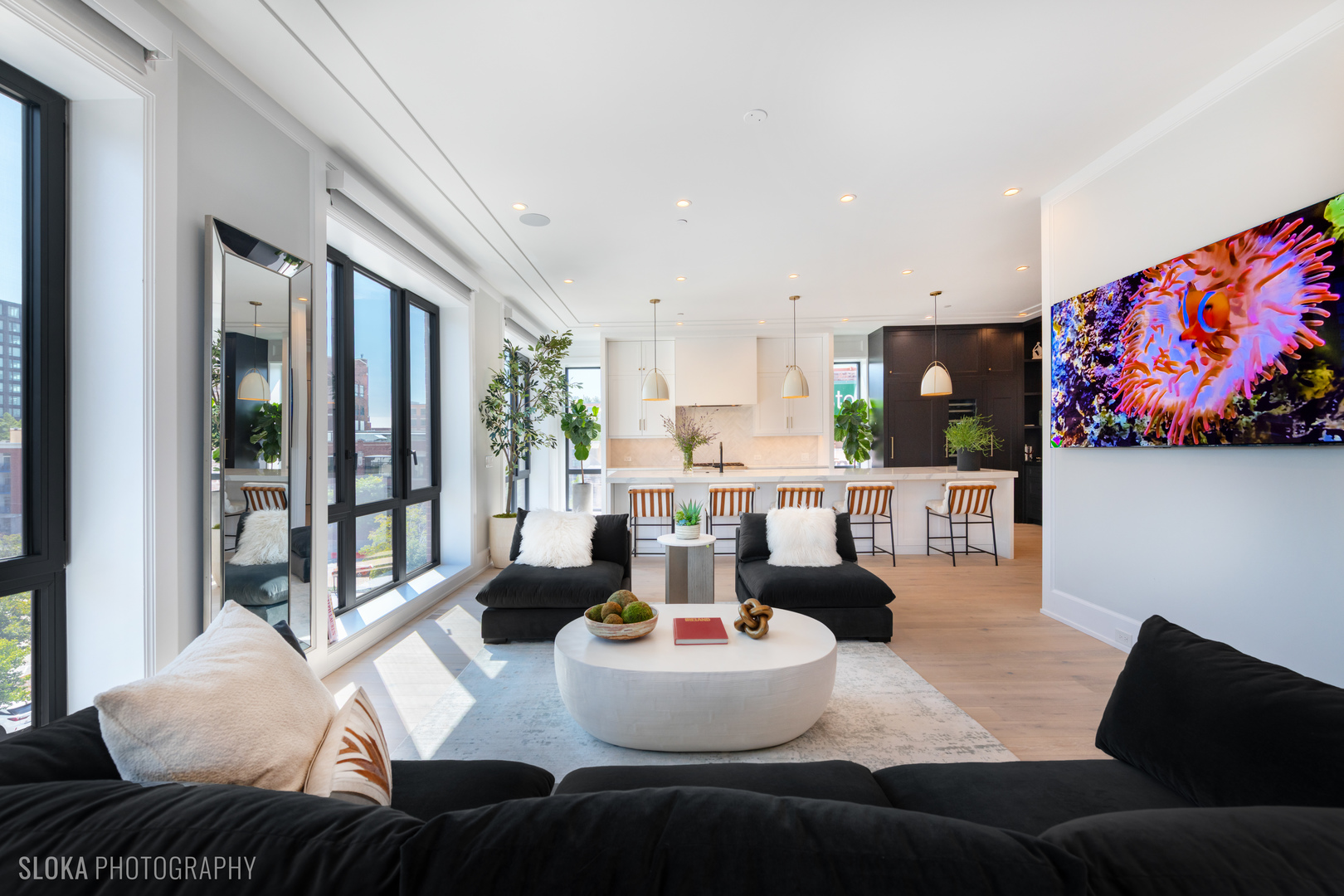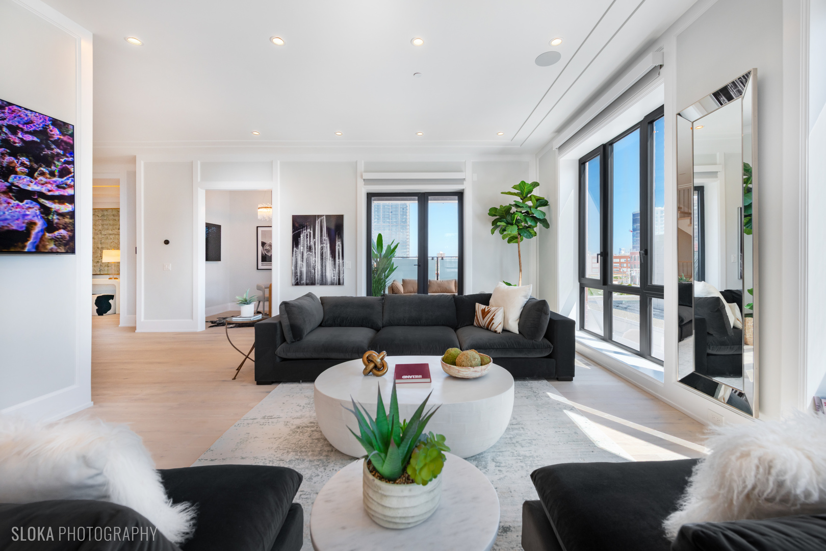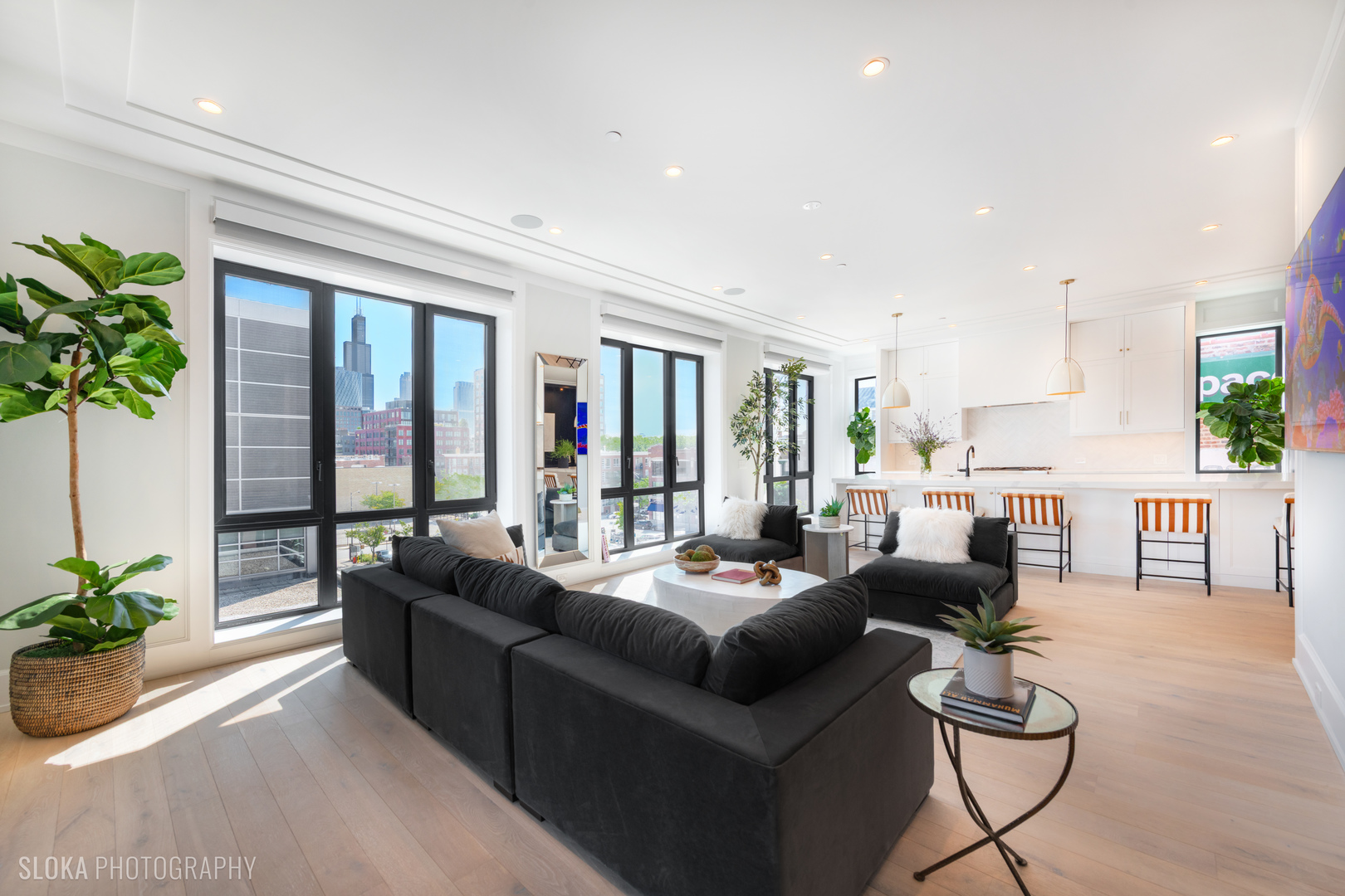 BEST VALUE PENTHOUSE WITH PRIVATE ROOFTOP IN THE WEST LOOP! LAST 2 UNITS REMAIN IN THIS DEVELOPMENT. Tucked away on a quiet side street in the heart of Chicago’s vibrant West Loop, this stunning new-construction duplex penthouse offers an unparalleled blend of luxury, space, and privacy. Spanning two expansive levels with over 1700 sq ft of private rooftop deck, this 5-bedroom + den/office, 4-bathroom residence includes direct elevator access and an attached heated 2-car garage-a rare find in the city. Developed by the highly regarded PLD Homes, every inch of this home exudes quality craftsmanship and sophisticated design. The 35-foot-wide interior is flooded with natural light, showcasing a wide-open floor plan ideal for both everyday living and elevated entertaining. Main Living Level: Open-concept layout with floor-to-ceiling east-facing windows Expansive living room, separate dining area, and custom wet bar Designer chef’s kitchen with panel-ready Thermador appliances, quartz countertops, and custom cabinetry Fifth bedroom or a family room + office/den a full bathroom and covered private terrace – all on the main floor. Second Level: Luxurious primary suite with walk-in closet, private terrace, and spa-caliber bathroom featuring a soaker tub, steam shower, and heated floors. Three additional bedrooms with custom closets and two full bathrooms. Enter this level directly through a private mudroom. Spacious laundry room and separate storage area. Rooftop Oasis: A private interior stairway leads to the top-floor flex space, ideal for a second office or lounge with wet bar-opening to your exclusive rooftop retreat. Enjoy panoramic 360 skyline views, unforgettable sunsets, and endless entertaining potential. Hot tub and shower will be installed on the roof. This boutique building offers the privacy and feel of a single-family home with the luxury conveniences of a high-rise. Located just steps from award-winning restaurants, premier shopping, trendy nightlife, parks, and top-rated schools-this is truly a rare gem in the West Loop.