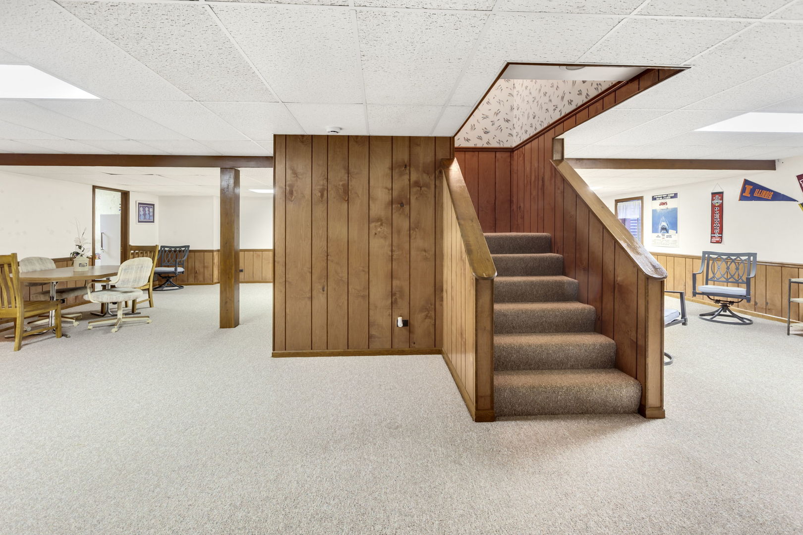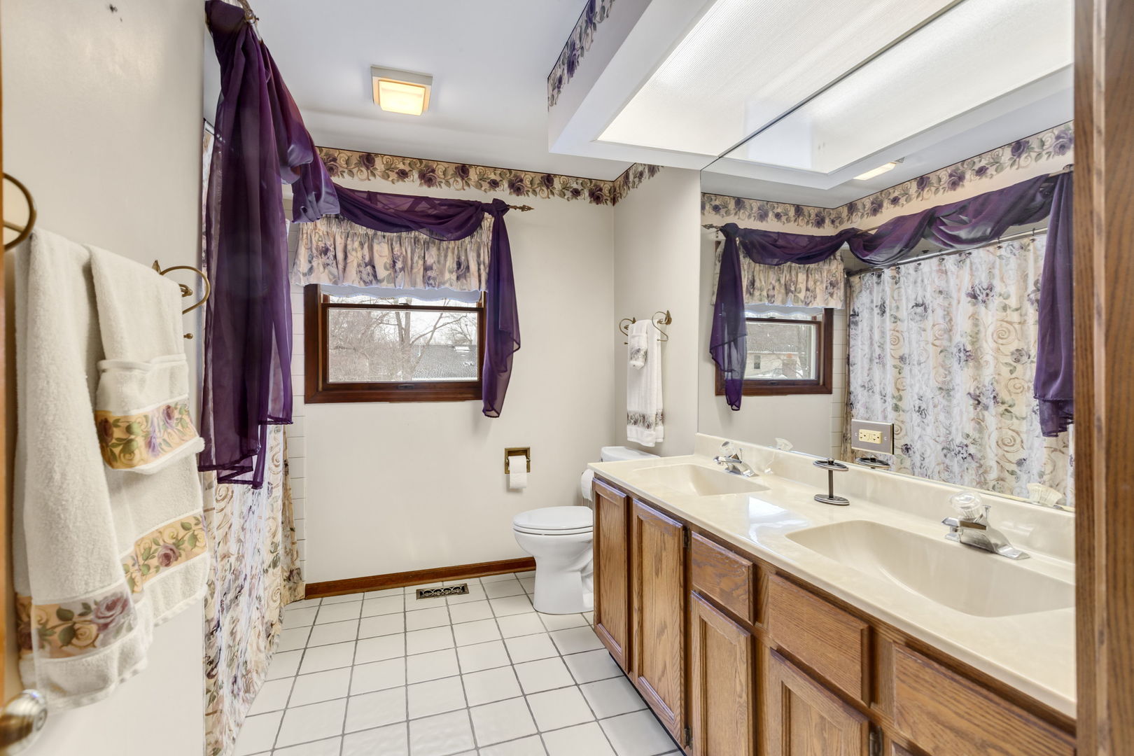 Situated on one of the largest cul-de-sac lots in Buttonwood, this home offers an unbeatable location just 1.5 miles from downtown Naperville and the Metra train station. Enjoy the neighborhood play park at the end of the street and being just blocks from highly desirable May Watts Elementary School. Step into this classic brick-from Tavertine tile flooring and two guest coat closets. The formal living and dining rooms are ideal for entertaining, highlighted by crown molding and chair rails. All hardwood floors have been recently refinished. The bright, spacious kitchen boasts Corian countertops and a breakfast bar, new stainless steel LG appliances, abundant wood cabinetry, and a pantry cabinet. A newer patio door opens to a newly stamped patio overlooking the oversized, private, fenced yard. The breakfast room flows seamlessly into the family room with a beamed ceiling, brick accent wall with shelving, and a wood-burning fireplace-perfect for cozy winter evenings. A first-floor office or optional fifth bedroom features wainscoting, ideal for working from home. The main level also includes a convenient guest bath and a laundry room with slop sink and ample storage. A curved staircase leads to four spacious bedrooms upstairs. The primary suite offers room for a lounge area, a walk-in closet, and a private bath with double-sink vanity, skylight, jacuzzi tub, and separate shower. The hall bath also includes a double-sink vanity and a tub with ceramic tile surround .The full finished basement provides plenty of space for entertaining and recreation, complete with built-in counters, cabinets, and a sink-perfect for gatherings or craft projects. Additional updates throughout, include sump pump Pro-Cover. Enjoy everything Naperville has to offer, with close proximity to parks, library, schools, shopping, hospital, and expressways.