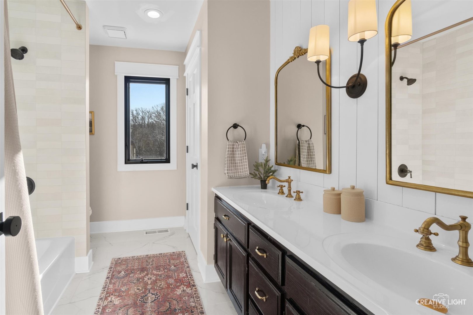 Highly desirable location in Batavia that backs up to Millview Park. This 5 bedroom Georgian style home, with over 2800 sq. ft of living space, complete with 3 newly updated full baths, newer hardwood floors throughout, updated Kitchen countertops, and the Owners bedroom suite includes a new 12 by 21 dressing room, complete with laundry facilities now on the second floor. First floor is complete with the 5th bedroom or den, your choice with a full bath adjacent. Additional new Butler Pantry with access to rear deck, great for summer entertaining on the expansive deck and great views of the park. Kitchen is open and bright with new countertops and stainless steel appliances, in kitchen dining as well as a formal dining room for entertaining and special events. Family room has newer neutral tones, inviting you in to enjoy the wood burning fireplace with a gas starter. There is more to appreciate about this home, it should move quick so do not delay buying the right house in the right location. Did we mention that this is minutes from I-88, the Fox River Trail, and Metra in downtown Geneva. This is a wonderful opportunity in Harvell Farms.