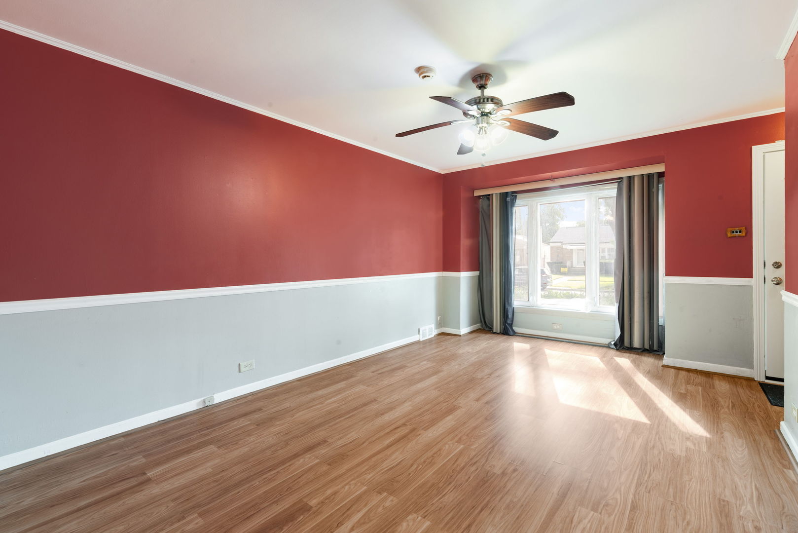 2 bedroom 1.1 bath brick ranch is close to downtown Bellwood and features hardwood floors, a bright living room, updated kitchen with new cabinetry, counter tops and glass backsplash, two good sized bedrooms and a full shared bath. The basement has a large rec room, second full bathroom and laundry hook up. The exterior has a fenced yard with a patio. 2 car oversized garage. Close access to I290 and I294.