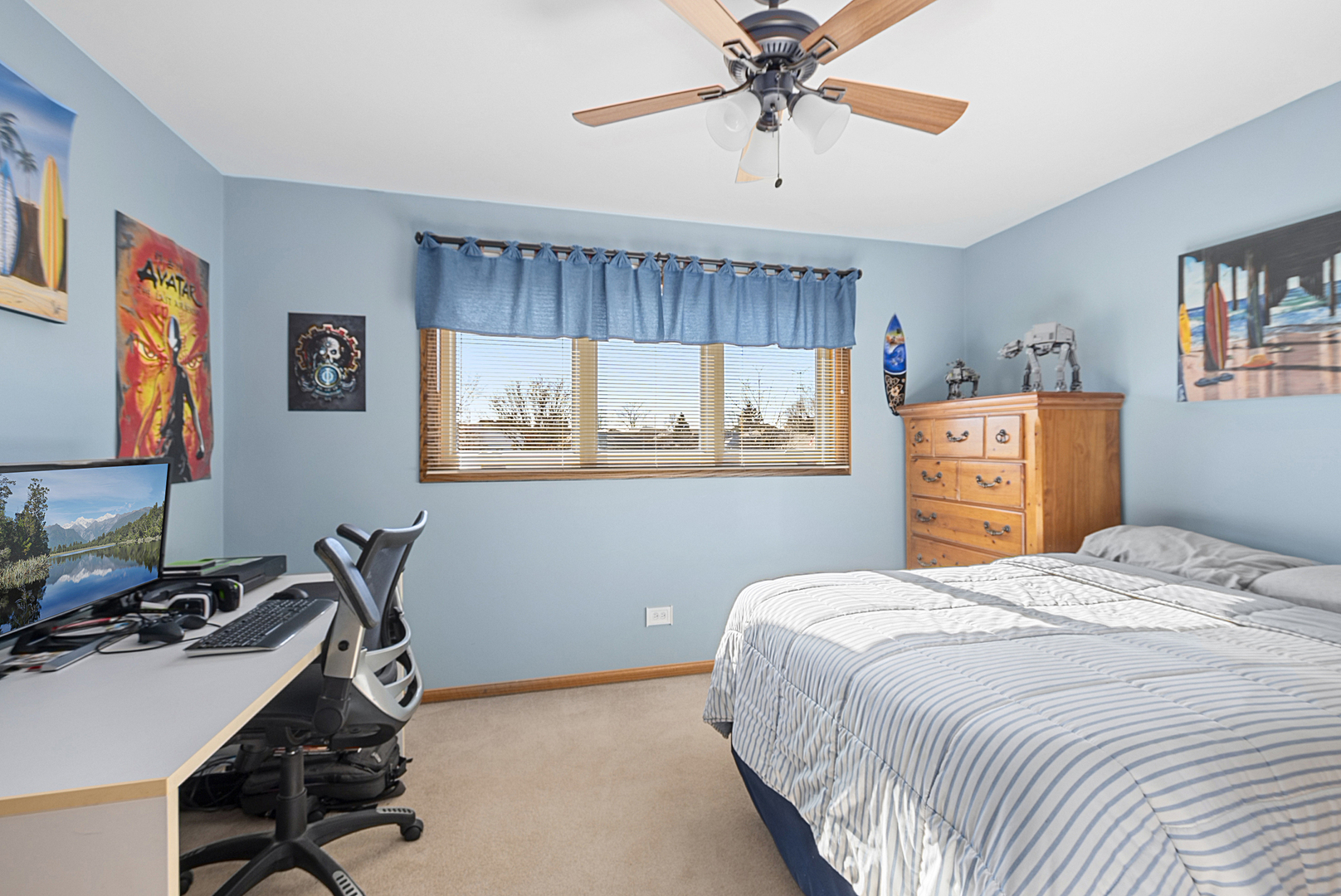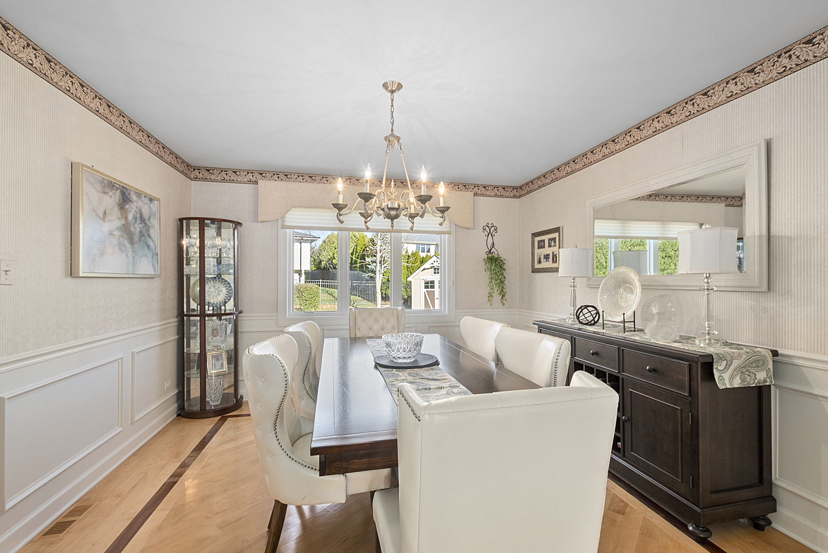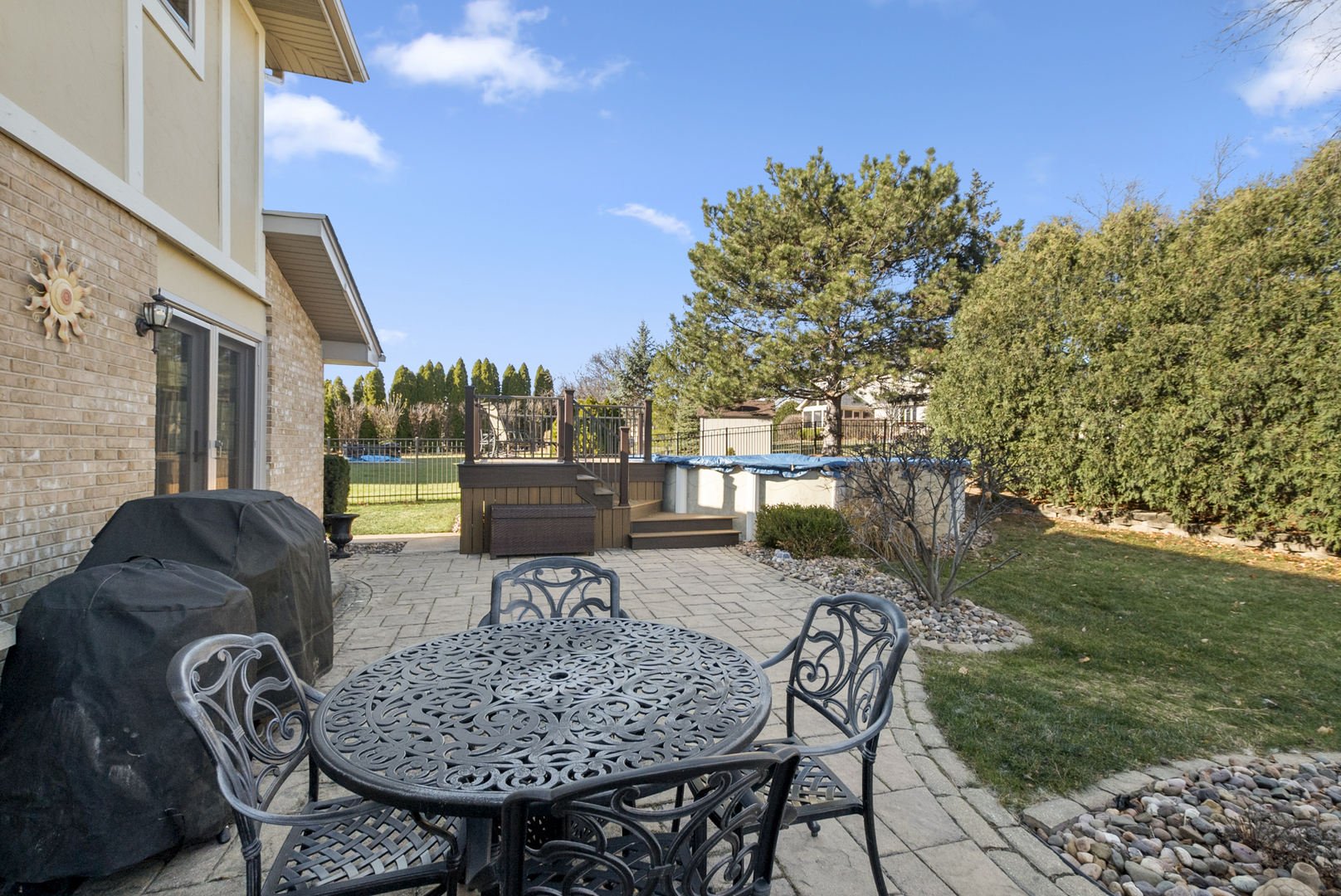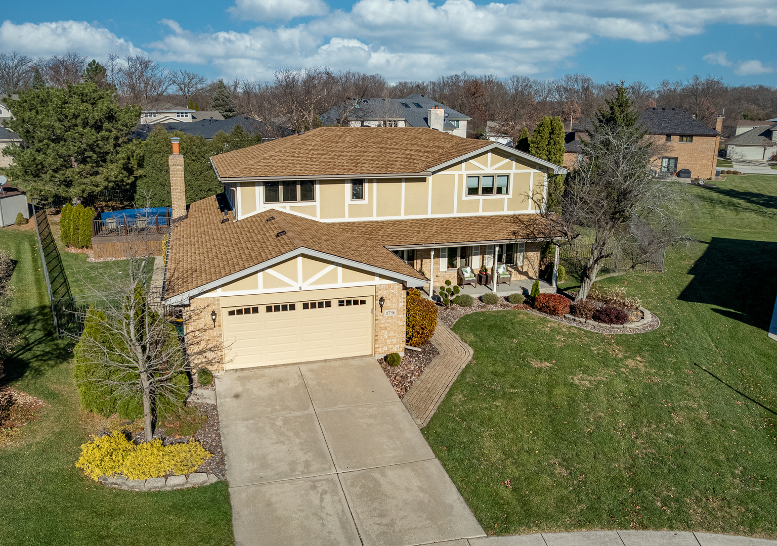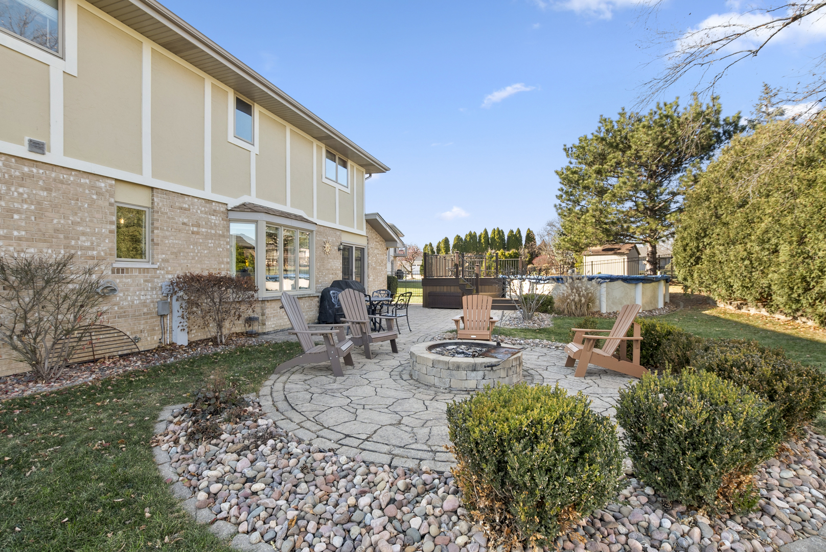 Welcome to this remarkably stunning two-story home with many recent upgrades, offering exceptional craftsmanship, thoughtful finishes, and an expansive yard perfect for entertaining. Notable updates include new roof, gutters, and downspouts installed in 2025 along with brand new furnace and AC in 2025. The home has beautiful curb appeal with a welcoming front porch. As you enter through the new Pella front door, you’ll immediately appreciate the quality throughout-featuring all new Pella windows (2017), solid 6-panel wood doors (2019), freshly interior paint, new white trim installed in 2022, and stylish updated light fixtures. The main floor offers a desirable and functional layout. The living room showcases hardwood floors and elegant crown molding, while the formal dining room adds charm with hardwood flooring and wainscoting. The remodeled eat-in kitchen is a standout with soft-close cabinets featuring pull-out drawers, high-end granite countertops, a new Kohler sink, under-cabinet lighting, custom tile backsplash, upgraded lighting, a pantry closet, and black stainless steel appliances. Just off the kitchen, the inviting family room features a gas/wood-burning fireplace and a brand-new Andersen French door (2024) leading out to the backyard. A updated main-floor powder room and a convenient laundry room with a newer washer and dryer add to the home’s everyday ease. The attached 2-car garage offers an attic for additional storage, a newer garage door opener, and an overhead door approximately five years old. Upstairs, the private primary suite offers a vaulted ceiling, a sprawling walk-in closet, and a tranquil primary bathroom complete with a soaking tub. Three additional generously sized bedrooms and a full hall bathroom with double sinks complete the second level. The finished basement offers an incredible amount of additional living space. It includes a second family room with recessed lighting and abundant storage closets, an exercise room, a recreation area, a fifth bedroom/office, and a full bathroom with both a shower and a whirlpool tub-perfect for guests or extended living arrangements. Step outside to enjoy the beautifully landscaped, fully fenced backyard-your own private oasis. The outdoor space features a brick paver patio, a fire pit with a dedicated gas line, a maintenance-free Trex deck, and an above-ground pool installed in 2021, offering endless opportunities for summer fun and relaxation. This meticulously maintained home is truly move-in ready and offers the perfect blend of comfort, style, and modern updates. Sought after location in Pinewood North subdivision and steps away from the park and Tampier Lake. Don’t miss out on this beauty!