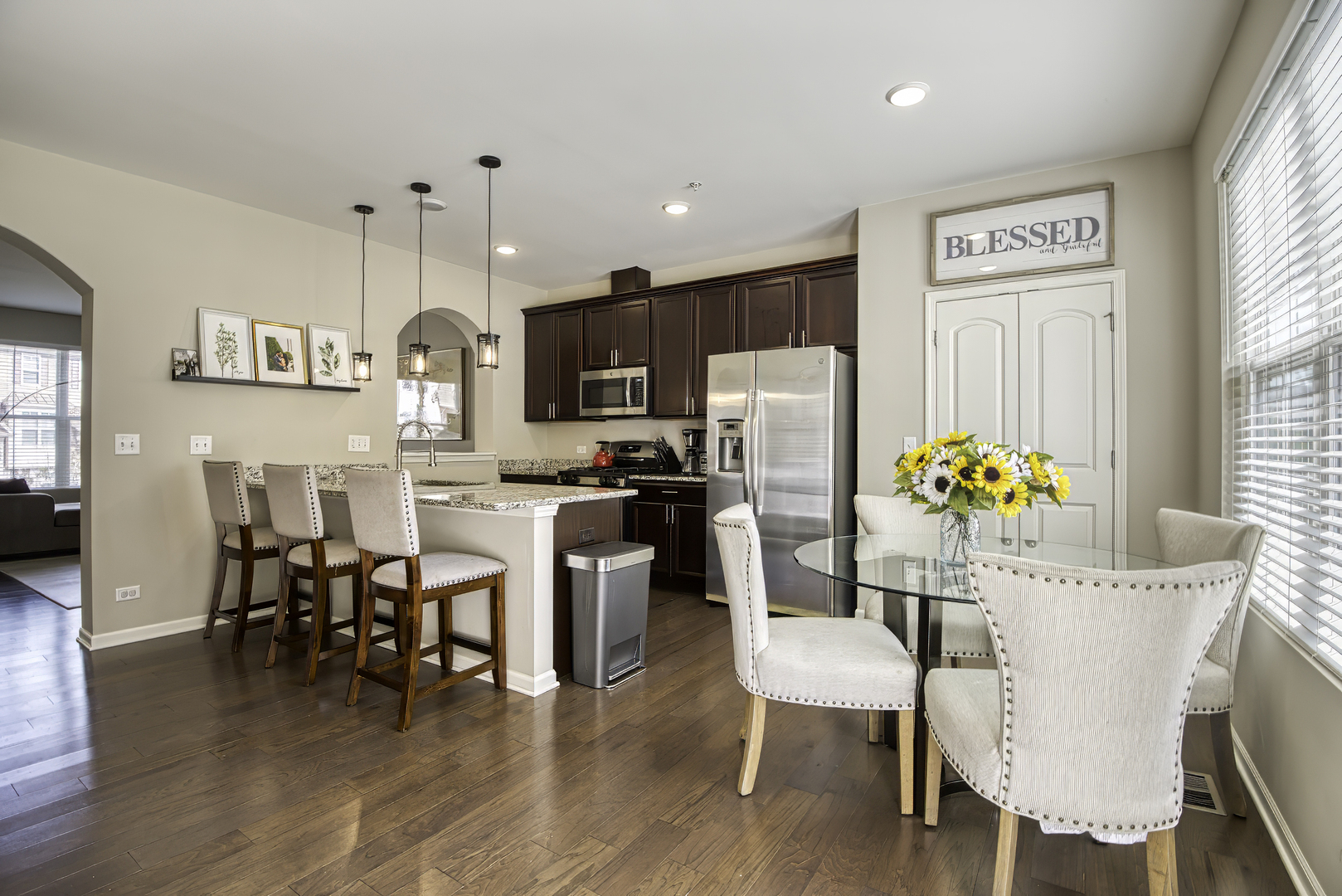 Built in 2018, this 2 bedroom + den, 2.1 bath home offers modern living space with designer finishes throughout including hardwood floors, a stone fireplace, granite countertops, stainless steel appliances, cherry-stained cabinets, and a coffered ceiling in the primary suite. The functional layout includes a bright open living and dining area, a separate office/den/flex space, convenient second-floor laundry, and an attached 2-car garage. Both bedrooms ensuite! Enjoy a private balcony and the comfort of low-maintenance living with a monthly HOA. Located just minutes from the Metra, O’Hare, and major expressways, this home provides an ideal blend of space, convenience, and community. Downtown Des Plaines offers local dining, shopping, and the historic Des Plaines Theatre, while nearby parks and forest preserves add to the area’s appeal, making this a perfect opportunity to enjoy suburban living without sacrificing city accessibility. New electric car charger in garage! MULTIPLE OFFERS RECEIVED! HIGHEST AND BEST DUE BY MONDAY 10/20 5:00 PM