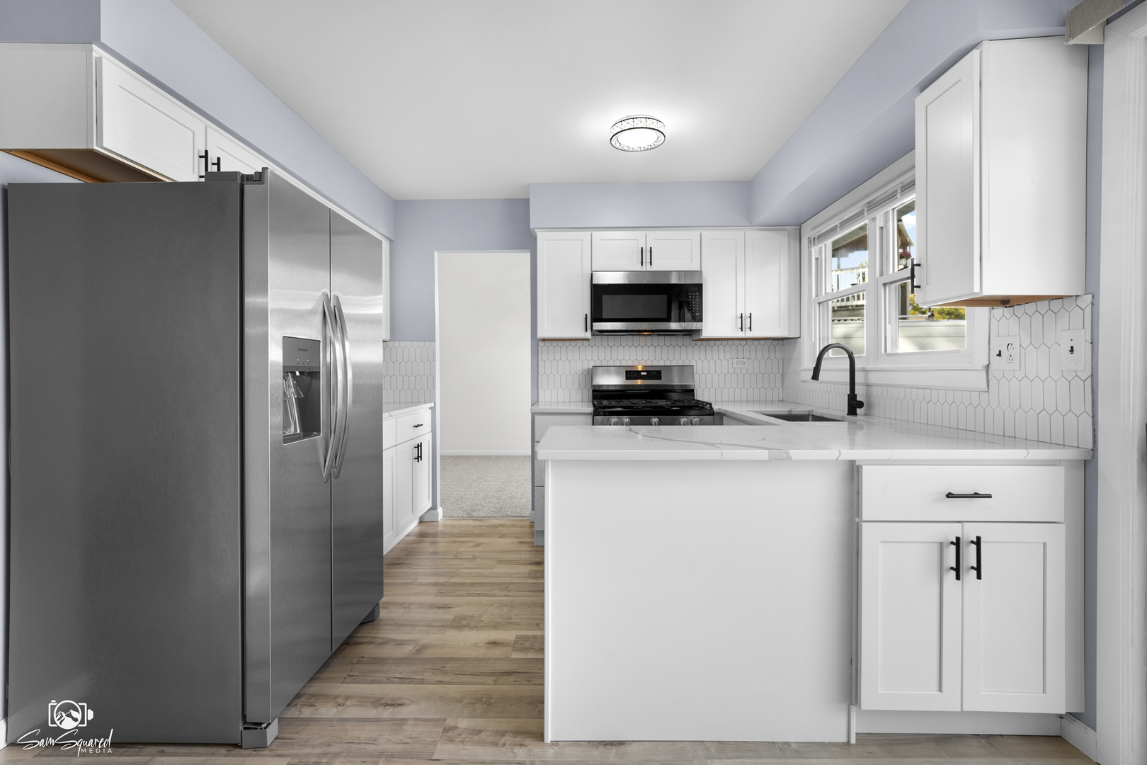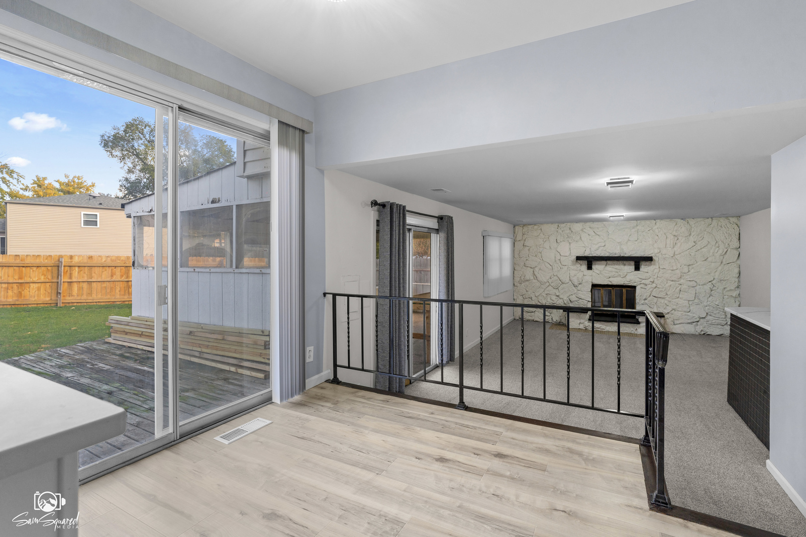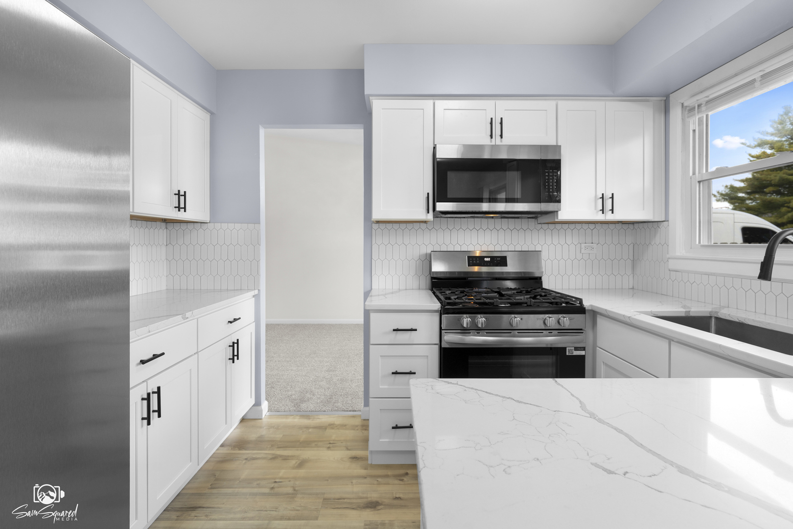 Completely Renovated & Move-In Ready! Beautifully updated home featuring a brand-new kitchen with stainless steel appliances, quartz countertops, eat in kitchen. Fully renovated bathrooms, freshly painted interior, and new carpet throughout give this home a bright, modern feel. The open, well-designed layout is perfect for entertaining. Enjoy a spacious living room and adjoining dining area filled with natural light and backyard views. Step outside to a large yard with a multi-tiered deck and screened porch, ideal for summer gatherings and outdoor enjoyment. The cozy family room offers a wood-burning fireplace, built-in bar, and extra space for dining or relaxing. The main level also includes a renovated half bath, laundry room, and access to an oversized 2.5-car heated and cooled garage with plenty of built-in storage. Upstairs features two large bedrooms with generous closets, a renovated full bath with sun tube, and a spacious primary suite with sitting/dressing area, walk-in closet, and stunning ensuite bath. Additional highlights include an Aprilaire air purifier, whole-house attic fan, and newer mechanicals.