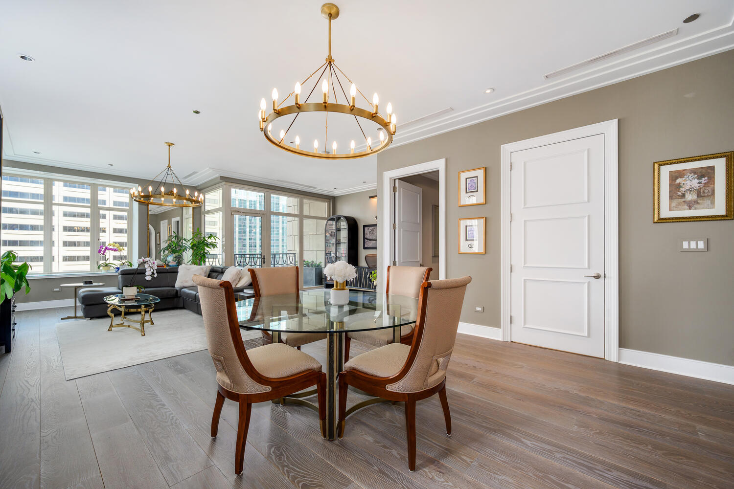 Welcome to an extraordinary opportunity to own a coveted C-Tier residence at the prestigious Ritz-Carlton Residences, Chicago. An exquisitely renovated home featuring over $300,000 in bespoke upgrades across more than 1,900 square feet of refined living space. From the grand foyer framed by signature archways to the wide-plank hardwood floors, curated wall coverings, designer lighting, custom built-ins, and spa-inspired marble baths, every detail has been thoughtfully considered. The timeless DeGiulio kitchen is elevated with Taj Mahal quartzite countertops, blending beauty and function, while the open-concept living and dining areas offer elegant comfort with window seats overlooking Lake Michigan and the iconic skyline. The king-sized primary suite is a tranquil retreat with a custom wall unit and a fully reimagined spa bath featuring herringbone marble tile, a soaking tub, walk-in shower, and built-in linen closet. The second bedroom is equally versatile, offering a custom-built office space with an integrated Murphy bed and updated en-suite bath. Step onto your private terrace, upgraded with stone pavers, for a serene escape above the city. As a resident, enjoy unparalleled amenities including private butler service, full-service concierge, world-class spa and fitness facilities with Peloton and Technogym equipment, private cinema with beverage and popcorn service, and valet parking. This residence offers more than luxury-it delivers a five-star lifestyle, redefined.