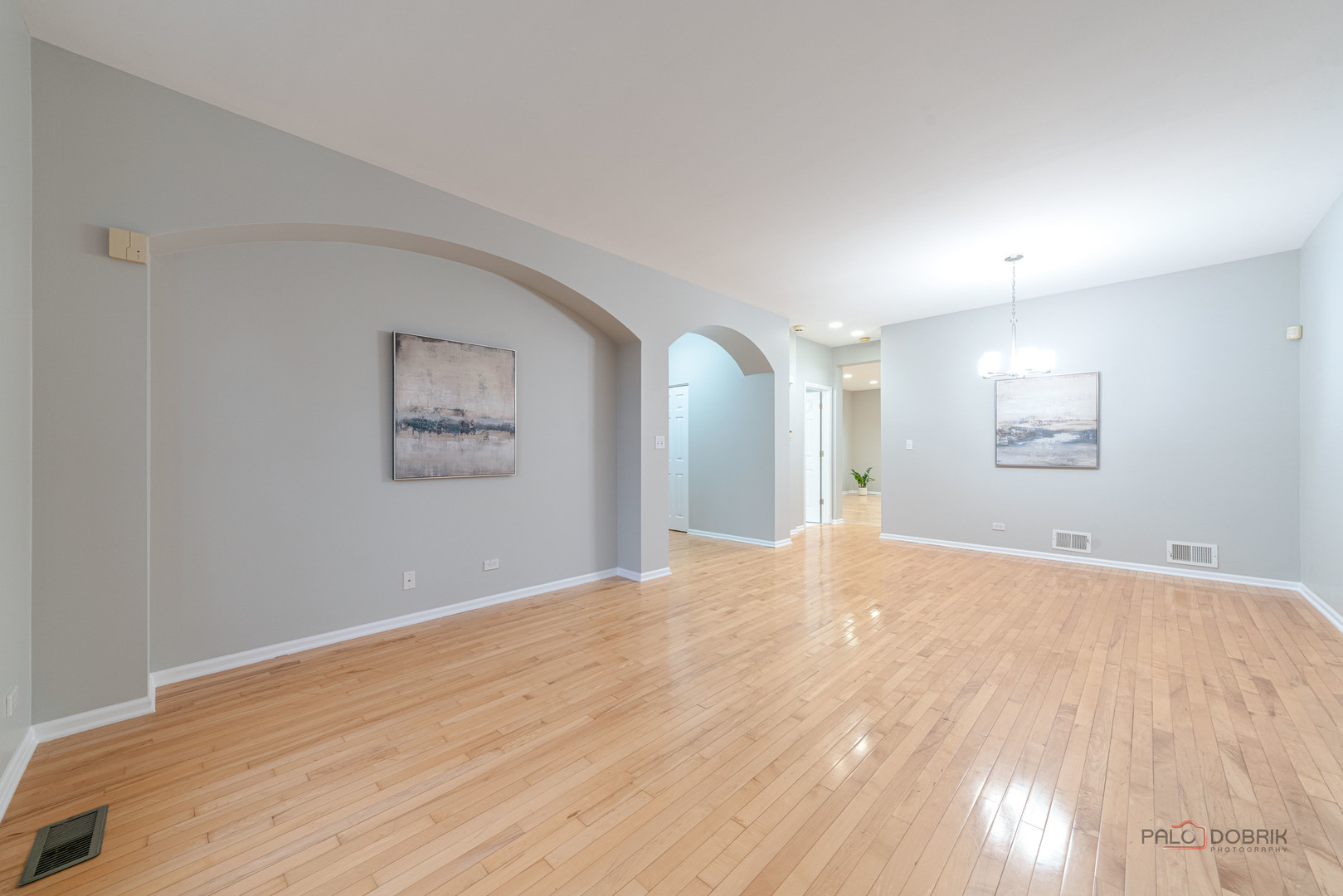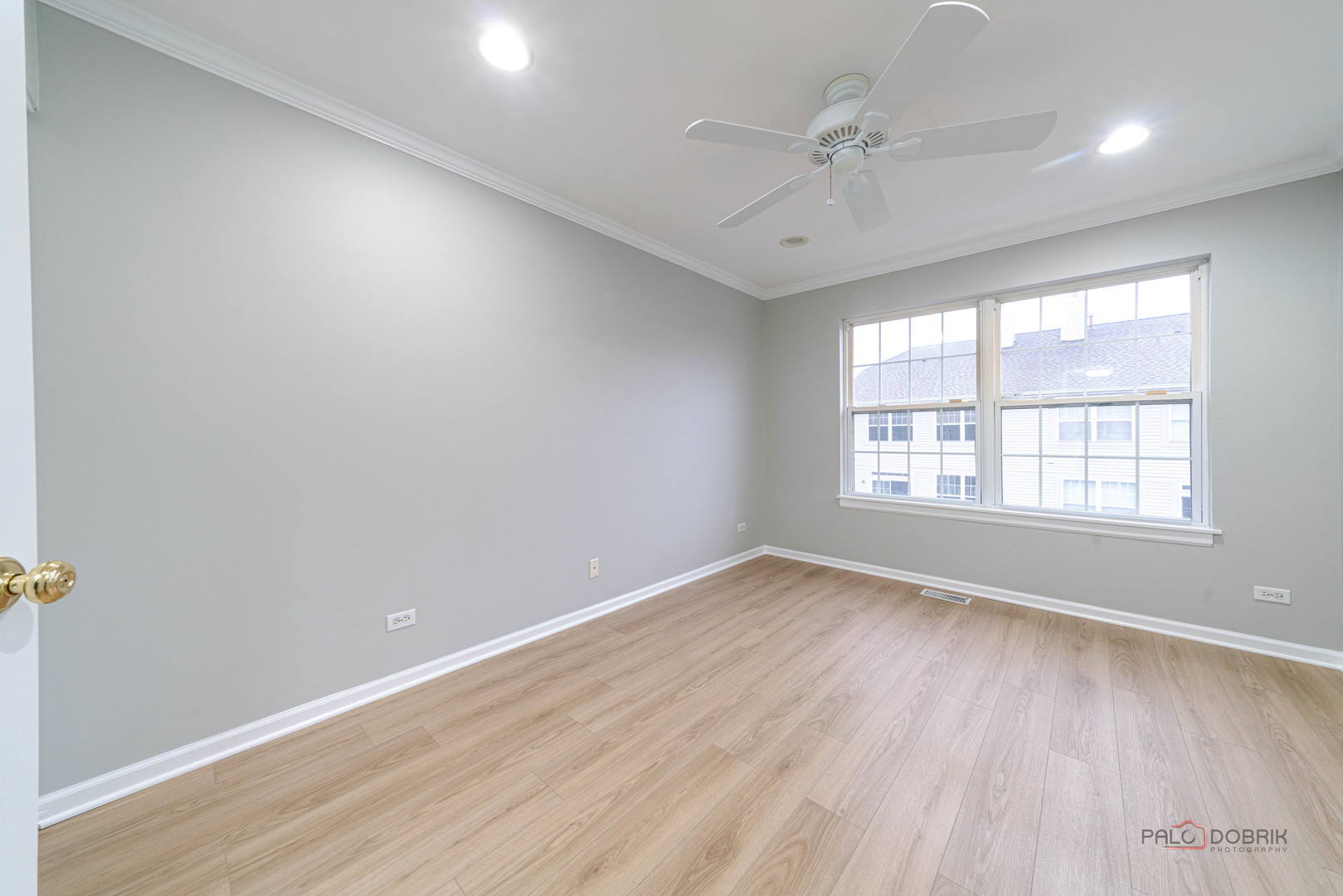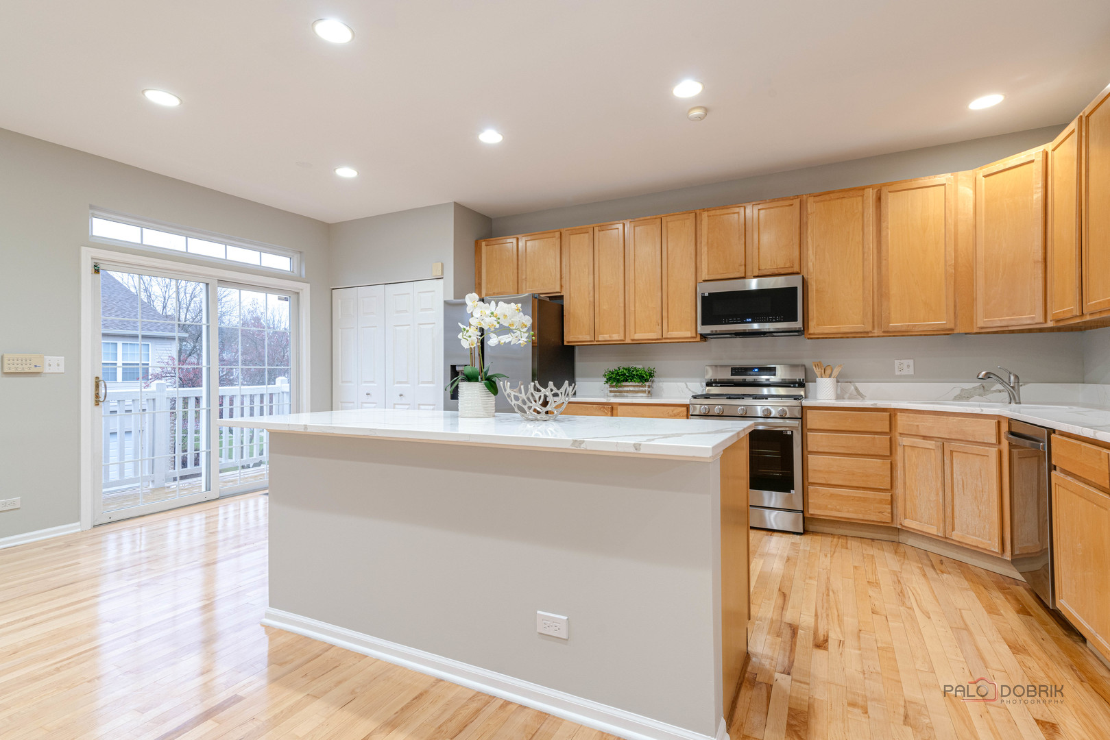 Welcome to this spacious 3-bedroom, 2.1-bath townhome with an attached 2-car garage, ideally situated in the desirable Georgetown Square subdivision within the award-winning Stevenson High School District. 2025 PAINT THROUGHOUT! 2024 NEW ENGINEERED WOOD FLOORING SECOND AND LOWER LEVELS! Step inside to discover an open-concept floor plan featuring a generous living and dining area with gleaming hardwood floors and abundant natural light. The fully equipped eat-in kitchen boasts BRAND NEW QUARTZ COUNTERTOPS, an island with breakfast bar, BRAND NEW STAINLESS STEEL APPLIANCES, a large dining nook, pantry closet, and direct access to a private balcony-perfect for morning coffee or evening unwinding. A convenient half bath completes the main level. Upstairs, the primary suite impresses with a vaulted ceiling, walk-in closet, and a private ensuite bath offering a dual-sink vanity, soaking tub, and separate shower. Two additional bedrooms share a full hallway bath, and a second-floor laundry room with in-unit washer and dryer adds everyday ease. The lower level offers a versatile bonus space-ideal as a family room, office, or gym-with direct walk-out access to the garage. Located just minutes from Stevenson High School and the Prairie View Metra Station, this home offers exceptional convenience for commuters. Enjoy proximity to Hawthorn Mall’s shopping, dining, and entertainment, as well as nearby parks, trails, and forest preserves in scenic Vernon Hills. With quick access to major highways while nestled in a quiet, residential community, this townhome delivers comfort, style, and a prime location-ready for you to move in and make it your own.