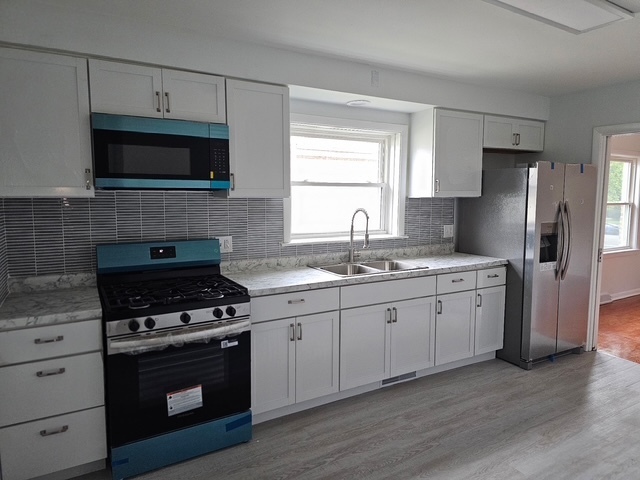 Wow! Welcome to this charming nicely rehabbed 3+1-bedroom, brick home in the much sought-after Beverly Woods Neighborhood with finished basement for extra living space, shower, toilet and storage! This home has a spacious living room; eat-in kitchen; a full bath and a half bath on the main floor; three bedrooms on the main floor; additional room with shower and toilet and storage in the basement; brand new appliances; new flooring and cabinets throughout; two-car garage accessible from side drive or the Alley; the only home on the block with long drive way for additional parking; screened in patio and backyard for parties, entertaining or gardening. Close to everything. This home is Vacant and Move-in ready making it the perfect opportunity for that Buyer or Buyers to add their personal touch and create their dream home. NO HOA, No HOA Fees or Assessments. Easy Showing – schedule a showing Today and see for yourself!