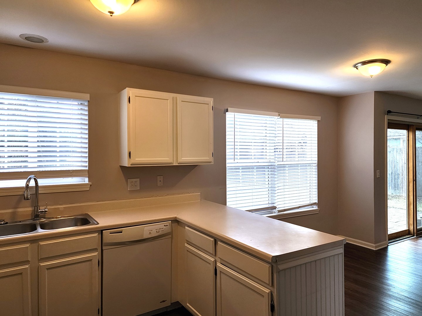 Great opportunity to buy a 3 bedroom duplex in College Trail Subdivision. Kitchen has plenty of cabinets with a pantry large eating area and opens to the family room w/ fireplace. Living room w/ vaulted ceiling. Master bedroom has walk in closet, private dressing area, vaulted ceiling and a shared master bath. Fenced yard and patio. Seller will be doing some minor repairs including replacing counters.