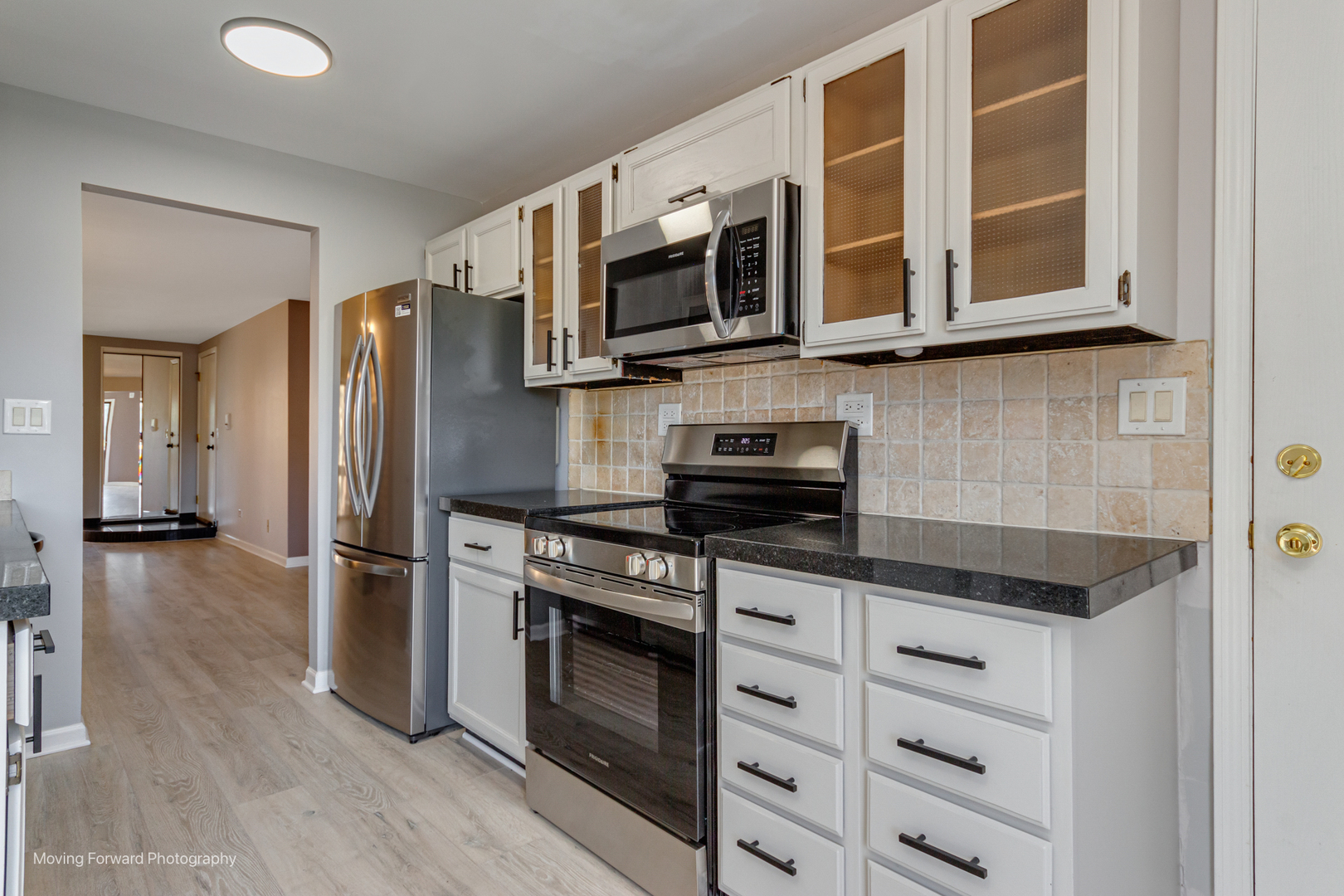 Check out this newly updated 2 bedroom, 2 bathroom condo close to downtown Naperville! Step into the spacious living room with tons of natural light from all sides featuring luxury flooring, brand new paint, + a cozy corner fireplace! The layout seamlessly flows into the dining area & updated kitchen with brand new Frigidaire appliances, plenty of cabinetry, & eat in area with access to one of two patios! The primary bedroom offers brand new carpet, paint + a fully renovated ensuite walk in tile shower! The second generously sized bedroom has brand new carpet, paint & right next to the second full bath! Enjoy outdoor living on your private balcony just off the living room with access to private a storage room! In unit laundry with a brand new dryer that’s never been used! Central air, 1 car garage space with additional parking spot! School district 203. Only a blocks away from downtown Naperville, parks, restaurants, & close to I-88! Nothing to do but move in & enjoy!