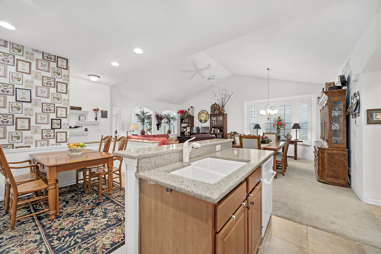 YOU DESERVE IT! Step into your next chapter of easy, elegant living in Carillon at Stonegate, a highly sought-after active 55+ community where comfort, connection, and convenience come together beautifully. This beautifully maintained, one-owner ranch home (built in 2013) offers the ideal open-concept layout with 2 bedrooms, 2 full bathrooms, a bright sunroom, a bright den, full deep-pour basement, and a 2-car attached garage. Thoughtfully designed with 9-foot ceilings, the home feels spacious, airy, and welcoming from the moment you enter. Plantation shutters throughout add timeless style and privacy, while the **sunroom-perfectly positioned to capture the morning sunrise-**creates a peaceful space to start your day. The huge deep-pour basement with high ceilings already features insulated walls, making it an excellent opportunity to easily expand your finished living space in the future-whether you envision a recreation room, home office, or guest retreat. A brand-new AC and private automated irrigation system provide peace of mind and effortless maintenance. Step outside to enjoy the concrete patio, shaded in the afternoon-ideal for relaxing, entertaining, or simply enjoying the beautifully kept community surroundings. Living in Carillon at Stonegate means access to exceptional amenities including a clubhouse, outdoor pool, fully equipped fitness center, library, kitchen and meeting spaces, billiard room, card room, bocce ball court, tennis and pickleball courts, and even an elevator for convenience. With a full calendar of social activities, clubs, and group events, you can be as active and social as you choose. Scenic walking paths, private parks, ponds and abundant green space are right outside your door. The location is unbeatable-just minutes from Route 59 Metra Station, with easy access to I-88, shopping, dining, and everyday essentials. This is a rare opportunity to own a meticulously cared-for home in one of the area’s most vibrant 55+ communities-where quality shows in every aspect of the lifestyle. Welcome home!”